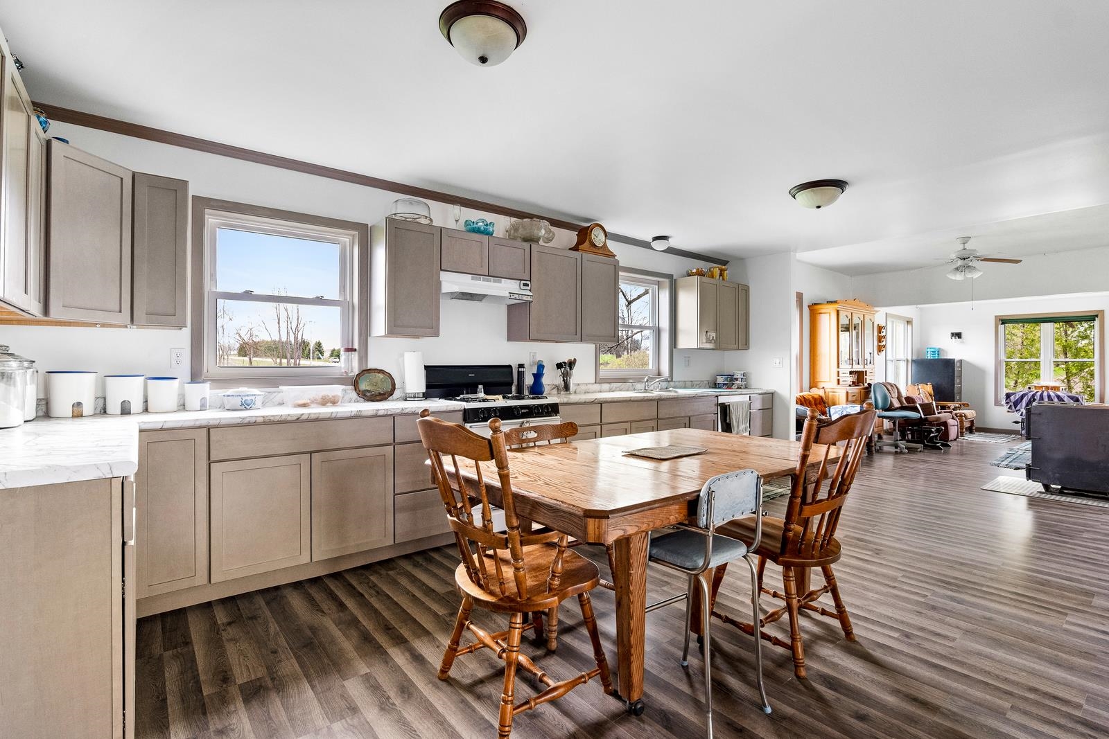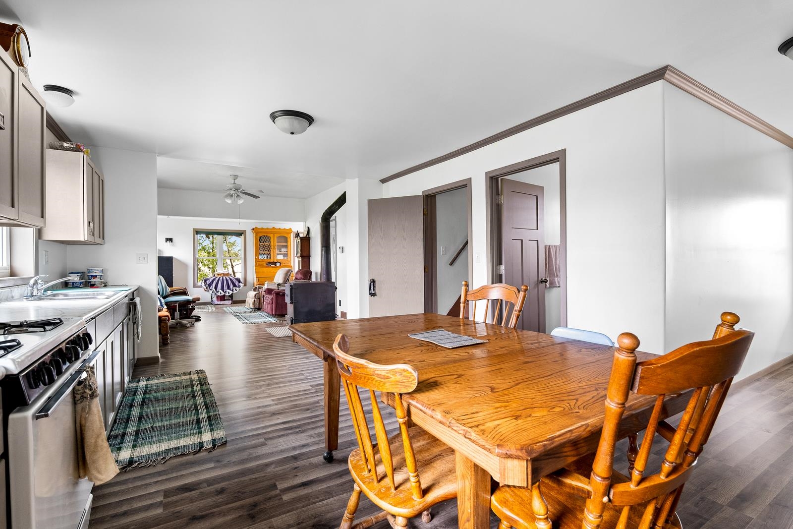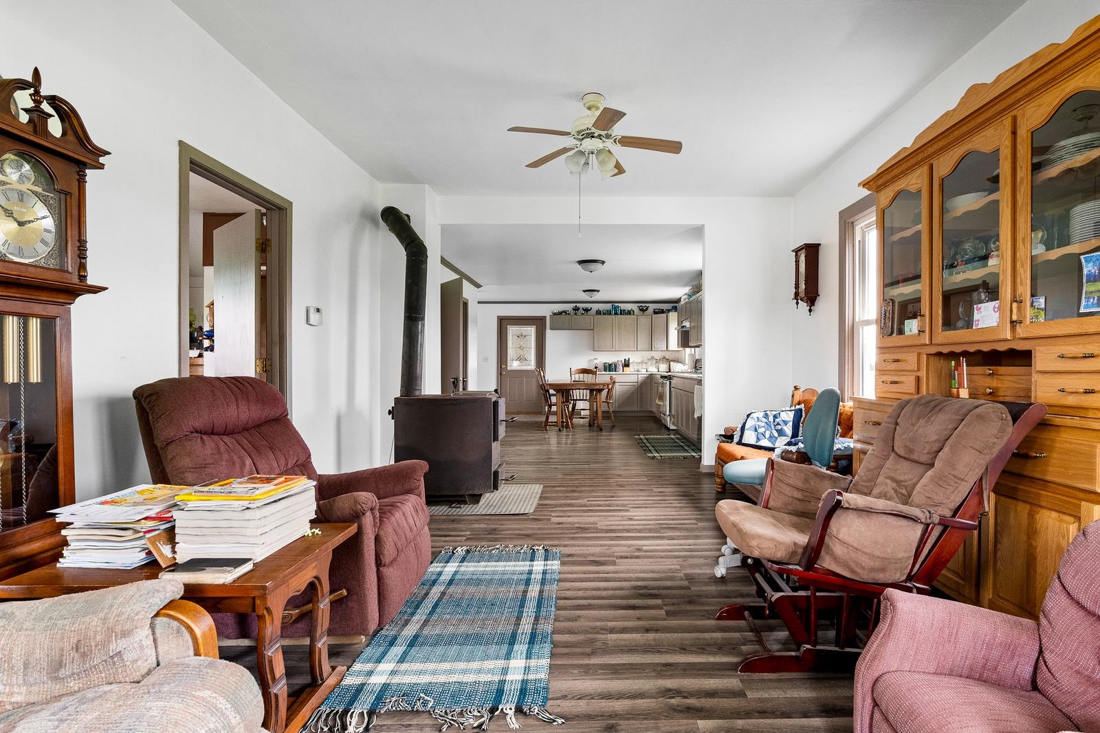 heat/smoke detectors, wood stove in LR