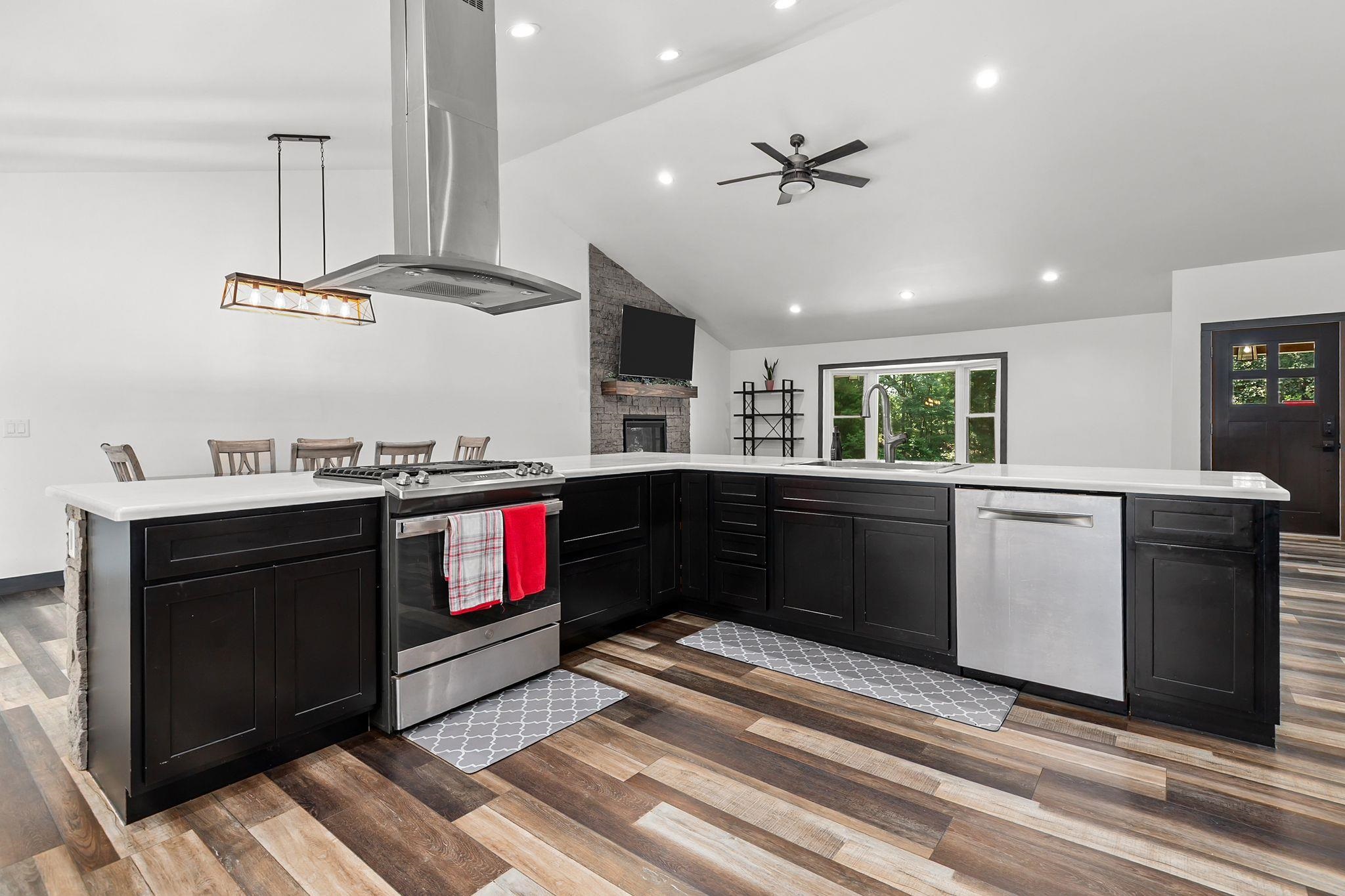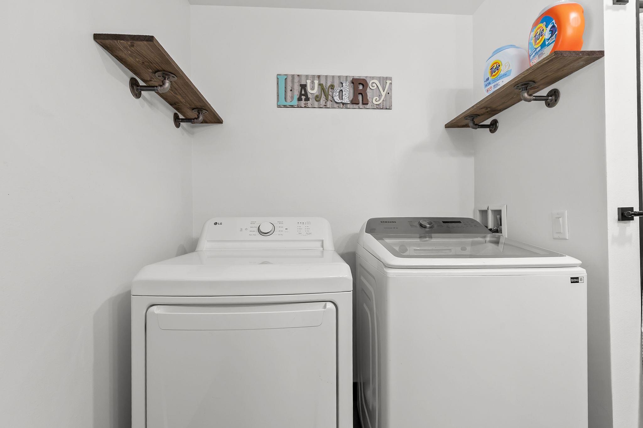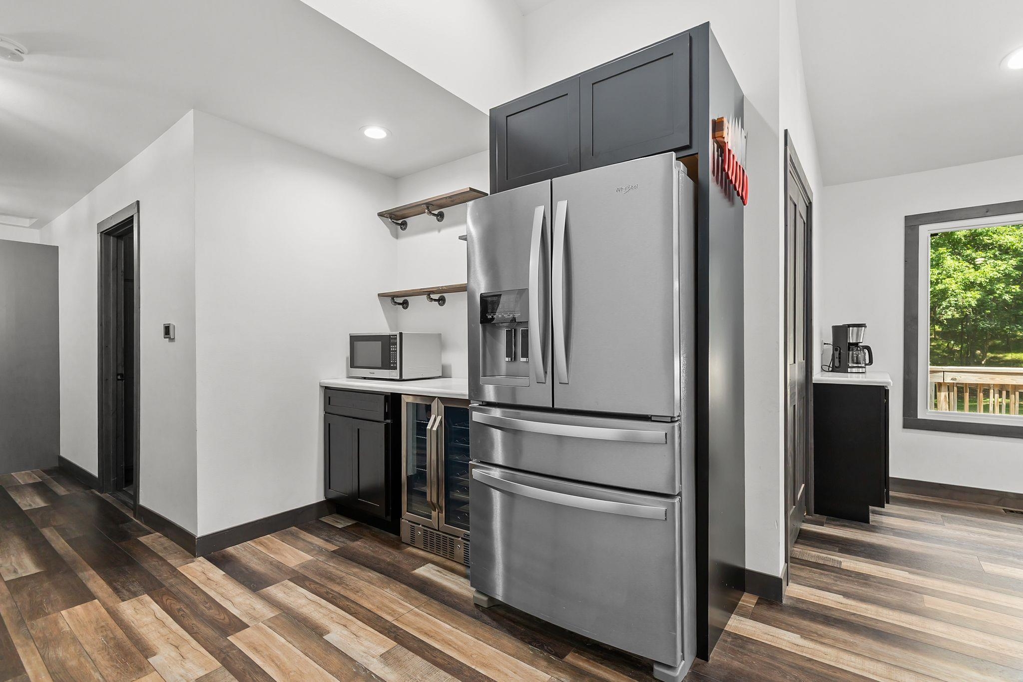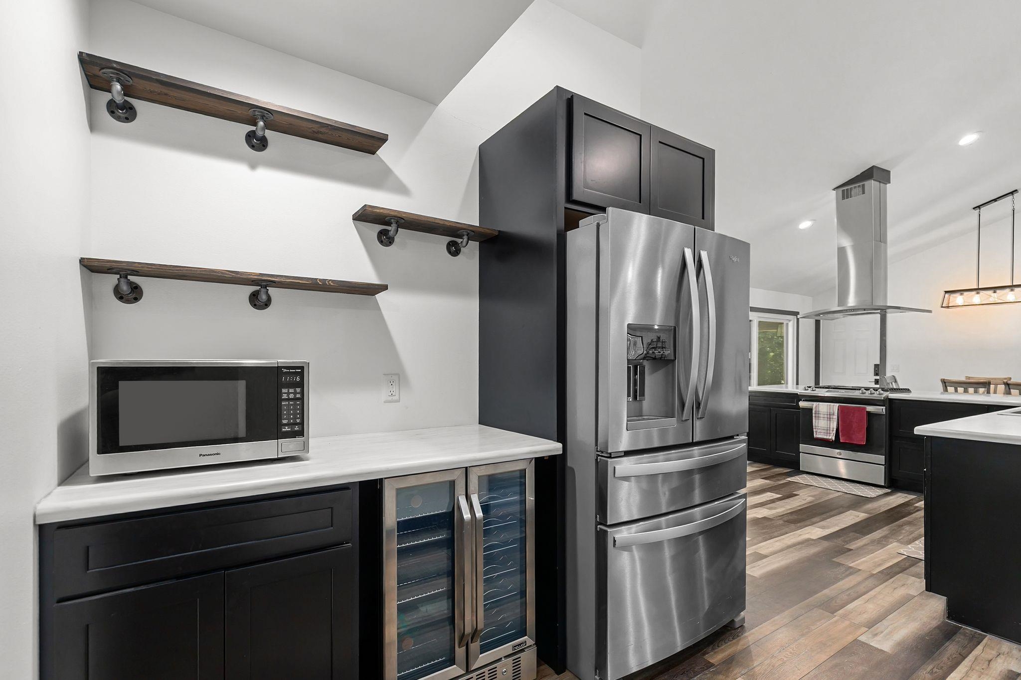 microwave, stove, fridge, garage fridge, wine fridge, washer & dryer, living room TV, bedroom tv, dishwasher, chair lifts, all shelving