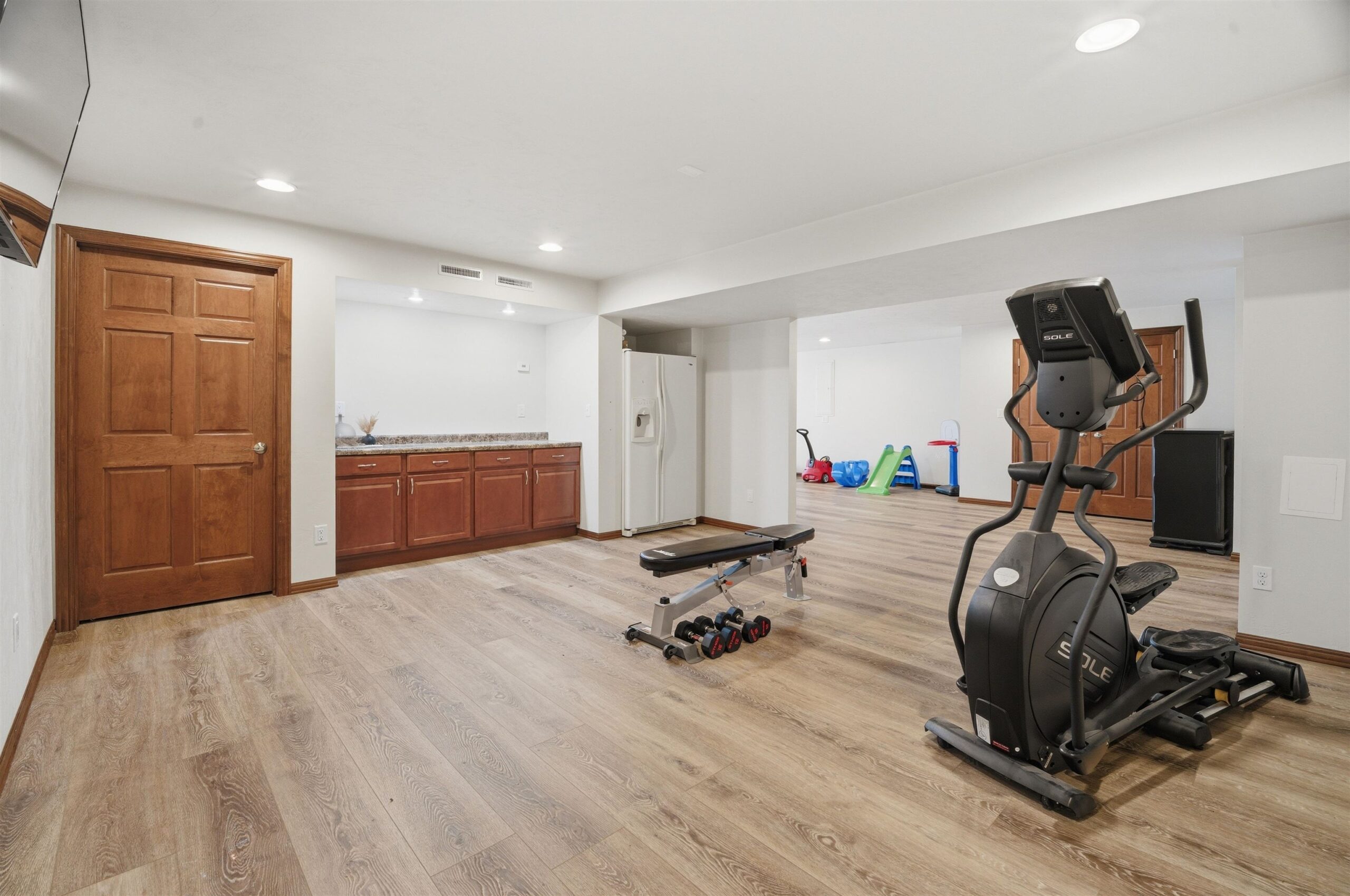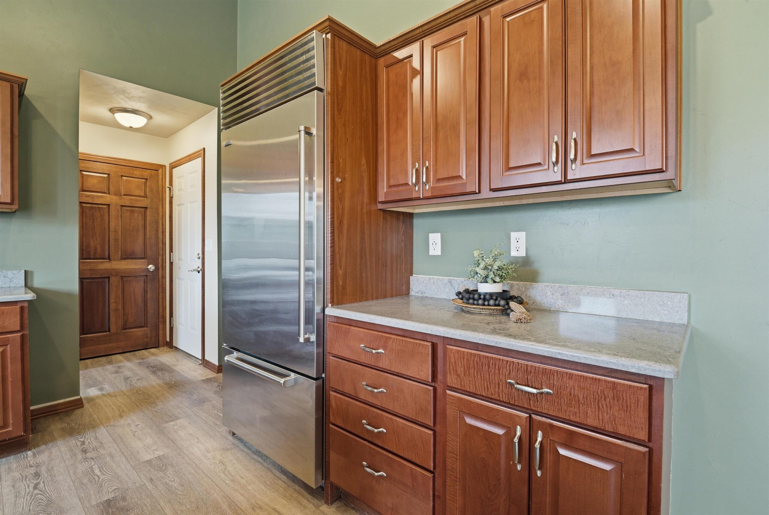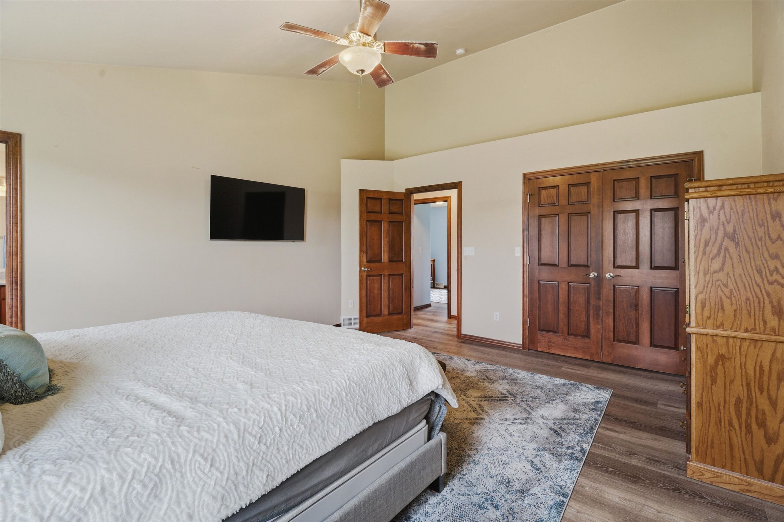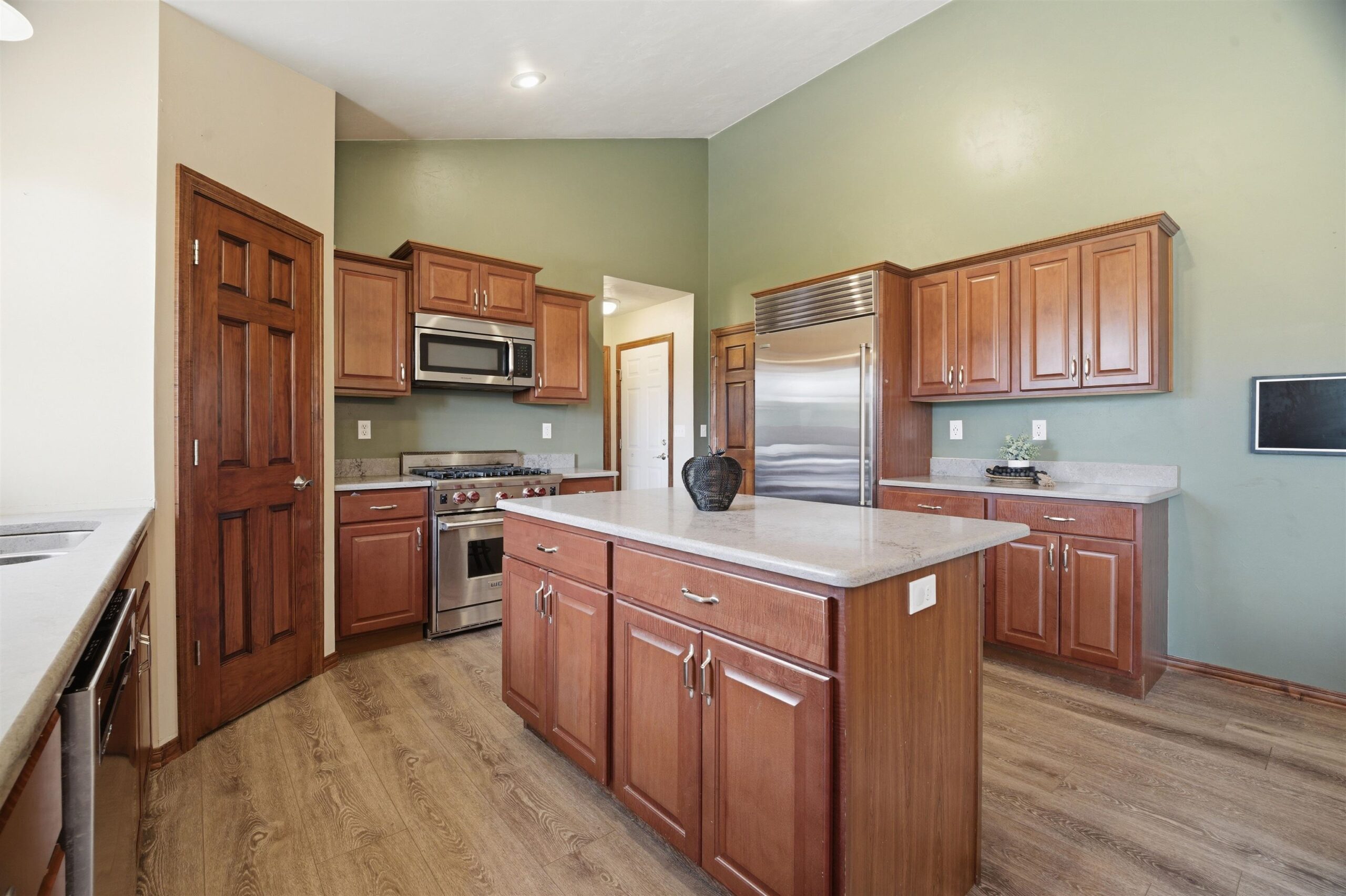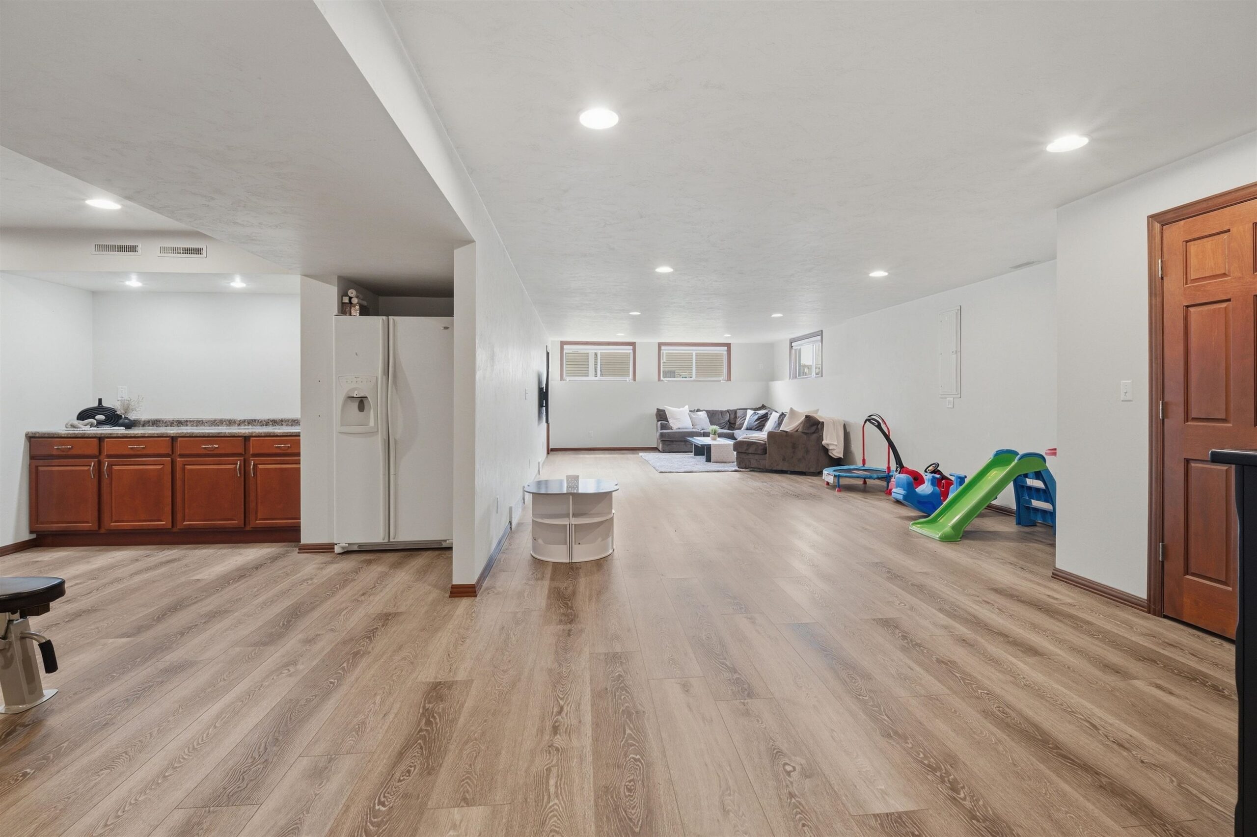 Discover this spacious 4BD, 3BA ranch in a highly desirable Greenville Location. The home features a massive, extra-deep 3.5-car attached garage and a large, inviting living room centered around a cozy gas fireplace. The gourmet kitchen is a chef’s dream, equipped with a center island, walk-in pantry, and a premium Sub-Zero refrigerator. The main level offers a luxurious primary bedroom with a full private bath, two additional spacious bedrooms, a second full bath, and convenient main-floor laundry. The finished lower level is an entertainer's paradise, boasting a versatile rec room, a comfortable family room, a private fourth bedroom, and a third full bath. Outside the sprawling deck and spacious yard are perfect for outdoor enjoyment and relaxation.