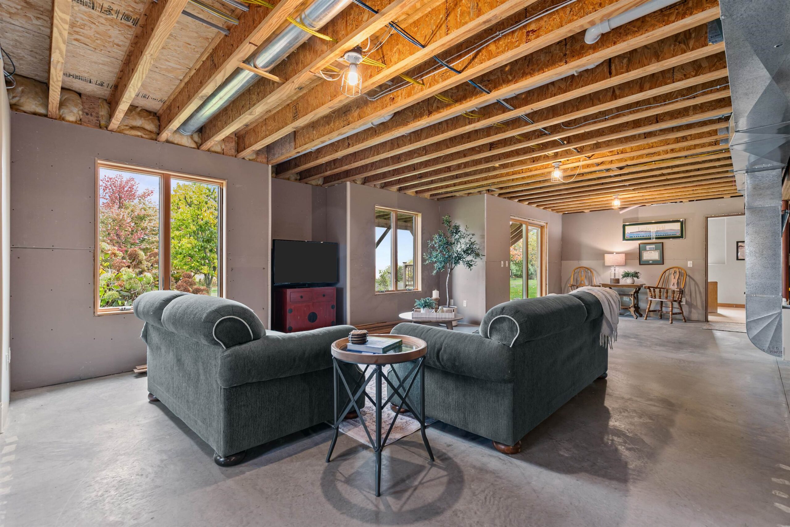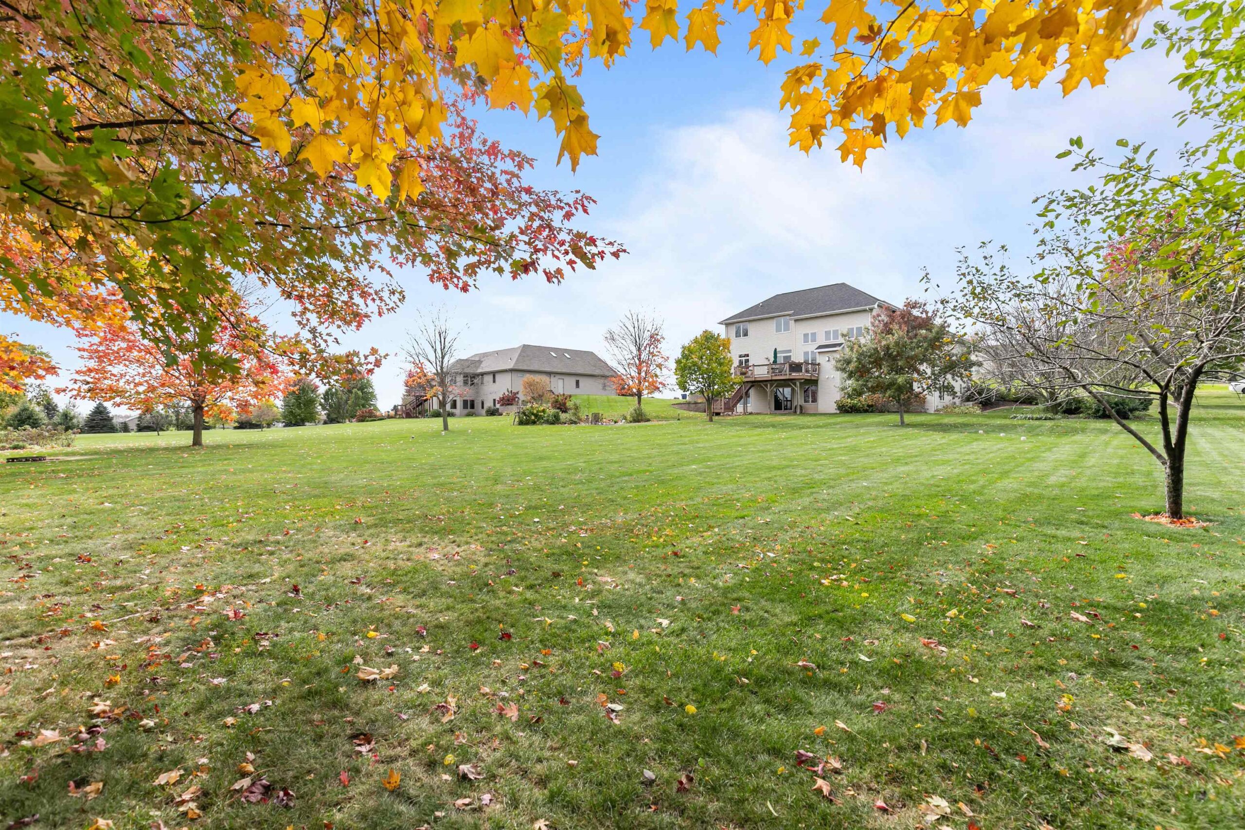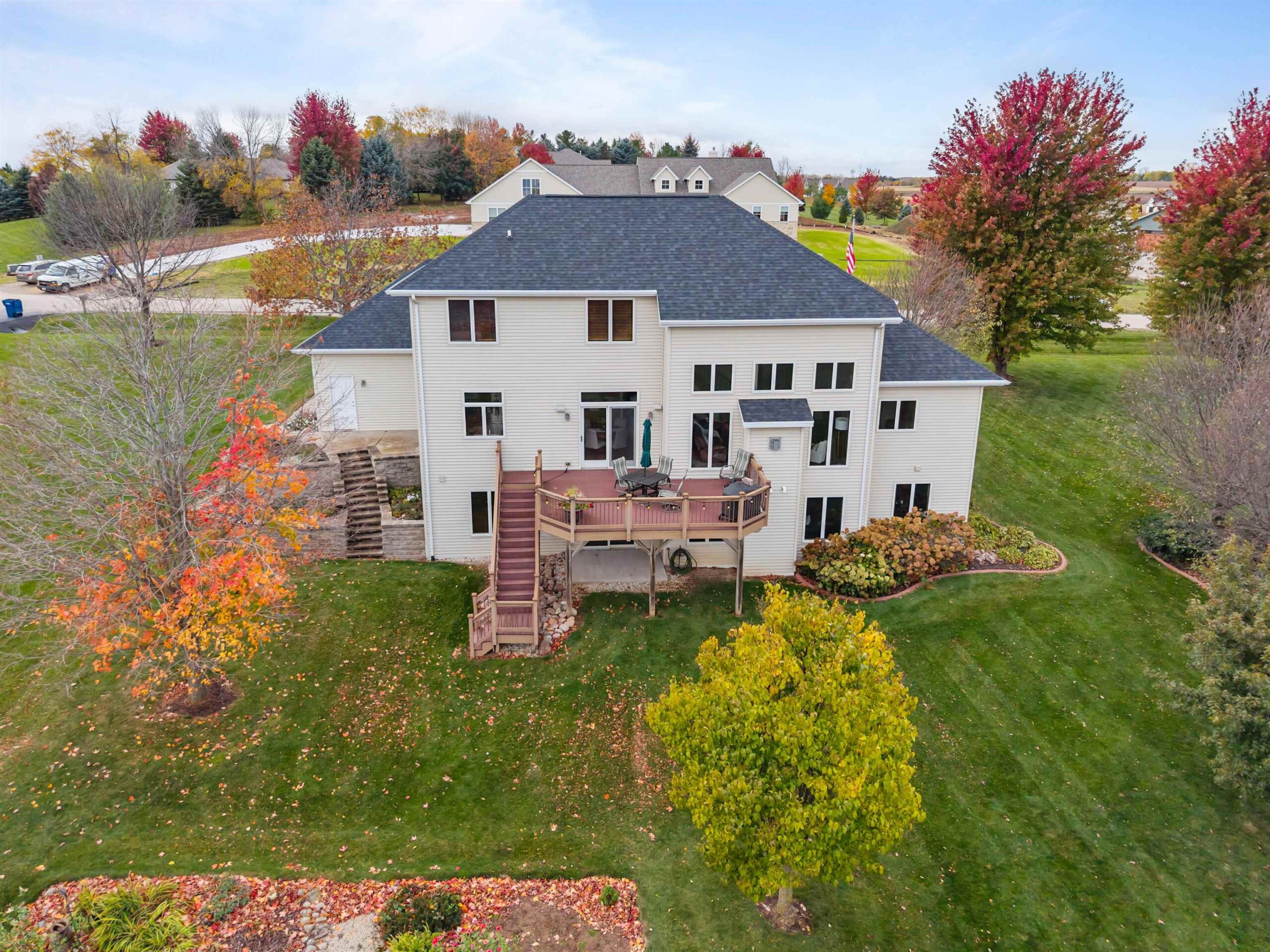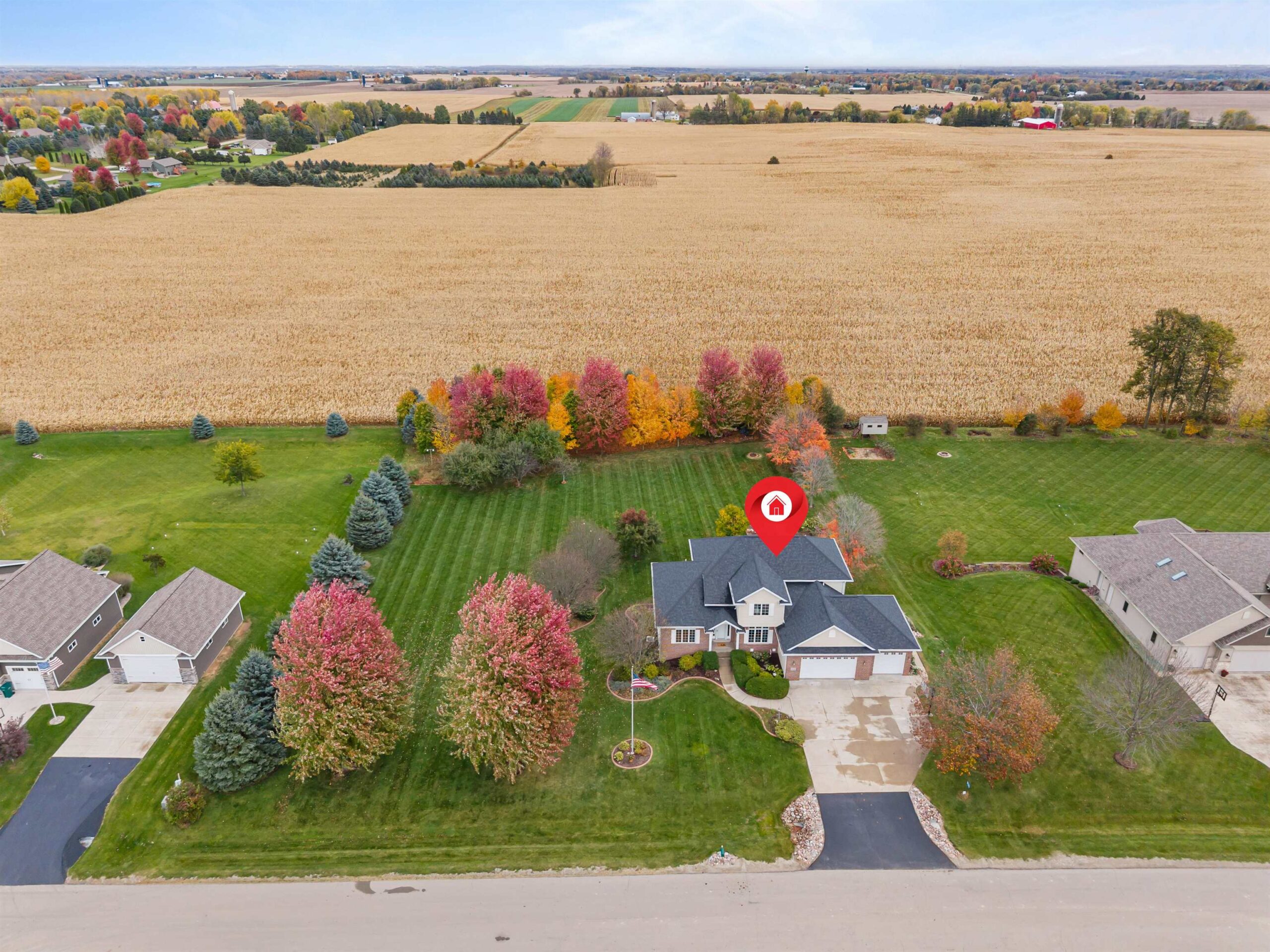 Experience peaceful living at this beautifully crafted home in Hortonville, nestled on over an acre in a desirable country subdivision. Step into a sun-soaked great room with high volume ceilings, cozy fireplace, and panoramic views of beautiful mature trees and rolling fields. The kitchen features solid cabinetry and an adjoining dining area with wet bar; plus there's a formal dining room off the foyer that could make a great office. The luxurious main-floor primary suite offers dual sinks, a walk-in shower, and a jetted soaking tub. Upstairs, you’ll find three additional bedrooms & a full bath with dual sinks. The walkout lower level includes an office (optional 5th bedroom) & another full bath, plus potential to add more living space, ideal for work or guests. 48 hr response for offers.