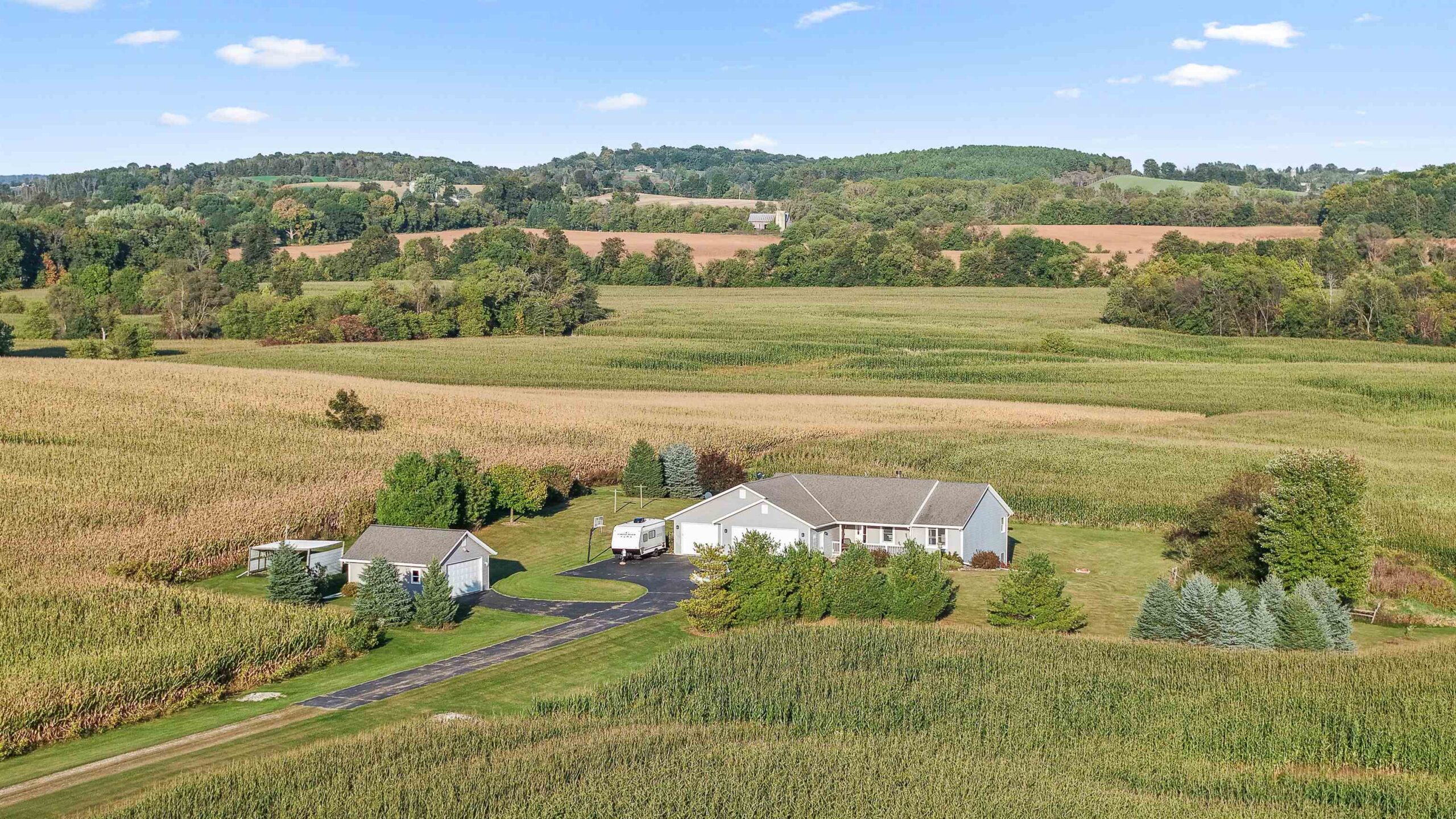 A rare rural find just south of Fond du Lac this 3BR 3BA 1 story walkout ranch overlooks nearly 30 acres! So much to love about this home built in 2006 3 BR on the main level Master Suite with Full Bath and Walk in Closet! Kitchen offers Rustic Hickory Cabinets and Elm Hardwood Floors, Main Floor Laundry Room, Insulated, Textured and Drywalled Heated attached 3.5 car Garage. Additional 2 Car Detached Garage, Wood Shed, Dog Kennel w/ Concrete Patio, Weather all deck to capture all the panoramic views! Private well & at-grade septic. Move in Ready just minutes south of Fond du Lac in the Town of Eden. Have the luxury of walking to your Hunting land through your backyard. The ultimate Central WI Home and Recreational land package!