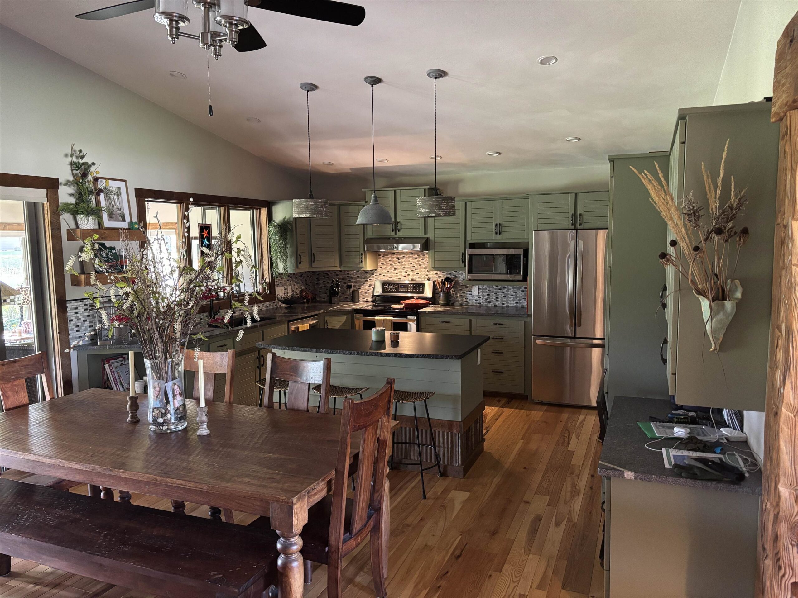 Come enjoy country living yet minutes from town. Beautiful ranch located on over an acre surrounded by perennials and wildlife. Hardwood floors throughout the main floor and many updates throughout with rustic touches.Central vac and lots of storage throughout home. Granite countertops in kitchen and laundry. Another full kitchen and family room with wood burning stove in the lower level along with a flex room and full bath. Outdoors there is an inground pool and many gathering areas. Shed located in the woods waiting for your touches. Low town taxes.