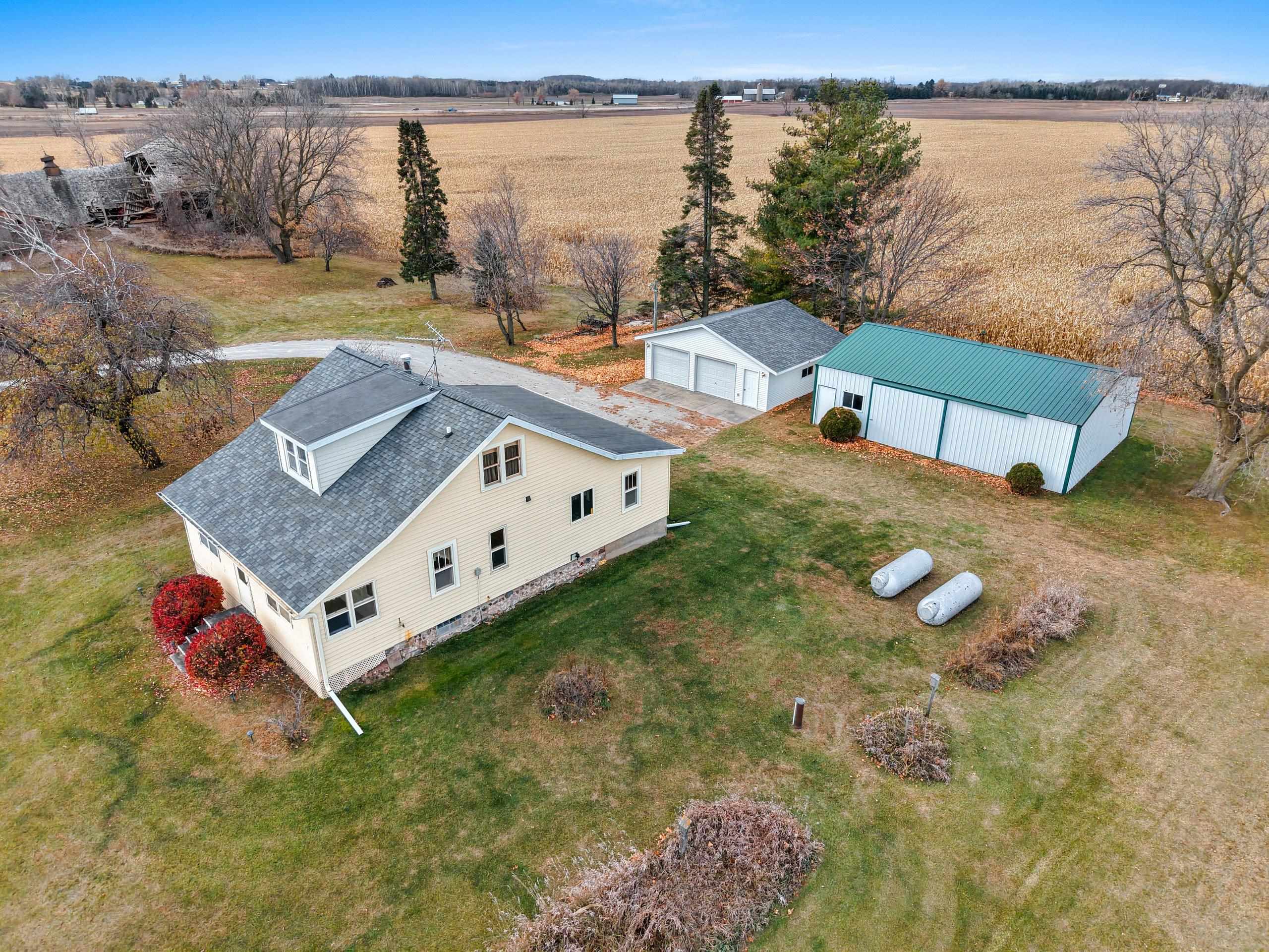 Experience peaceful country living on approximately 2.5 acres, surrounded by open space and endless potential. Inside, the home features an updated kitchen, dining room, sunroom with laundry, and two cozy main-level bedrooms. The upper level offers a third bedroom and an expansive 16'x25' unfinished area ready for future customization. Hobbyists and those needing extra storage will appreciate, the 27'x24' garage and a 40'x30' pole building. A wonderful opportunity to enjoy space, country living, and room to grow. *Final acreage to be verified by survey prior to closing.