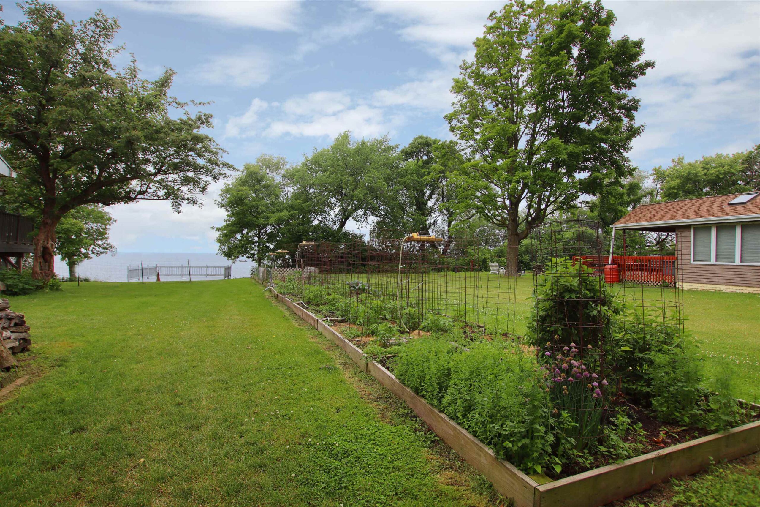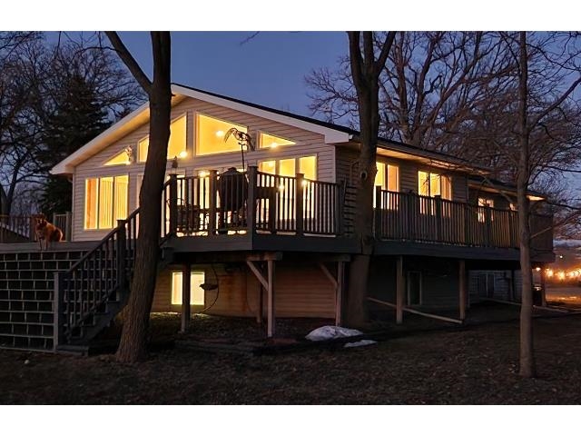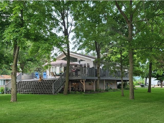 Looking for the perfect year-round lake house with so much more? 120 feet of water frontage, boathouse and pier to watch the sunset, boat landing at the end of the road, wrap around deck with a beautiful view, 1 attached 2 car garage and two additional garages with 6 extra car spaces. Unfinished room is a utility room. This is the home for you in the perfect area. Be the first to make this yours.