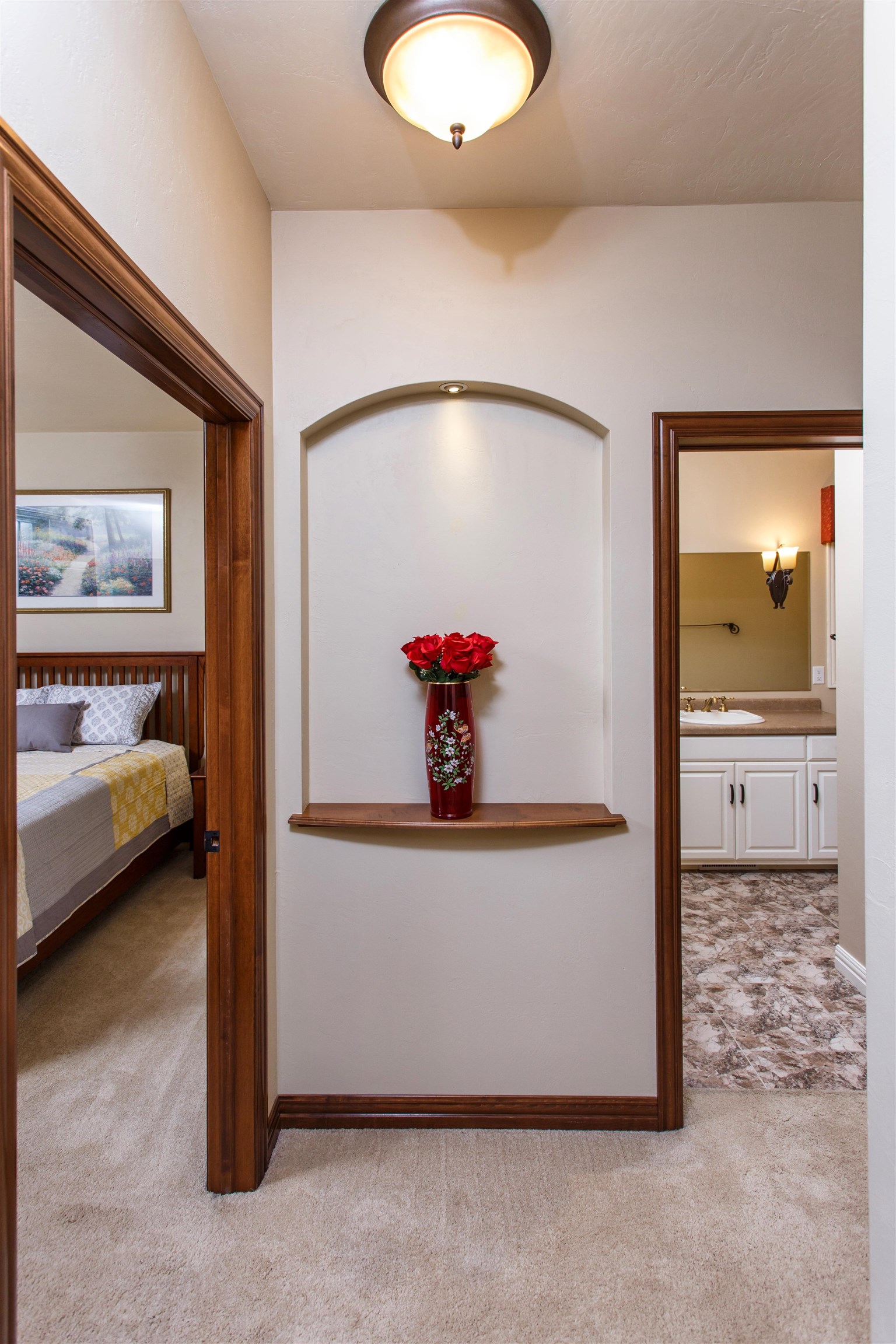 Top quality, well maintained 3 bedroom, 2 bath brick home just outside of Peshtigo. 2.14 Acre wooded site provides privacy and wildlife. Quality construction, great floor plan featuring maple flooring, crown molding, granite countertops and natural gas fireplace. Great views all around. Lots of storage and built-ins. Full basement with insulated floor. Lot next door is also available for sale.