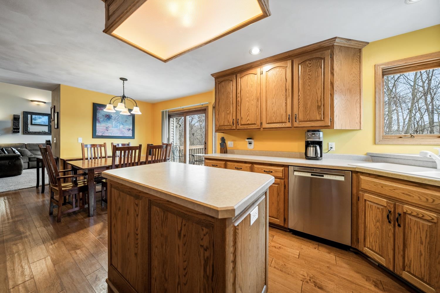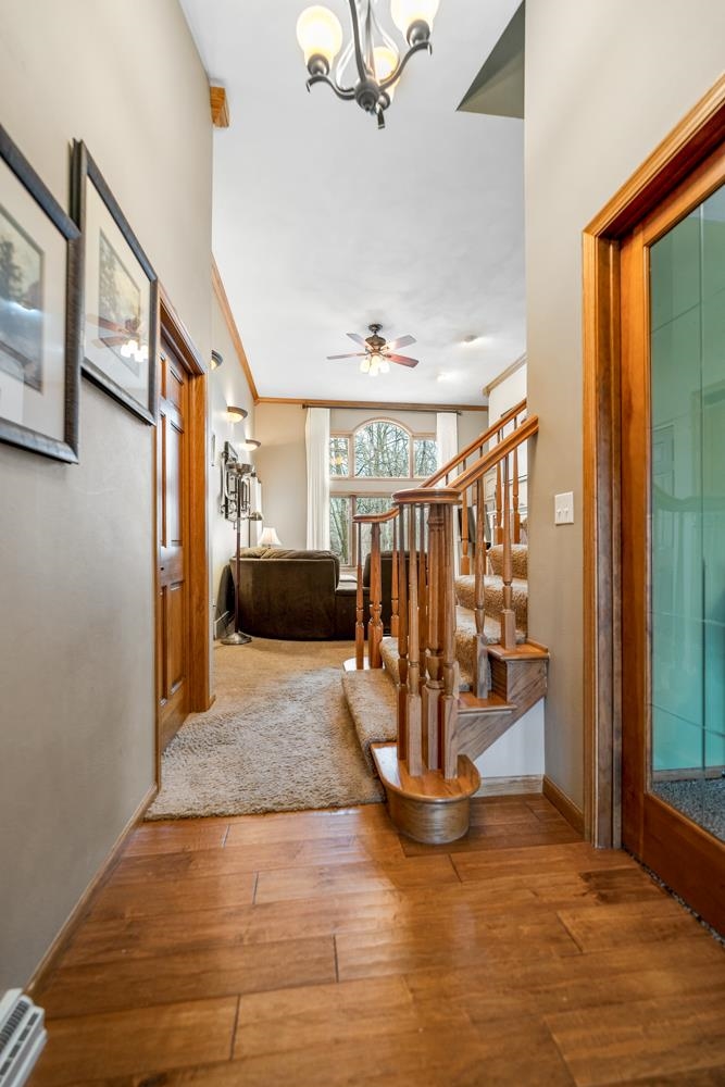 Gorgeous 3BR/3.5BA Contemporary 1.5 story overlooking Gardner Creek! Located in the popular Kimberly School Dist, this home features soaring ceilings with extra large picture windows, 2 gas fireplaces & fml dining rm with french doors. Kitchen w/ appliances (ref, stove, microwave '26), pantry & hewn HW floor. Dinette w/ sliding door opening to deck & natural scenery below. Owner suite w/ walk-in cls & full en-suite. 1st floor laundry & half bath complete mail level. 2nd floor offers 2 bedrooms & updated bath w/ beautiful tile surround. LL adds an impressive 1400+ sqft composed of a cozy fam-rm w/ walkout to patio & fire-pit, rec-rm, 3rd full bath, and large office w/ walk-in sauna! 3-stall garage w/ storage, radon sys, great curb appeal! Listing agent is seller.