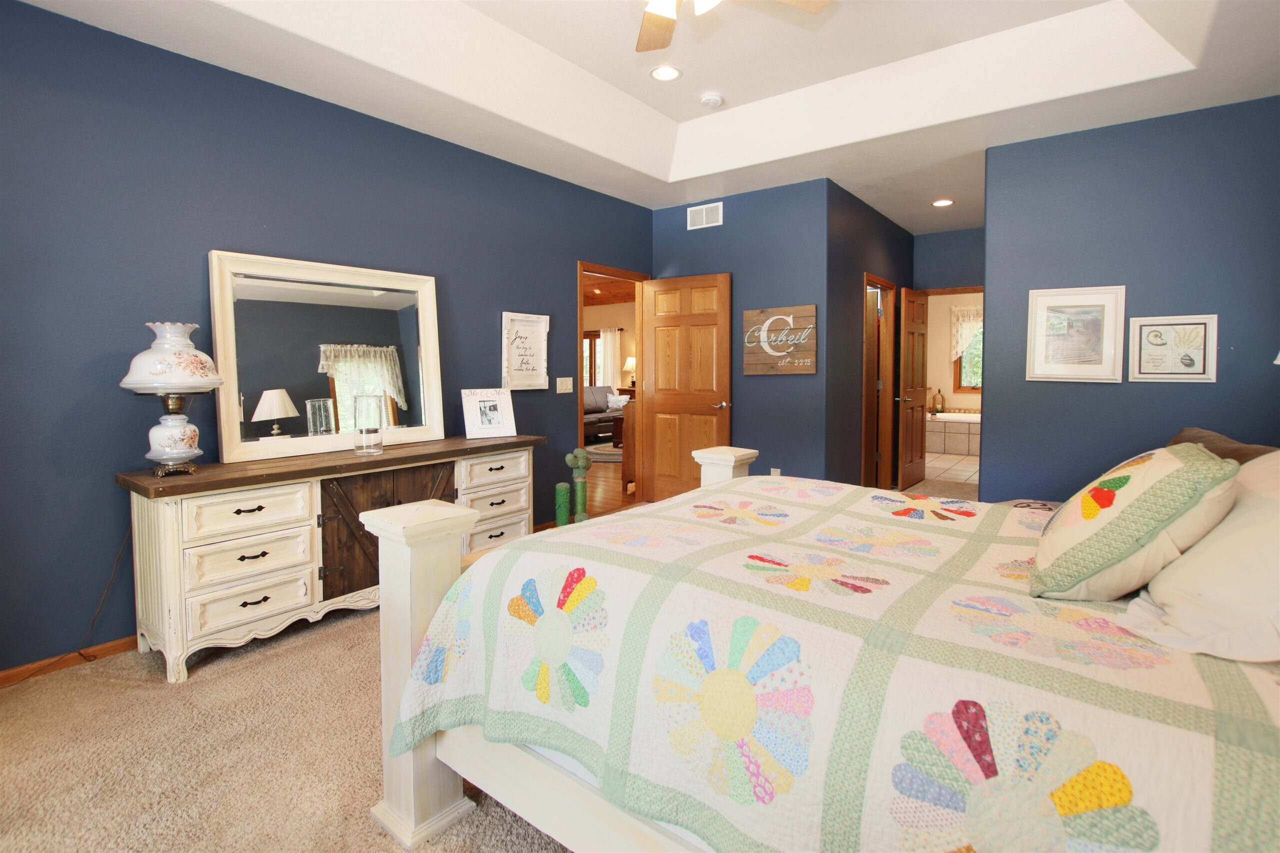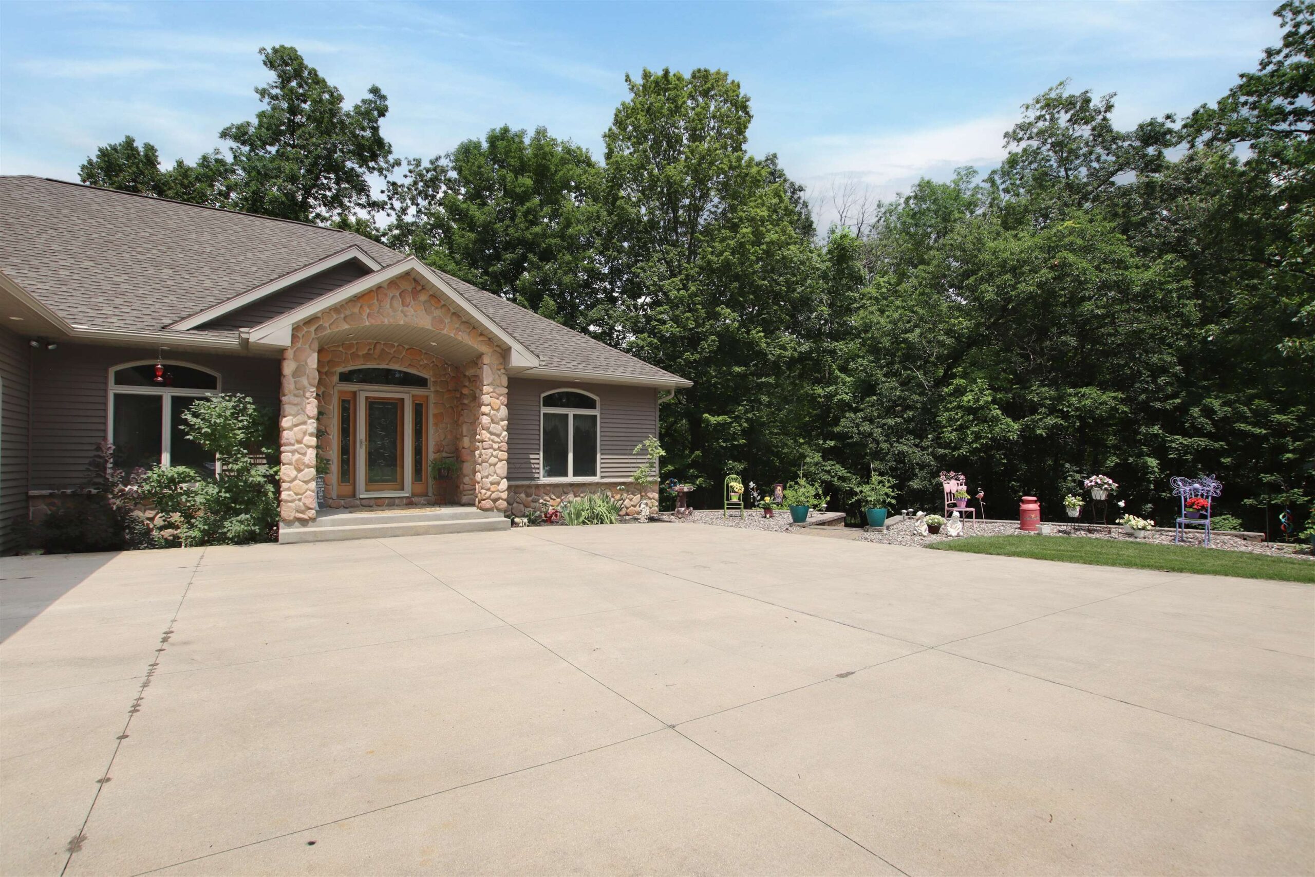 Welcome to your dream home! This 3 bedroom, 2.5 bath ranch includes a completely finished walkout lower level & offers nearly 4,000 square footage! Beautiful 23 ft ceilings with exceptional architectural features including open concept kitchen, dining, & living room. Which also includes a floor to ceiling natural fireplace, pine layered ceiling, & beautiful hardwood floors! The kitchen includes a snack bar, appliance package, & lots of countertop space. The MBR suite offers his & her closets, sinks, tray ceilings, jetted tub, & WI shower! Another 2 bedrooms is offered on the other side of the main floor with a full bathroom between. The Huge LL offers lots of space for entertainment with family room & bar area. Please allow 48 hr binding acceptance. Other room: 1 - LL/Bar/rec area