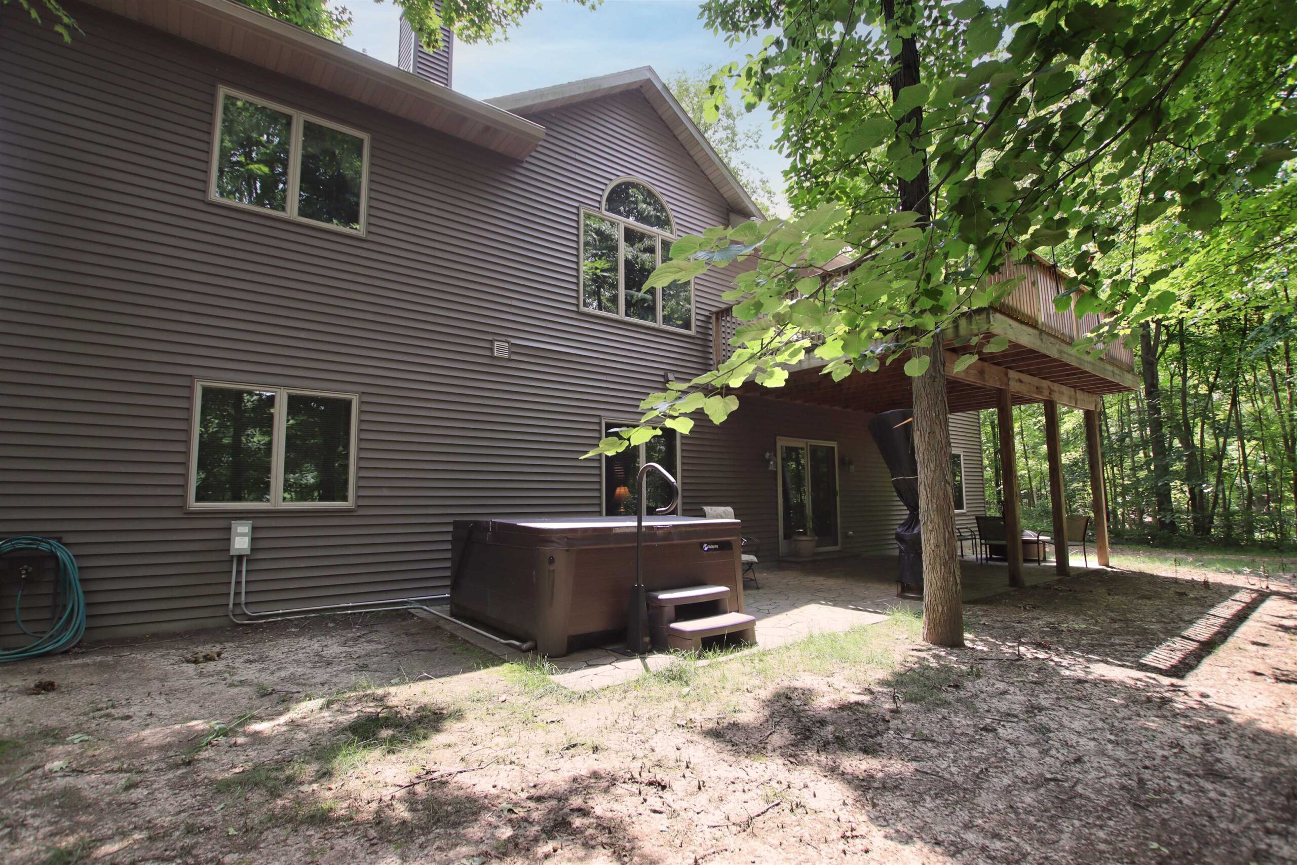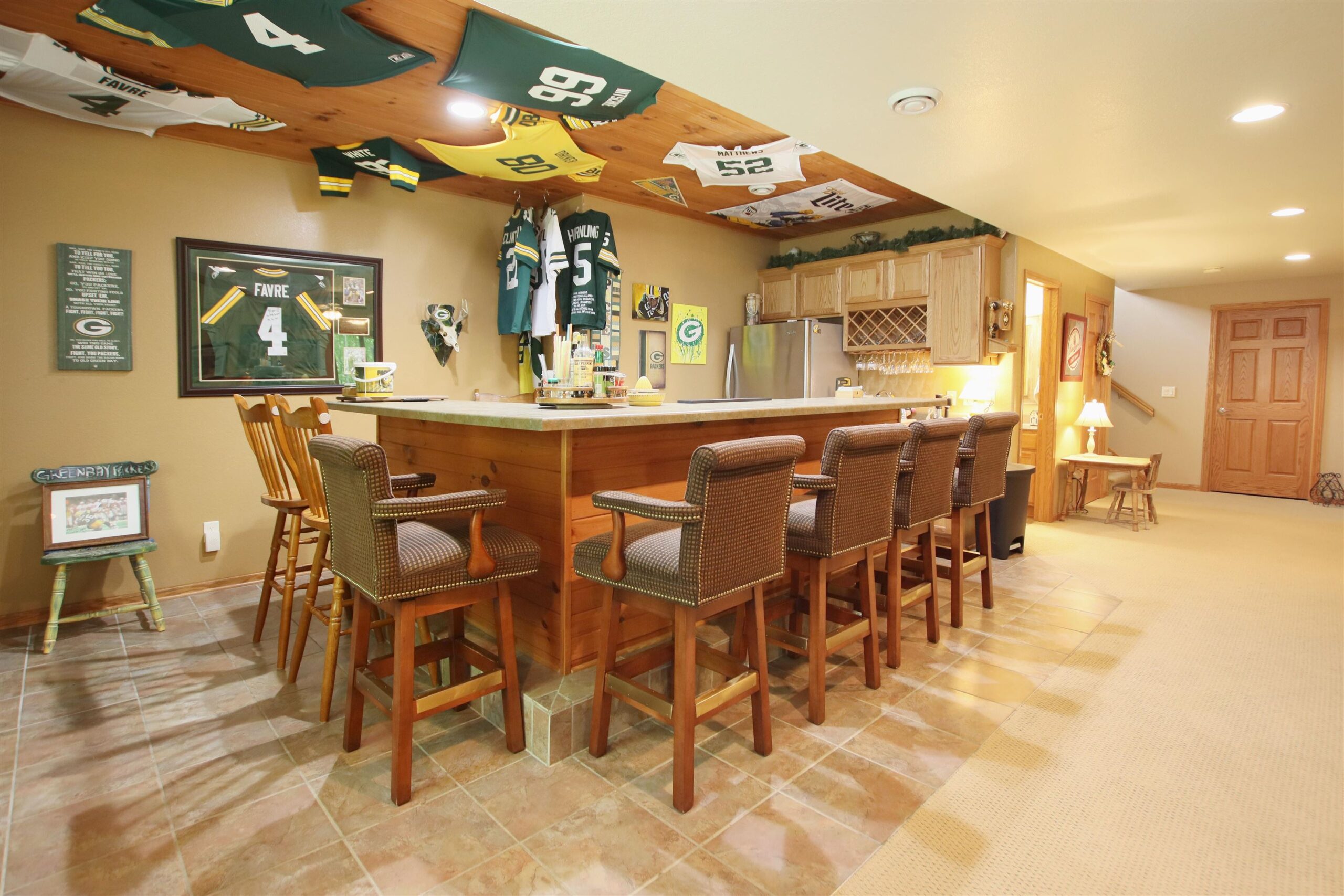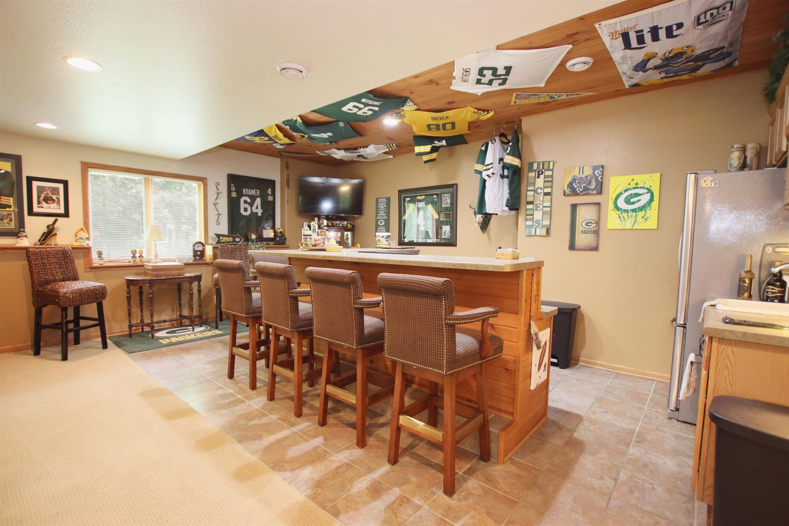 Refrigerator, dishwasher, oven/range, microwave, washer, dryer, hot tub, refrigerator in bar area.