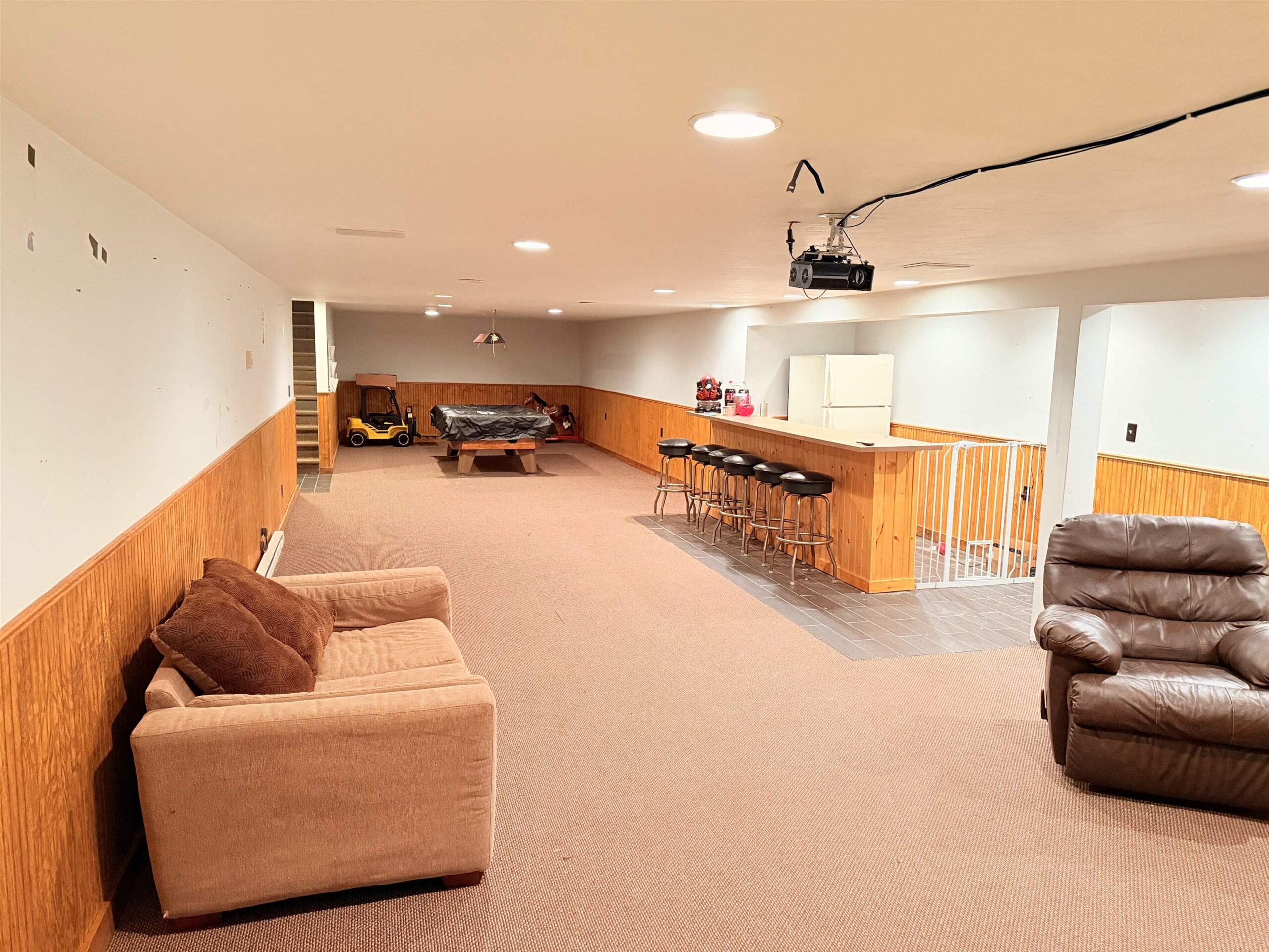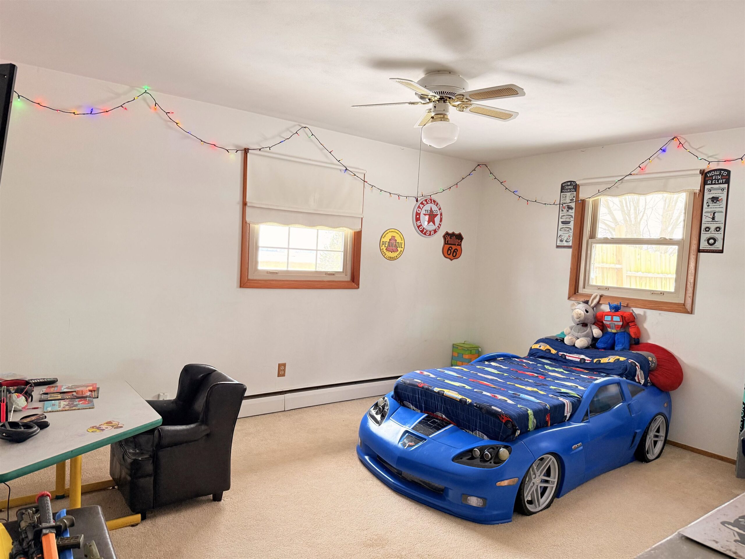 You will love the layout and so much more in this 4 bed, 2 bath ranch home on a FULLY-FENCED .83 acre yard with attached 2.5-car garage AND an insulated 2.5 car BONUS GARAGE w/220. There is space for everyone to spread out in this sprawling ranch--from the family room with wood-burning FIREPLACE for ambience to the spacious living room off the cook's kitchen to the huge theater room and game room (54x15) in LL with bar to the generously-sized bedrooms. Enjoy the backyard from the covered deck or separate patio area. In addition to the 2nd garage, there is a shed for extra storage.
