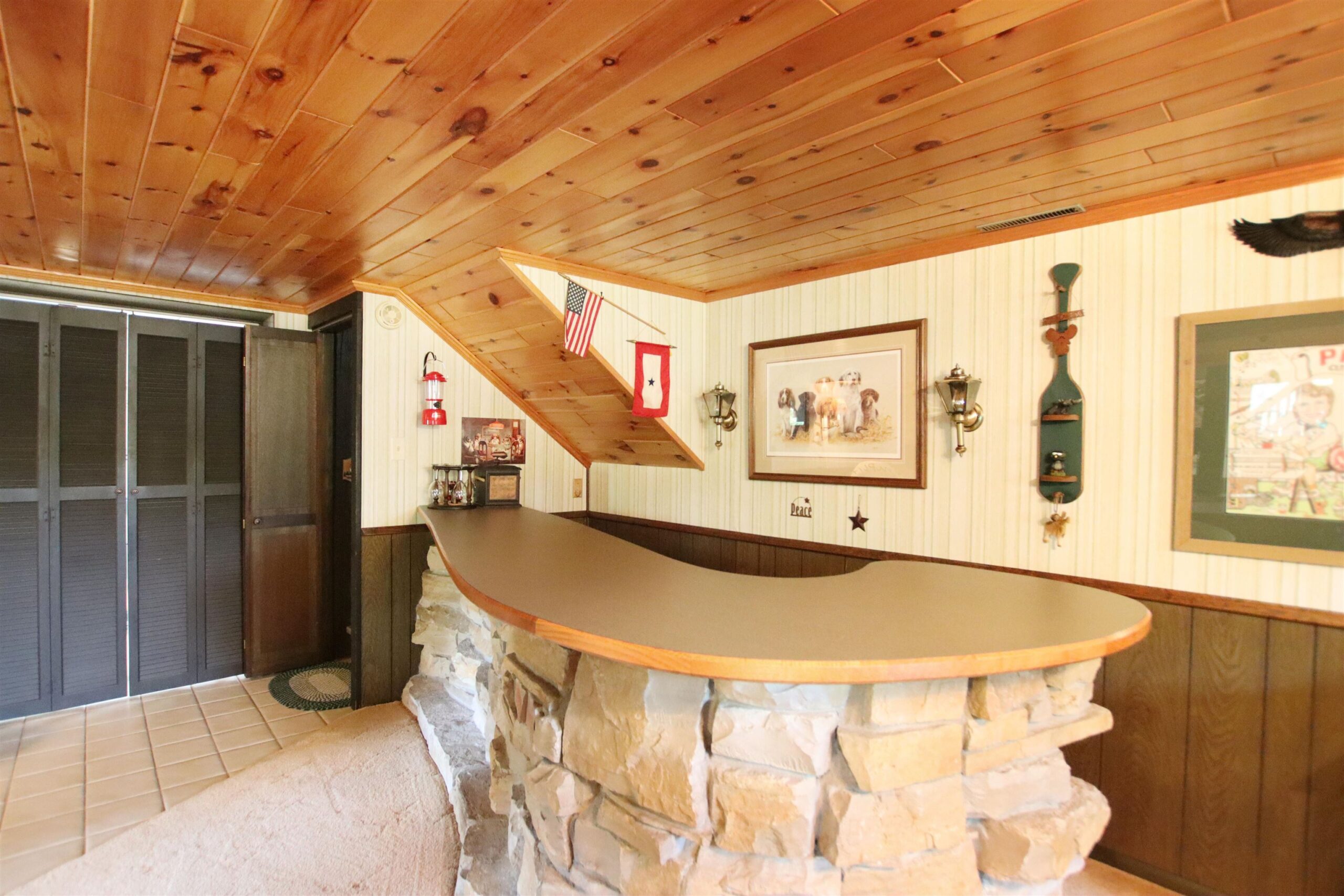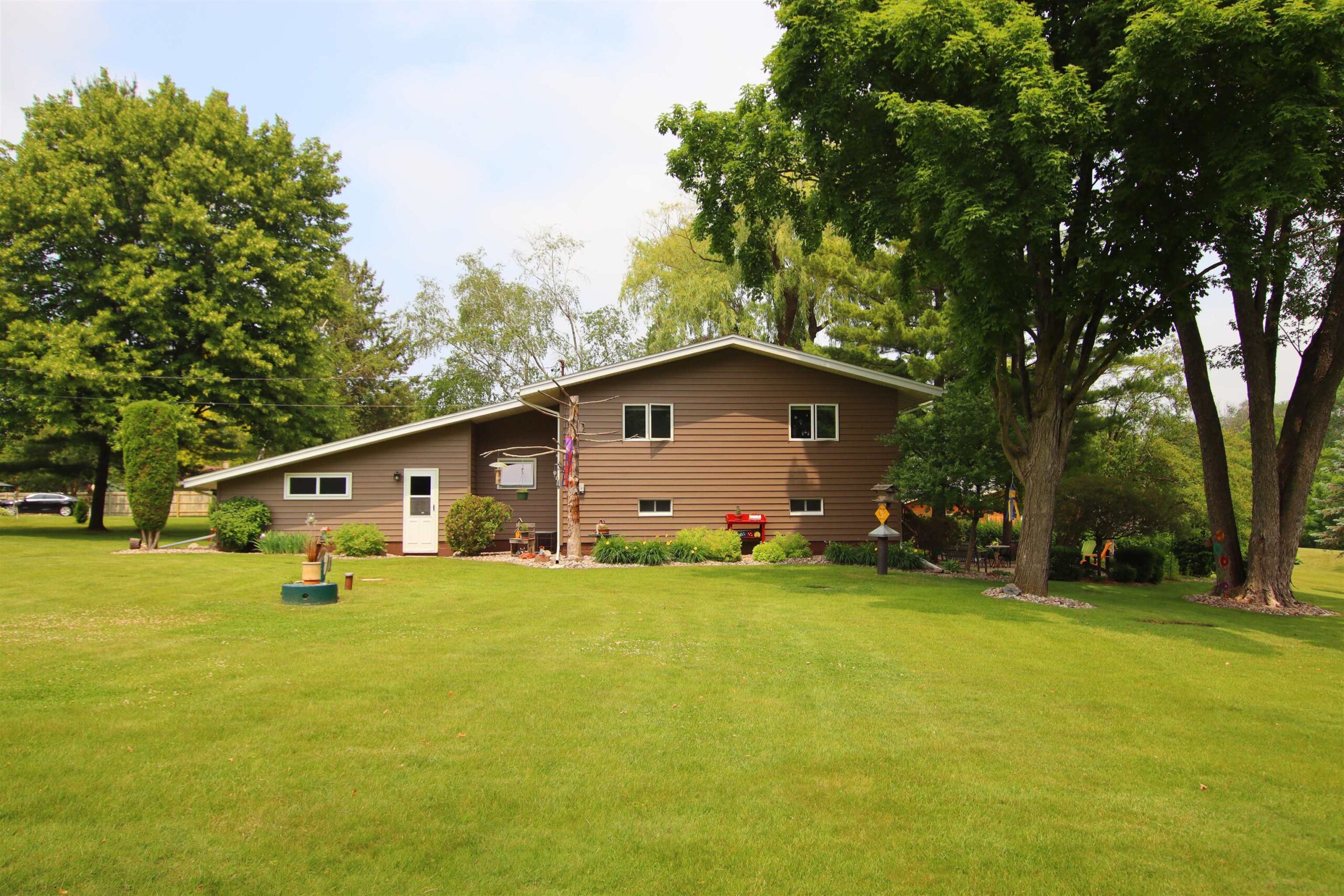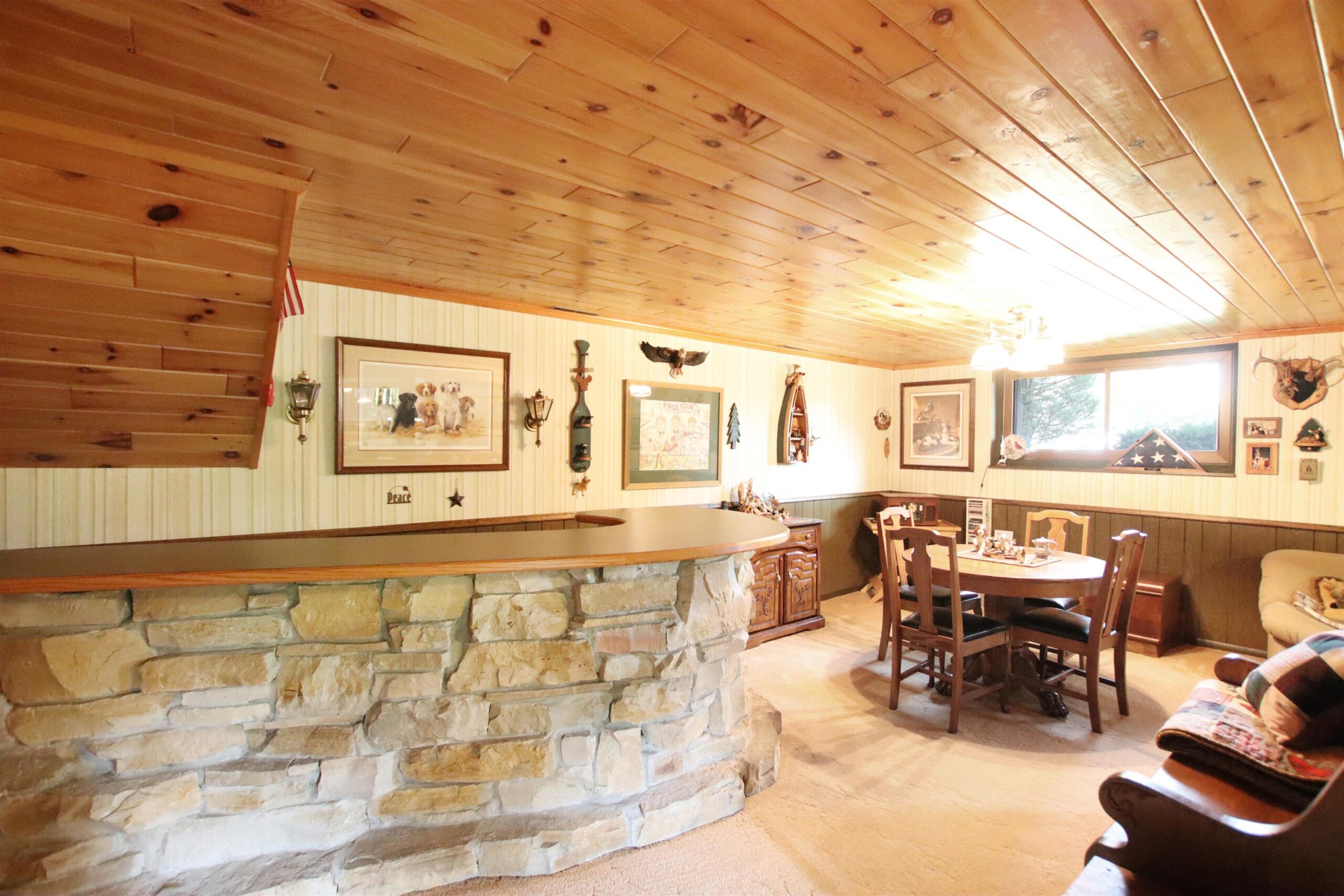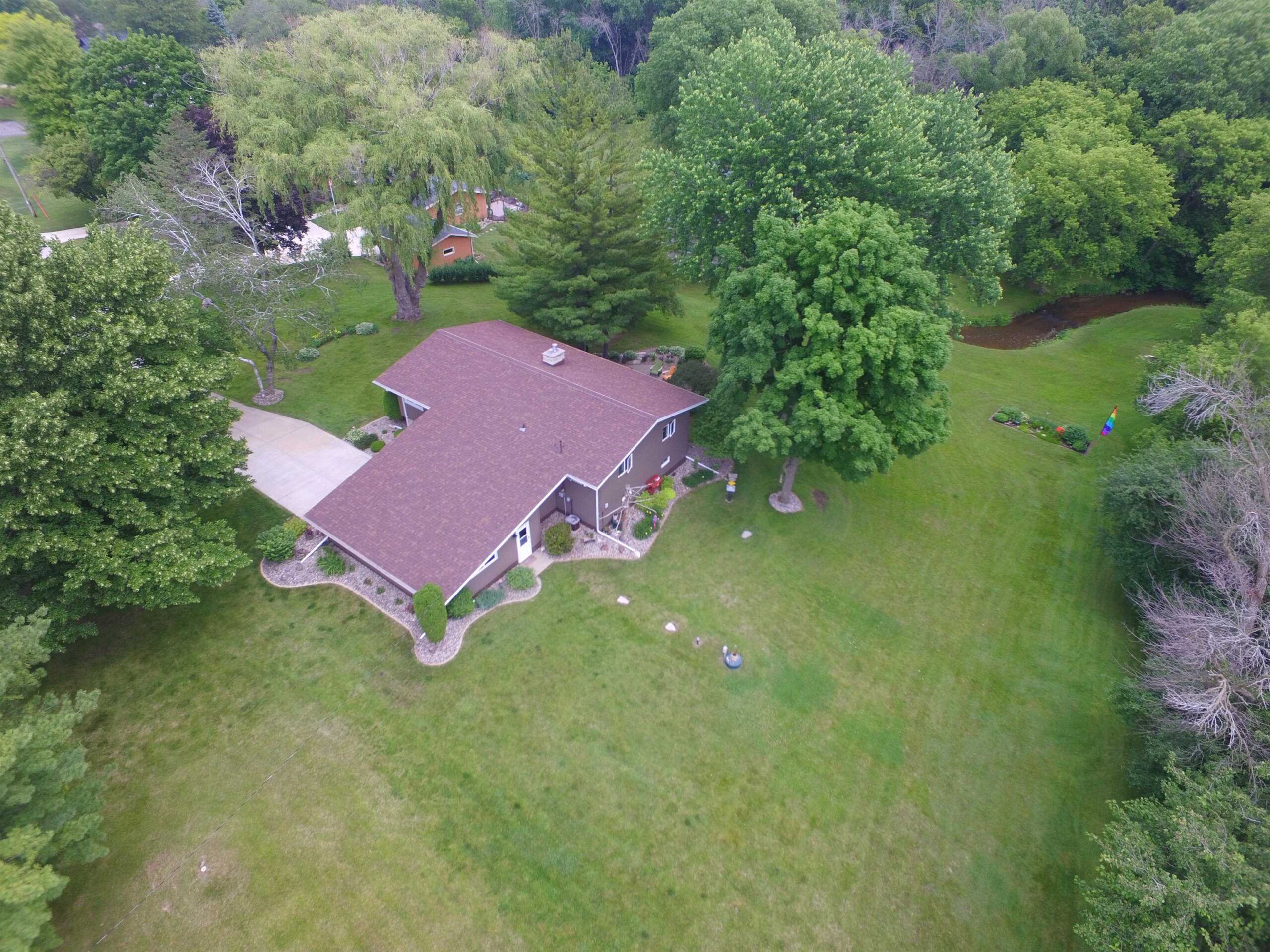 Rarely do homes come on market on Glen Echo Rd and this is one not to be missed. This property combines house and outdoor living space that you hardly ever see in this combination. Lot is appx 1.44 acres with deck, paved patio and firepit, all surrounded by green grass, towering trees, the Deneveu Creek and tons of nature. Tri-level house features 3 bedrooms, 2 full baths and a lower level rec room known as “the lodge” complete with fireplace, stone bar & wood ceiling. Perfect for your trophy buck! Large lower level laundry room and large storage area with workbench attached 2 car garage plus nearly new shed out back. Not just a place to come home to, but a respite from everyday interruptions to really enjoy life. Offers presented 8/7. Zoned rural res. Laundry has painted block walls