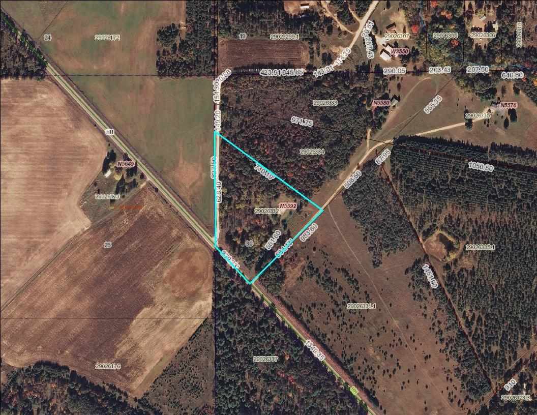 Great 6 acres- partial Wooded Lot with electric. There is a clearing with older concrete slap and garage. Private secluded drive-way off Cty Rd HH, Close to Castle Rock Lake (see pics) and I-94 exit. Great for camping, RV parking for the season or build your home. You can see the clearing from County Rd HH. Much to offer for a Great Price.