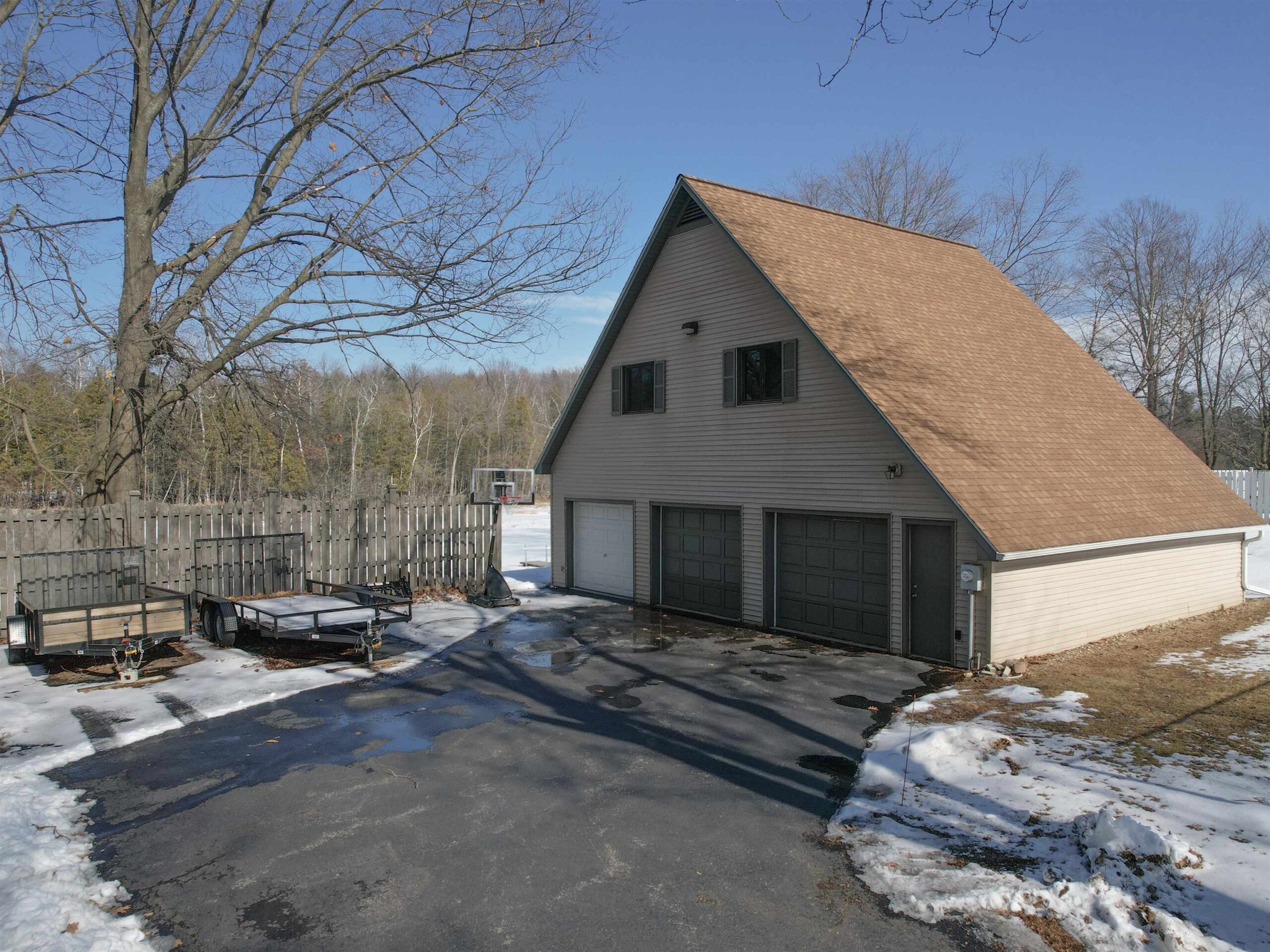 4BR, 4BA executive waterfront home on just over an acre, minutes from town. Home features a sun-filled living room, formal dining, kitchen w/ snack counter & patio doors that lead to the fenced-in yard w/ a patio & heated inground pool. Family room w/gas FP, remodeled half bath, & first floor laundry. Primary suite offers a fully remodeled ensuite plus a spacious flex room (gym/office/craft room). Lower level offers a large rec room, half bath, & crawl space for storage. Numerous updates in the last 4 years: most carpet, interior paint, central air, furnace, on-demand water heater w/ standby tank, dishwasher, microwave, light fixtures, recessed LED lighting (most w/Google access) & more. Plus a 3-car detached garage w/heated workshop & loft. Sq Ft from CubiCasa. Occupancy to be after 5/31