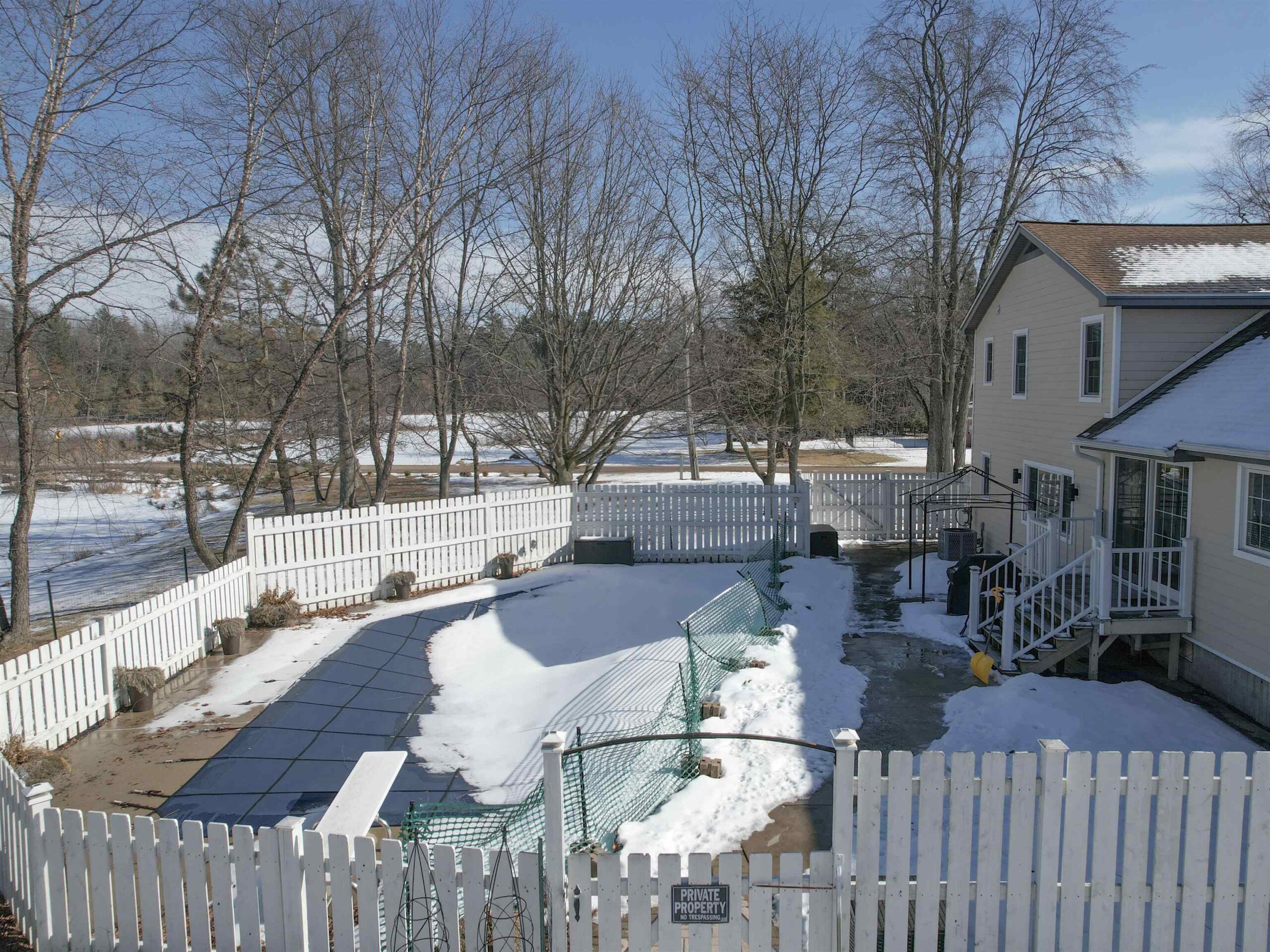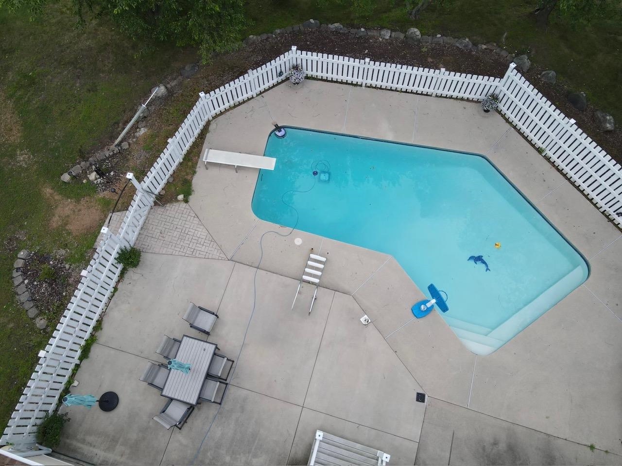 Stove, Refrigerator, TV's on mounts, pool equip & supplies, robot pool cleaner, patio set & umbrellas, deck box, bookcases in LR, security cameras,