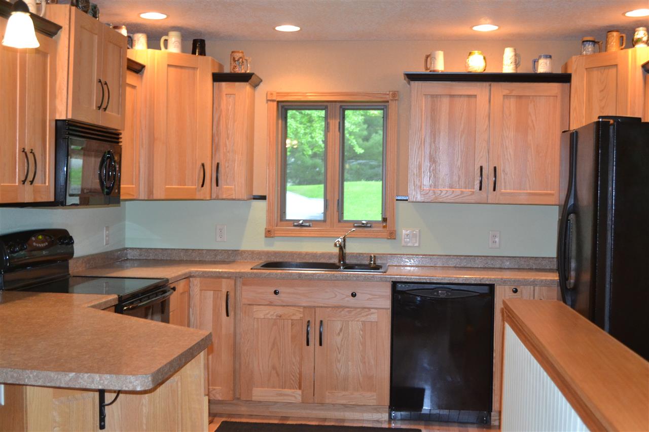 Look no further your northern retreat awaits you on this 2.5 acre wooded lot with spectacular views. This seven year new ranch home features beautiful custom oak kitchen cabinetry, gleaming hickory flooring, and first floor laundry. Everything you'll ever need is on one level. Enjoy the scenery and entertain from the spacious deck. Home features a three car attached garage, a true mechanic's dream. Easy access to the I-94 corridor. Sq footage approx. per seller.