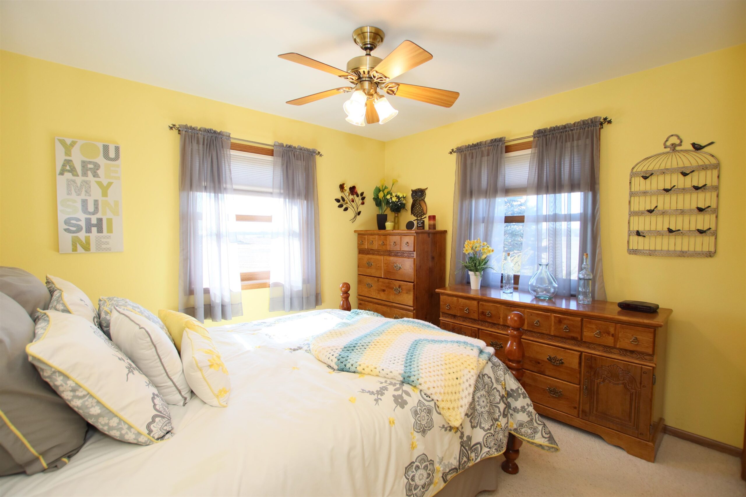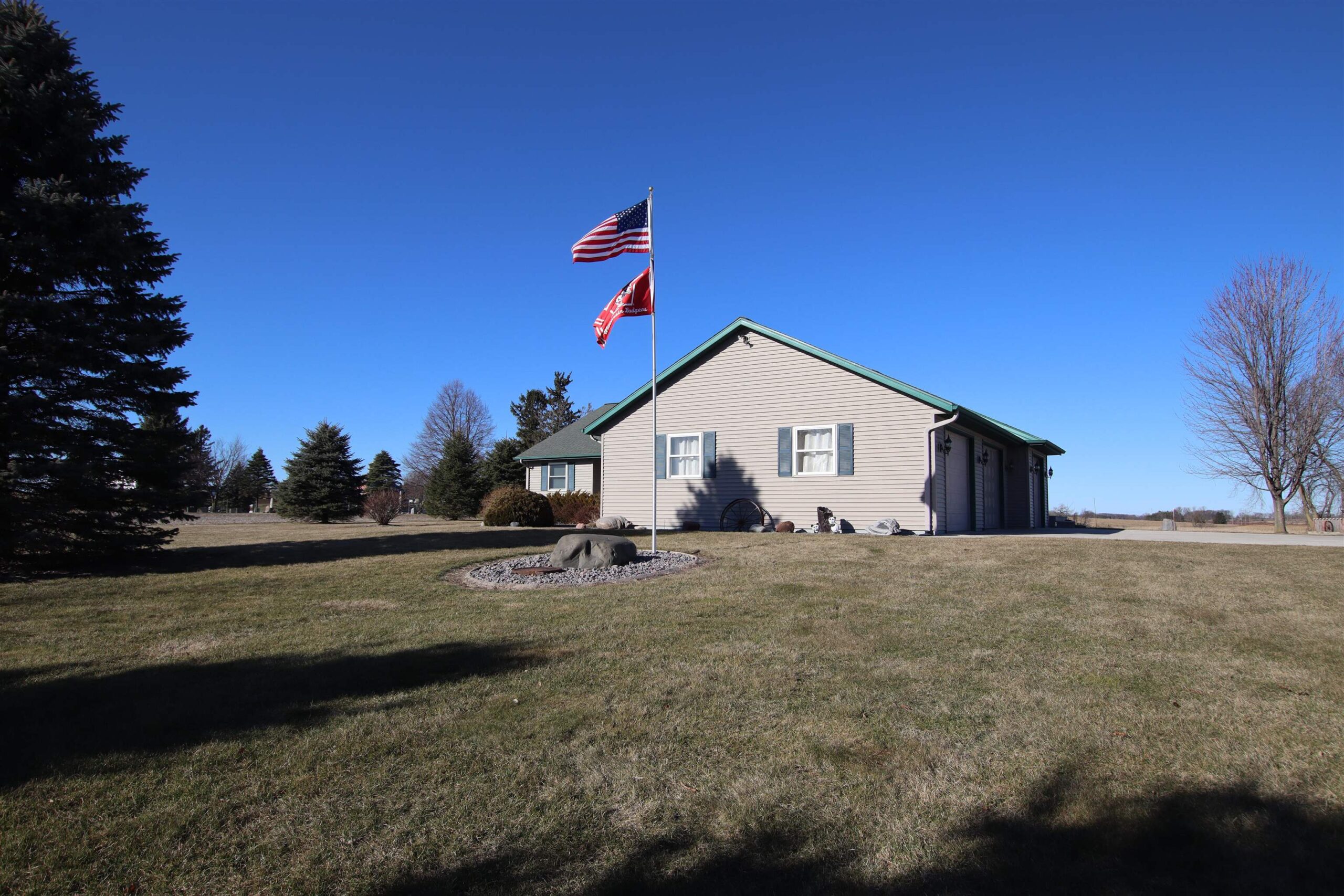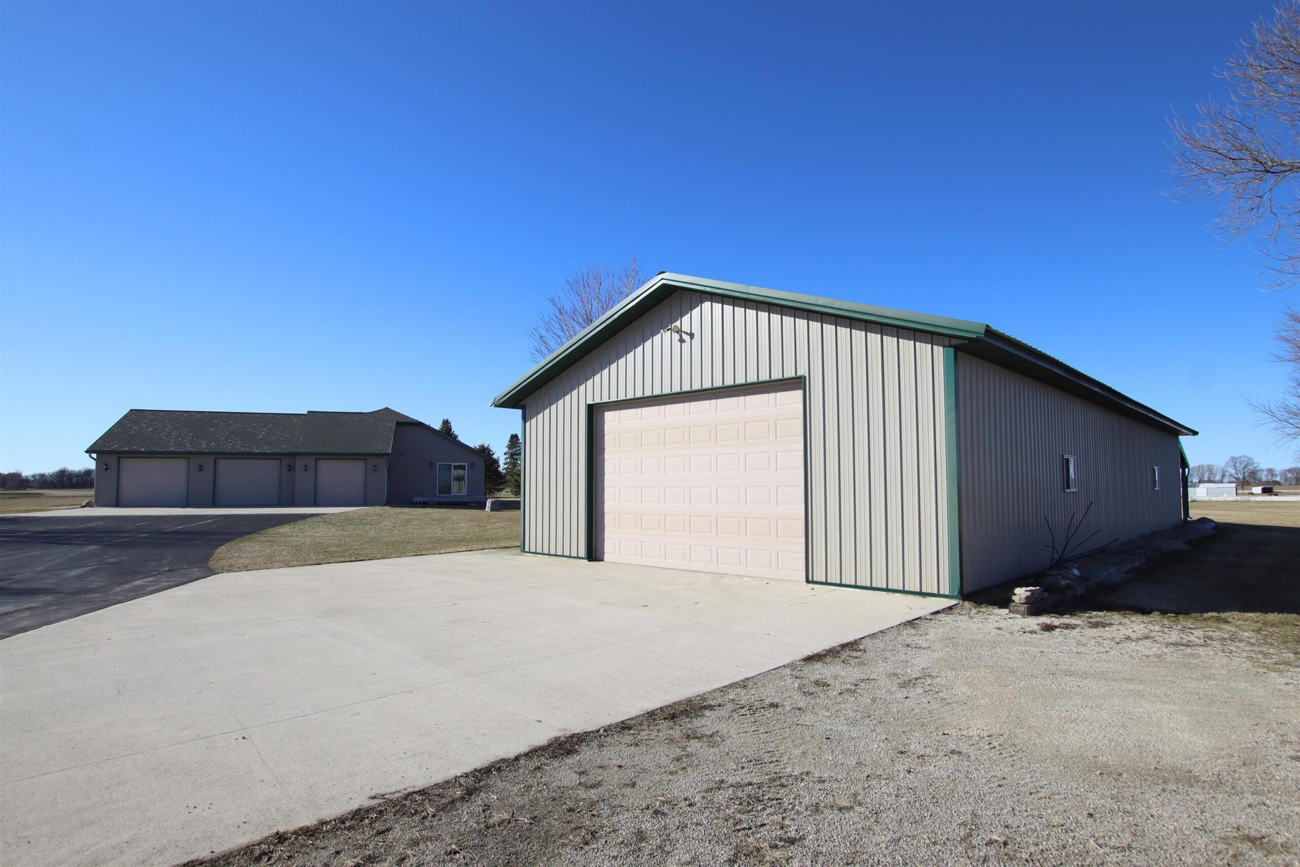 Go Country with this 1,712 sq ft with 70x30 Pole Shed overlooking appx 14.12 acres of land. Featuring 3 bedrooms, 2.5 bathrooms, a spacious living room with vaulted ceilings, arge kitchen & main floor laundry. Attached 3-car garage is insulated, drywalled, & painted, including a short stall of 12x12. Full Basement has a walk up to the garage, 9ft ceilings, a canning kitchen w/ cabinets & gas stove. Pole Shed is partially finished insulated & wood-sheathed, w/ in-floor radiant heat currently disconnected from the outdoor wood furnace. Home is currently heated/cooled with LP Gas. The shed also features a 10 ft overhead door & is separated into two interior areas by a 7 ft interior overhead door. Farmer pays annual Crop Year Lease on appx 9 acres of land. Simply enjoy the privacy & space!