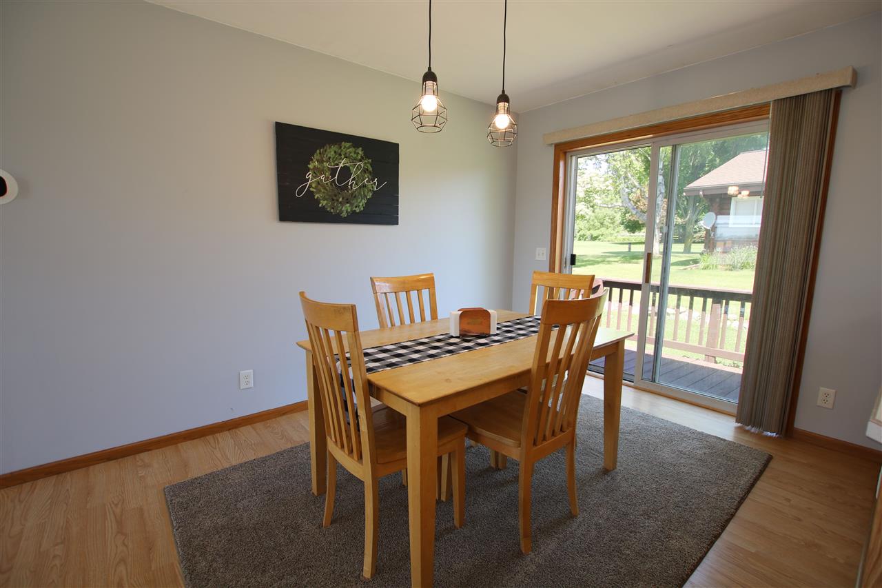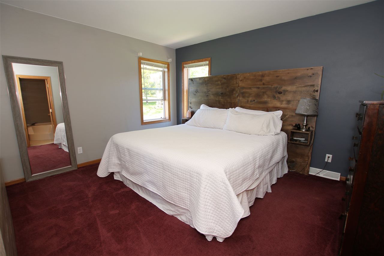Open concept 3 bedroom 2 full bath raised ranch home with desirable location, skylights, full basement plumbed for a bathroom, and close to Big Green Lake. Half acre lot in Sunnyside Acres with convenient access onto Big Green Lake with a country feel overlooking a public walking path. 2.5 car attached garage, first floor laundry, master bathroom with Jacuzzi, separate shower and walk in closet.