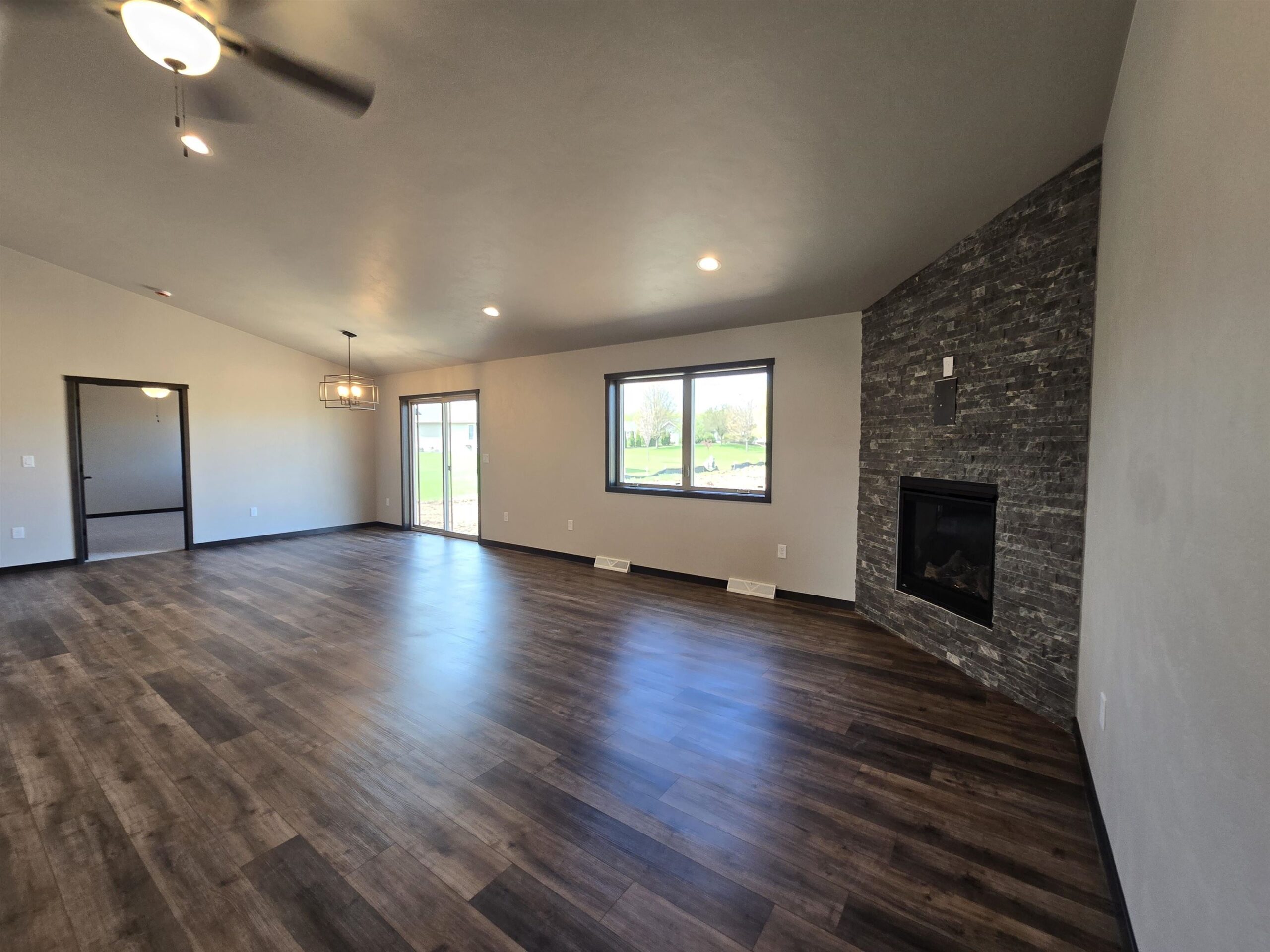 Ready for a new home in the town of Fond du Lac.? TJ's Construction 3BR, 2BA split floor plan ranch home with garage to basement access and many upgrades that are rare on a spec home. Open concept LR, dining, kitchen with large lighted pantry, pull out shelving, pull out trash & recycling. Tile backsplash, quartz counters, under cabinetry lights. Drystack stone gas FP. Luxury LVP flooring. Master suite w/ dual molded marble sinks vanity. Large walk-in shower w/ 2 shower heads and seat. Huge walk-in closet. Full bath with tub/shower combo. LL with egress, radon mitigation, water softener. 3.5 Att garage with 2 openers, hot & cold soft water, drain , access to basement. NO ACCESS without a realtor on site and showing is confirmed by listing agent.
