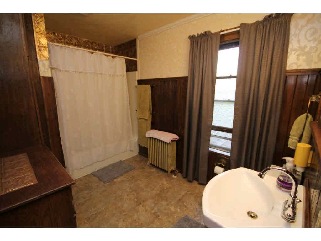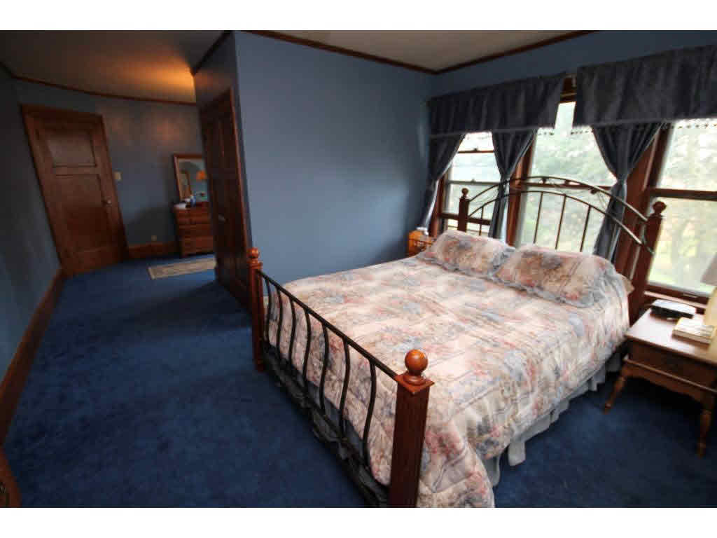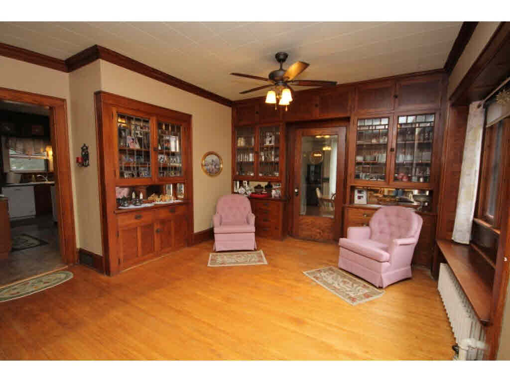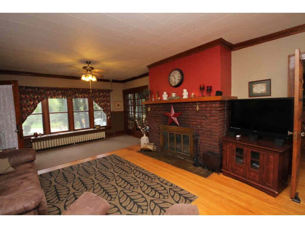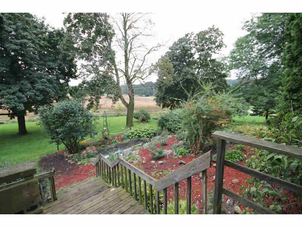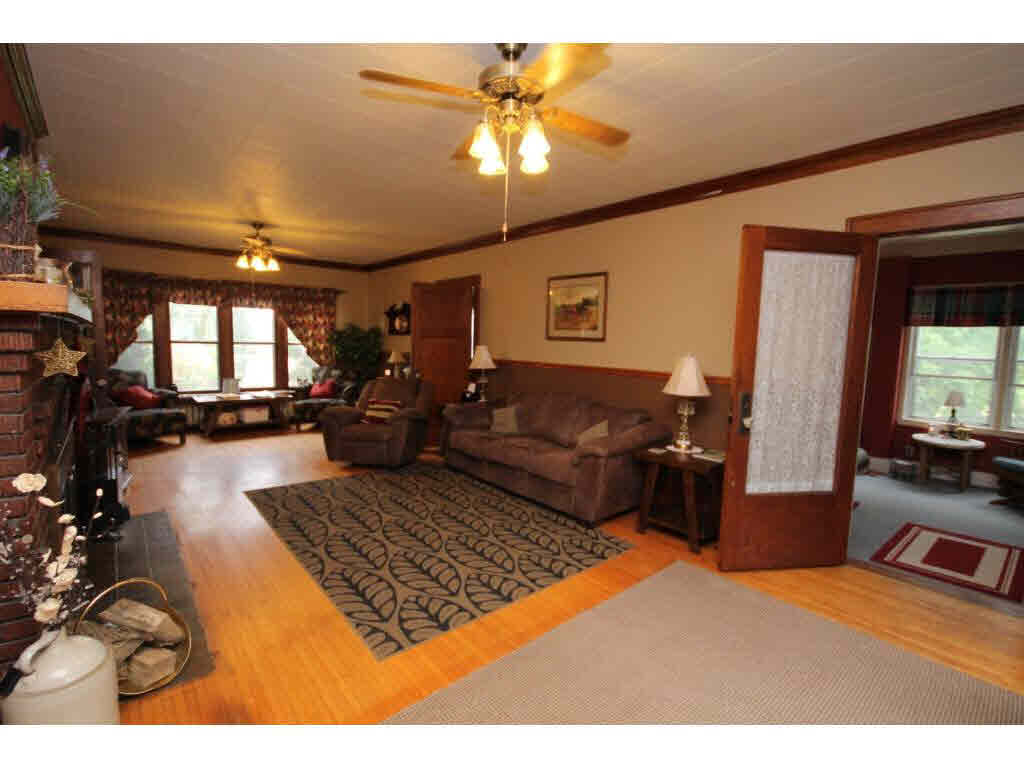Old charm and character.Large open foyer w/winding staircase.Gorgeous woodwork and hardwood floors thru out home.LR with FP, FDR w/french doors, window seats and b/i hutches. Updated kitchen and a main floor laundry.Upstairs includes sitting room,sun room and 5/6 BR. Deck overlooks lovely landscaped yard. Attached 2.5 car garage,storage shed,unique stone structure. 4.8 acres of trails and walkways Heating and Cooling = Hot Water. Foundation = Stone
