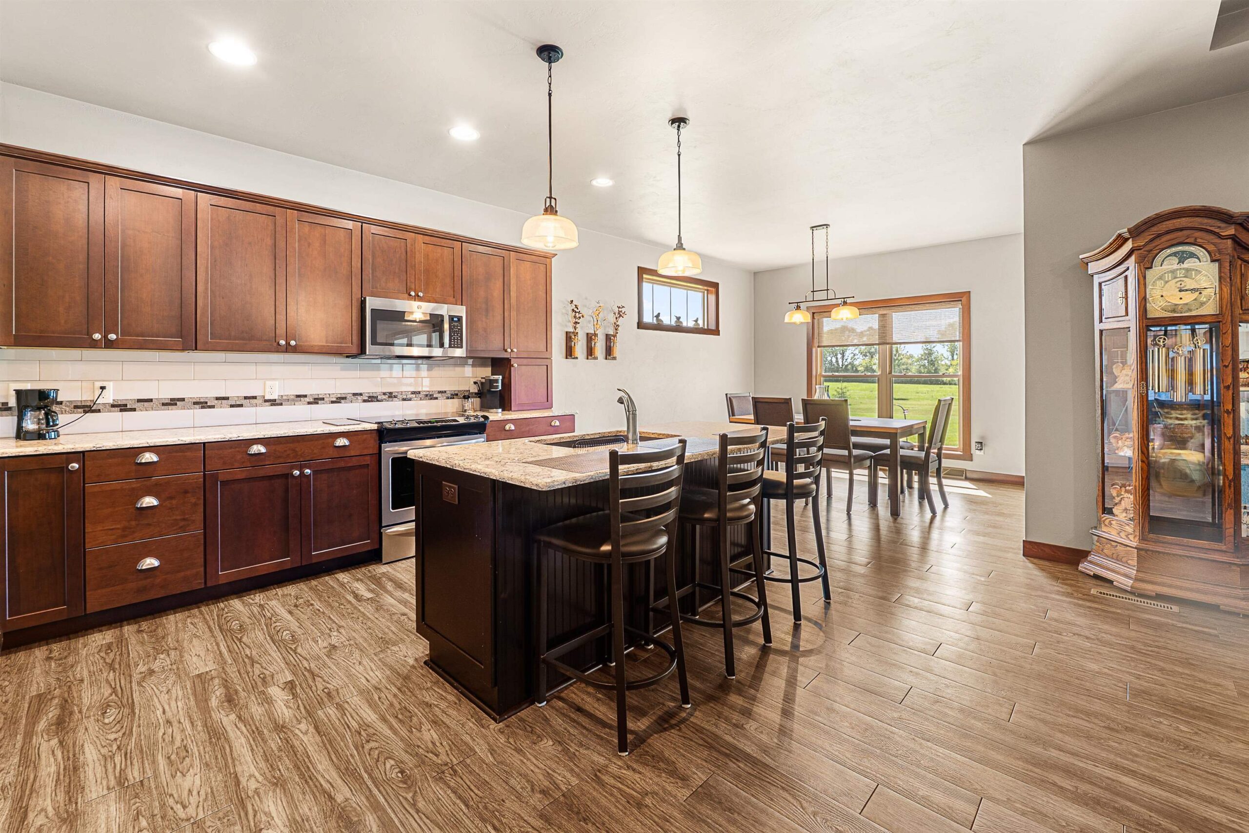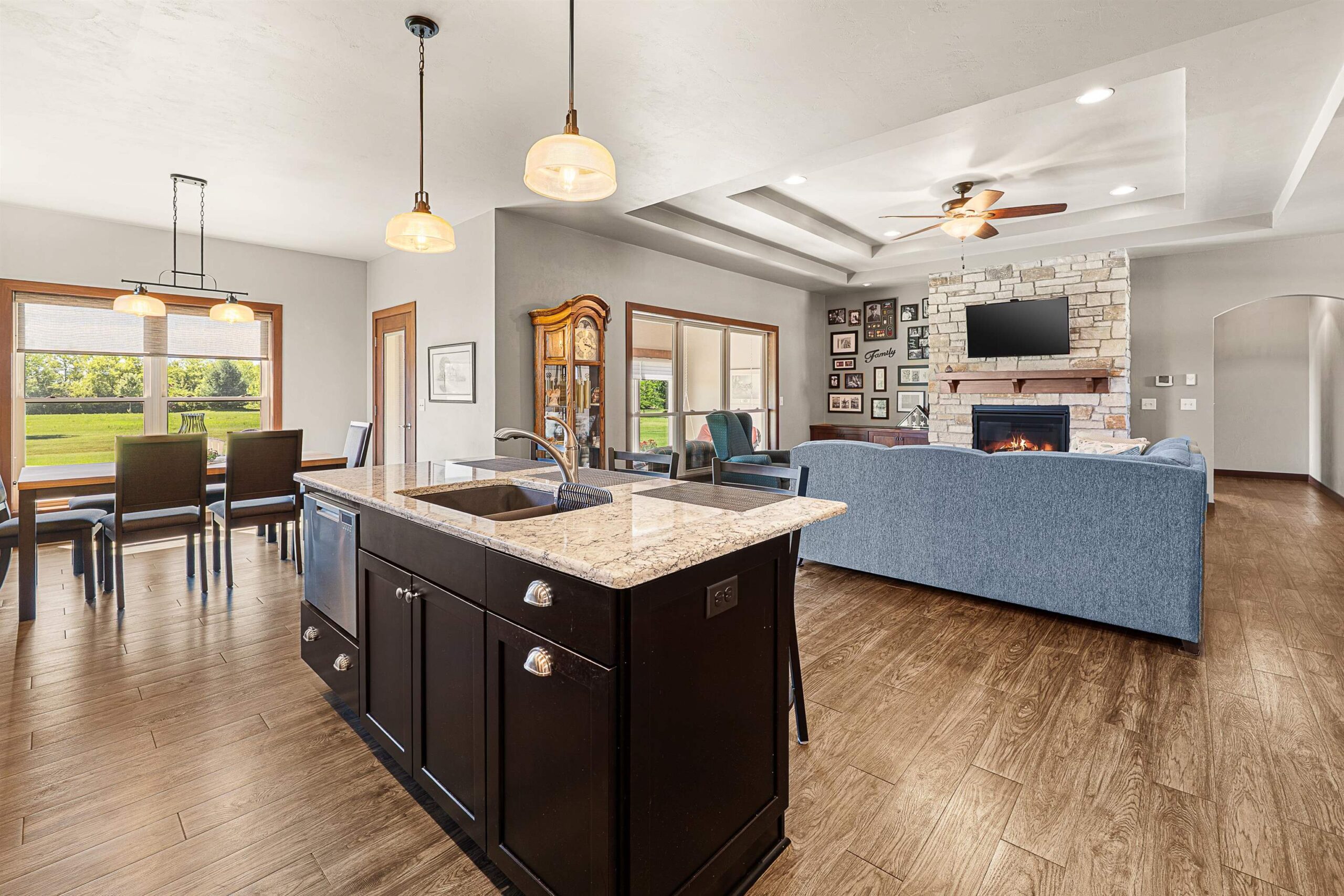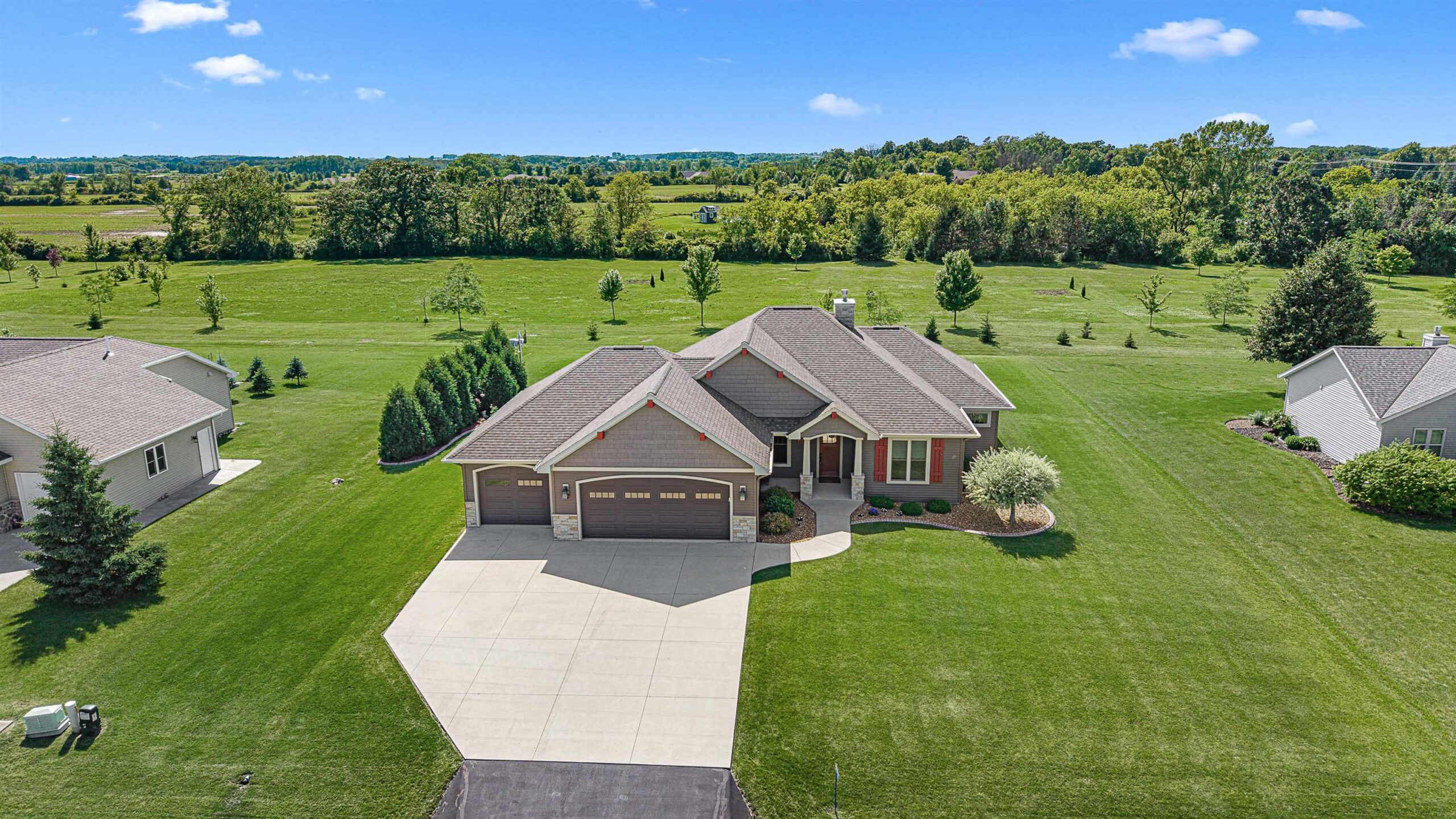 Custom built Signature Home that looks like it’s never been lived in! Beautiful open concept ranch home w/separated foyer leading to great rm and gas fireplace! Warm, contemporary kitchen w/ island, hard surfaced countertops & backsplash. Heated sunroom faces colorful western sunsets! Concrete walkway takes you to the fire pit & nature! Home features 3 bedrooms including lg primary bdrm w/ private bath & customized walk in closet. Spacious finished LL to entertain in plus kitchen area, both w/ built in cabinets. 3rd bdrm could double as a home office or hobby room! Beautifully manicured lot with concrete edging. 3 car garage with extra door for pulling your tractor in and out! Main floor laundry. This is your dream country property! Offers presented 7/13 Buyer to verify all measurements