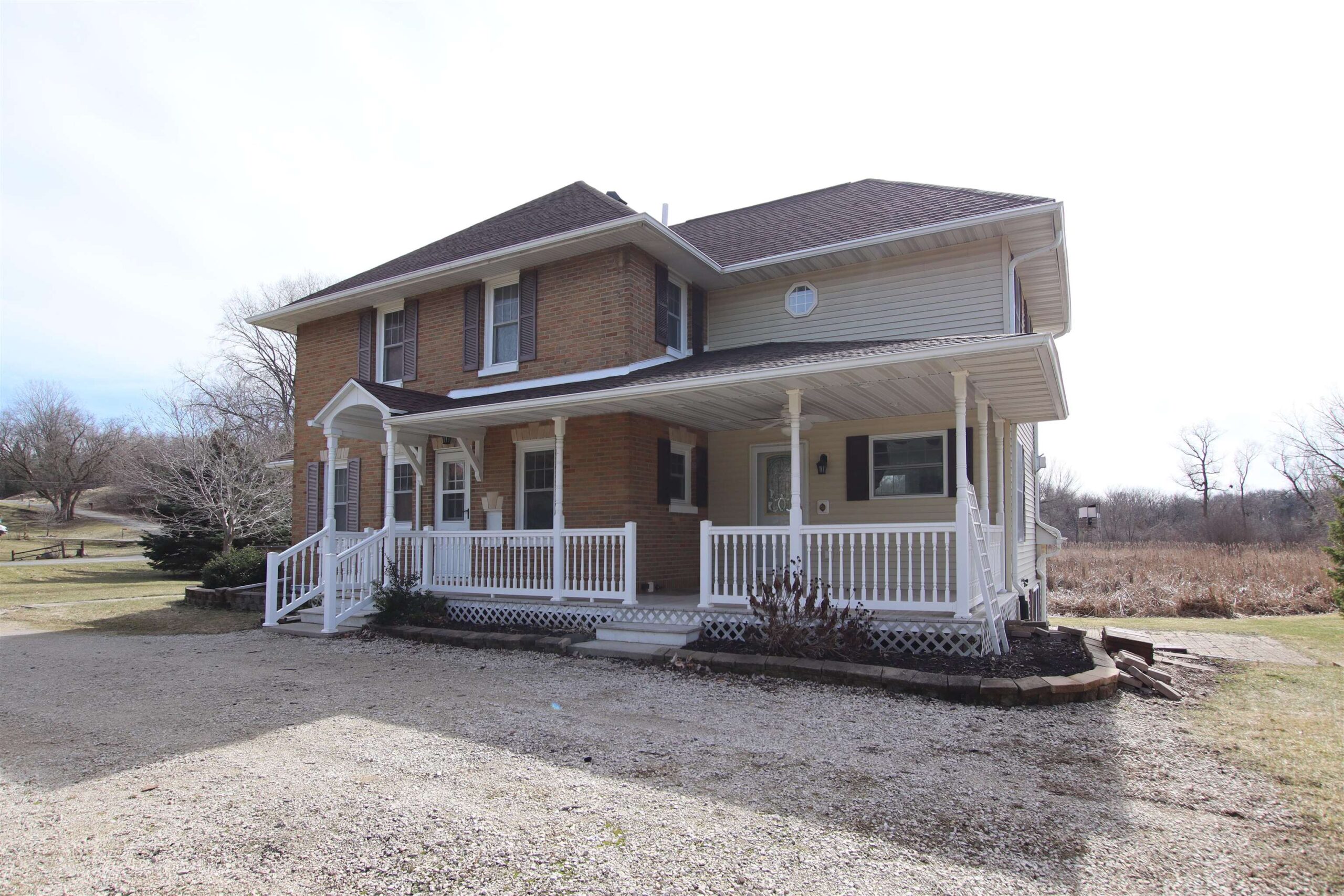 Do you love a country setting & a brick home? This property gives you both & is truly a surprise from the moment you enter. Front door opens to large living room & open staircase. Cook friendly kitchen w/ beautiful wood cabinets & a stove that will become a conversation point. Formal dining leads to large family room w/ gas fireplace. Upstairs features 3 bedrooms: primary has entrance to the upstairs full bath & separate dressing area complete w/ laundry. Lower level has finished rec room w/ new carpet & full bath. Beautiful wrap around porch! You should expect to be charmed as this home is one of a kind. Low town taxes & in Lakeshore school district! Sale also includes Parcel #- T08-15-18-18-14-006-00 If exact square footage is a concern, measurements should be verified by purchaser.