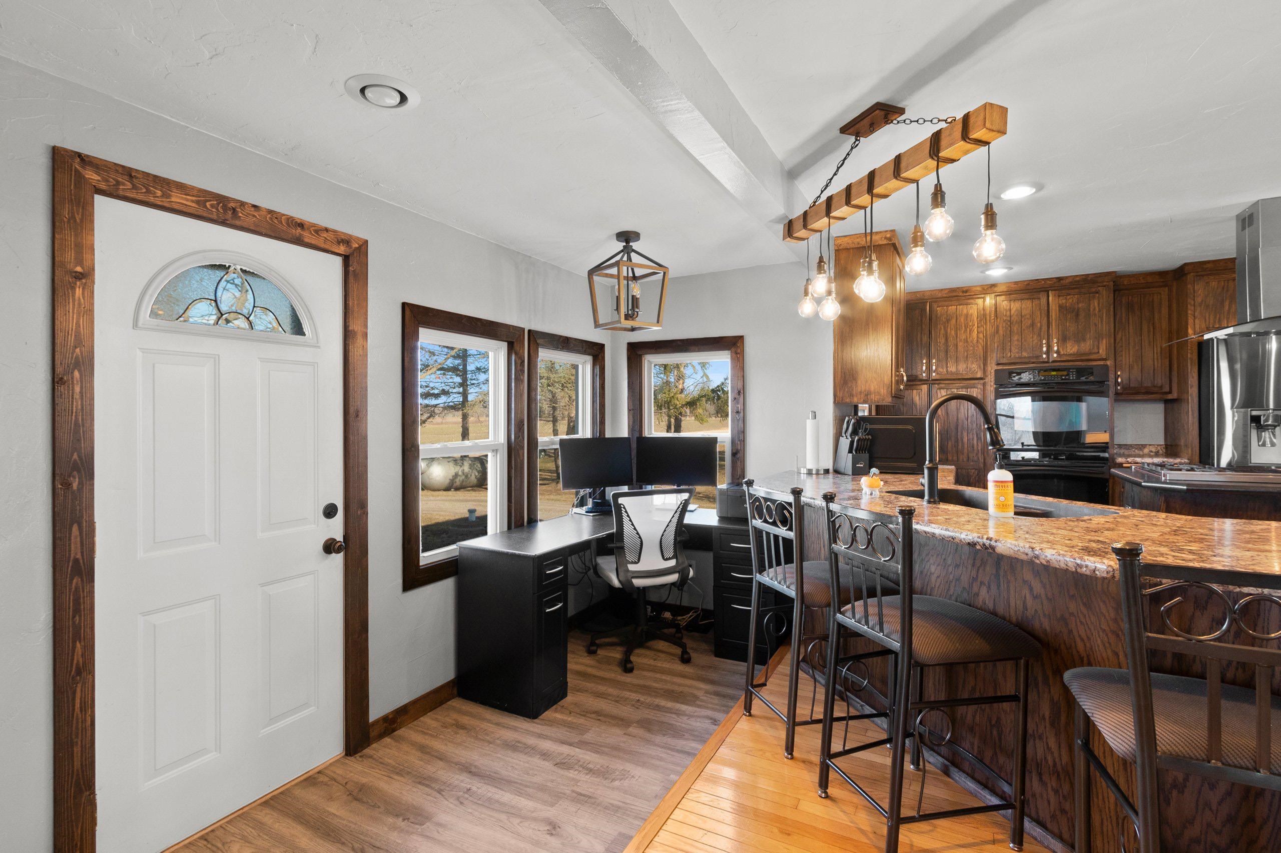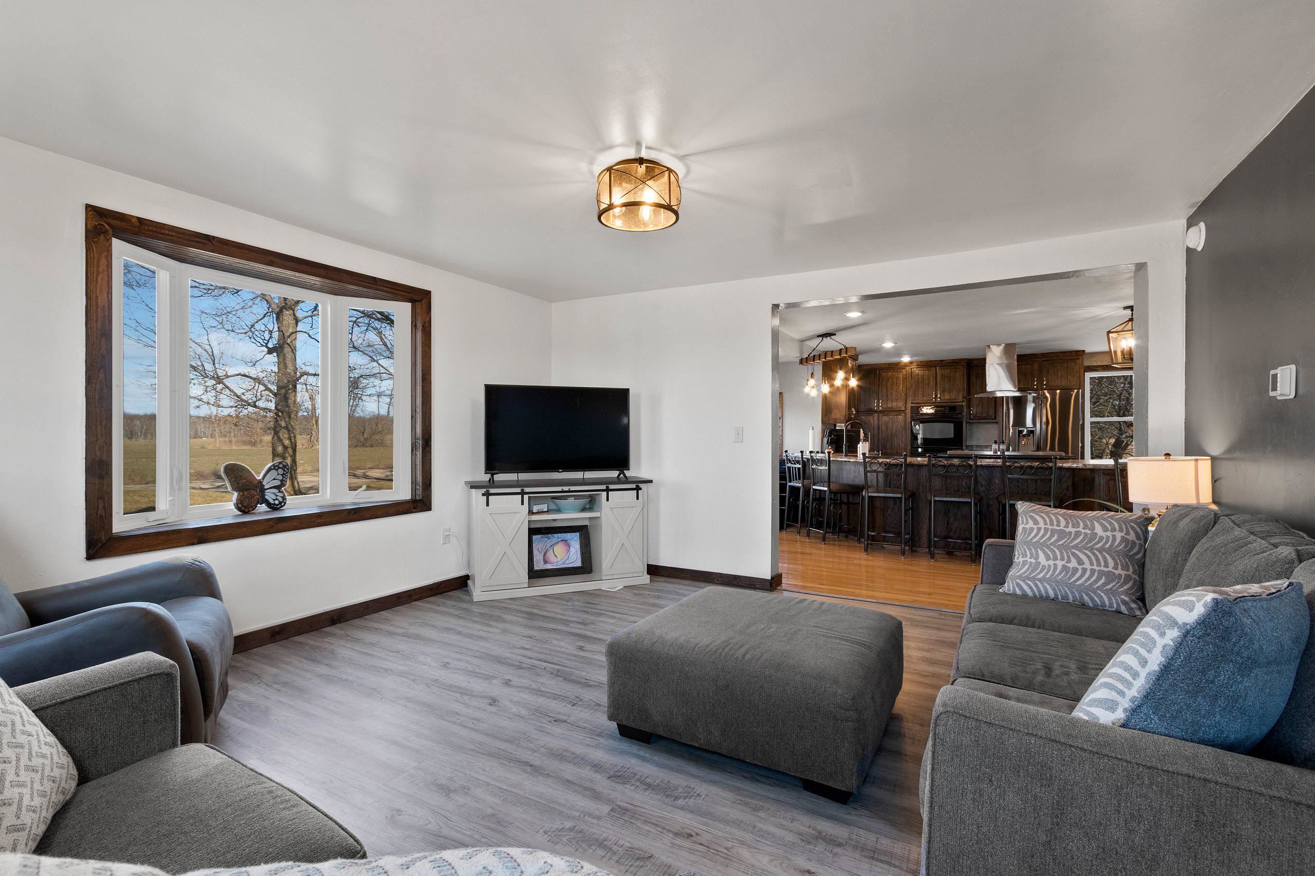 Renovated farmhouse. Timeless character & modern luxury! Nestled in a peaceful country setting, sought after Pulaski Schools. Beautifully updated boasting an oversized ktchn, perfect for the chef, featuring dbl oven & gas range top. Stunning hrdwd flrs throughout & fresh coat of paint, every inch of this home has been thoughtfully upgraded. Spacious living areas include newly designed bathroom, & upstairs completely redone down to the studs, offering a fresh, modern vibe. New 2023 furnace & c/a ensure comfort yr-round, while gorgeous new French door lead to massive, maintenance-free deck—ideal for outdoor entertaining or relaxing. Oversized 2-stall garage for ample storage, & beautifully landscaped yard adds perfect finishing touch. True blend of country charm & contemporary convenience.