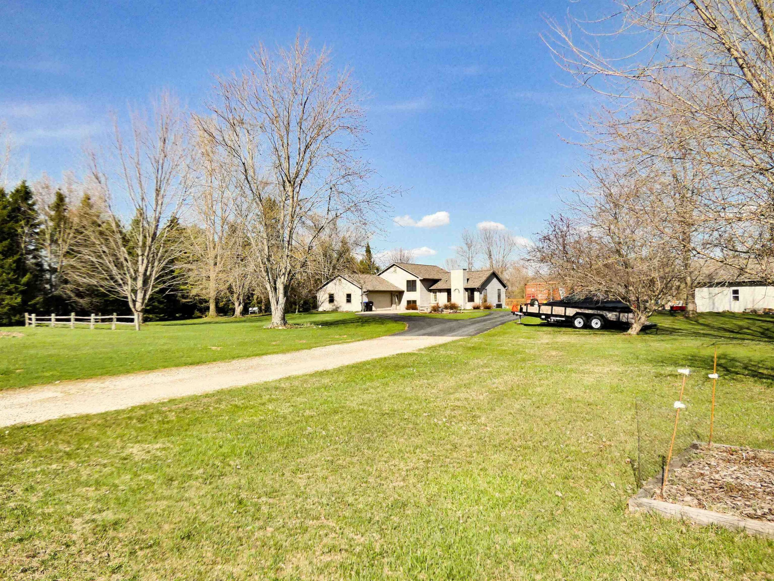 Remarkable country living at its best. 25+ acres w/ Pond to relax. tillable acres, hunting acres, recreation acres. zoned agriculture, residential, and other. fruit trees, grapes, morell mushrooms! 2nd garage. Long driveway from the road makes for perfect get-a-way location. 3 bedroom, 2 bath, finished lower level walk-out family room (ll sq ft per seller). Deck, Patio, Pathways & Trails abound. Quad-level home. well, septic, LP gas, electric panel in 2nd garage.