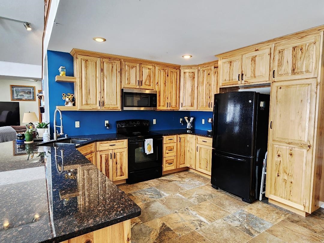 Stove, refrigerator, washer, dryer, dishwasher, window treatments, water softener, iron curtain, microwave. GDO & control.