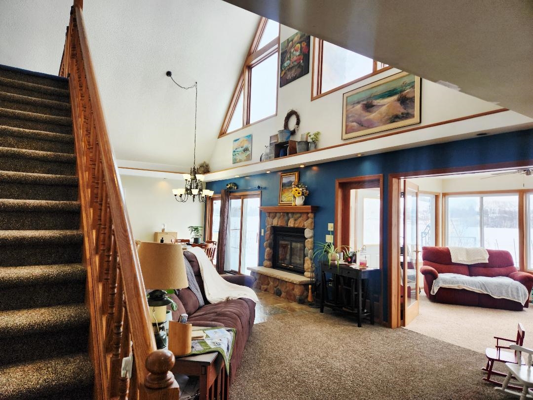 WOW! You feel like you're the only one on Beaver Dam Lake when you look out your windows! Tucked away on a cul de sac is this 2500 sq ft home with 3 bedrooms, large loft with vaulted ceiling & half bath, Master Suite with walk in closet and private bath, wood frplc in the open living/dining/kitchen area, 4 season room overlooking the lake, 1st floor laundry, 2nd bath that has been completely updated, 10 year new metal roof, trek deck, fenced yard, machine shed plus a shed with porch next to the water that is partially finished. Did we mention the jacuzzi tub in master bdrm & the partially finished bsmt? Get in here today!