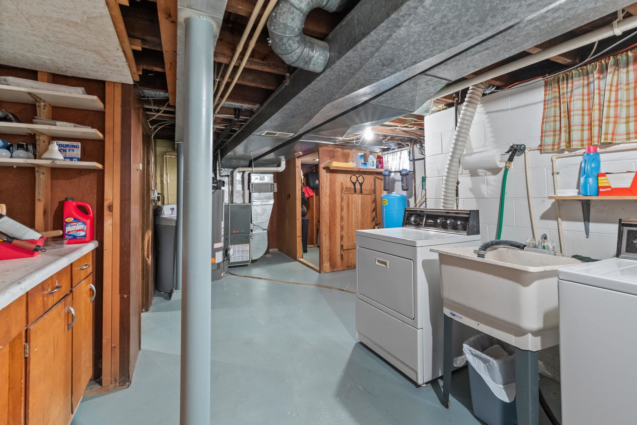 washer, dryer, oven/range, refrigerator, dishwasher, microwave, upright freezer in lower level, garage refrigerator, barstools in kitchen, shed
