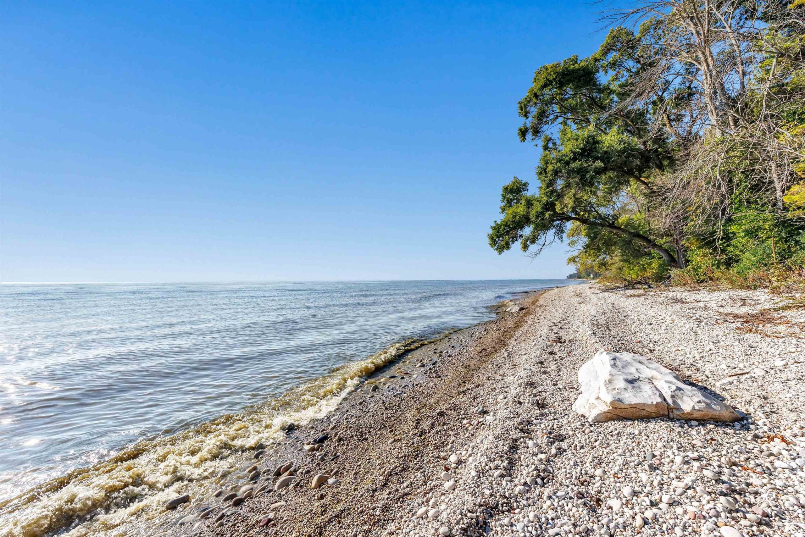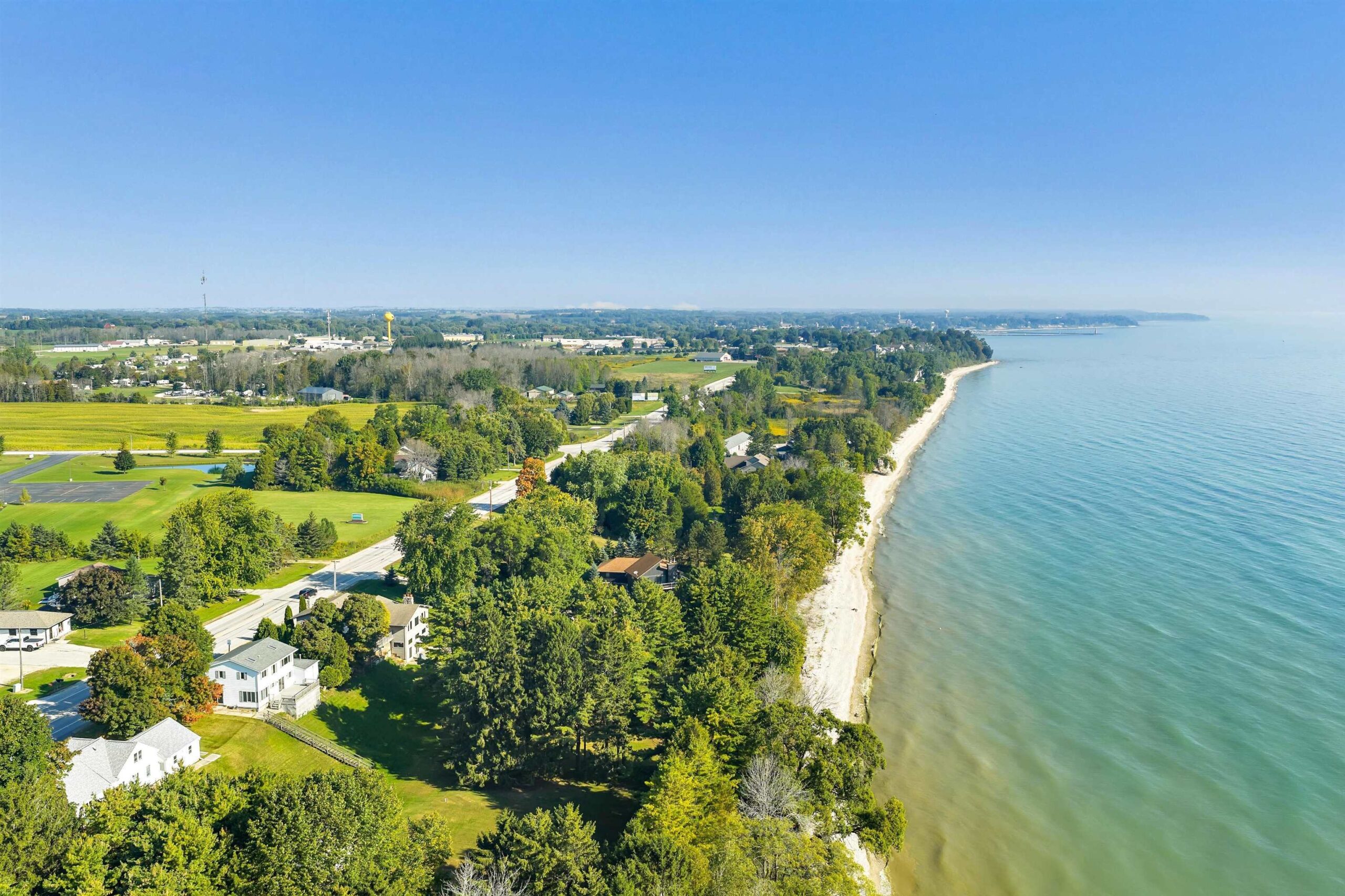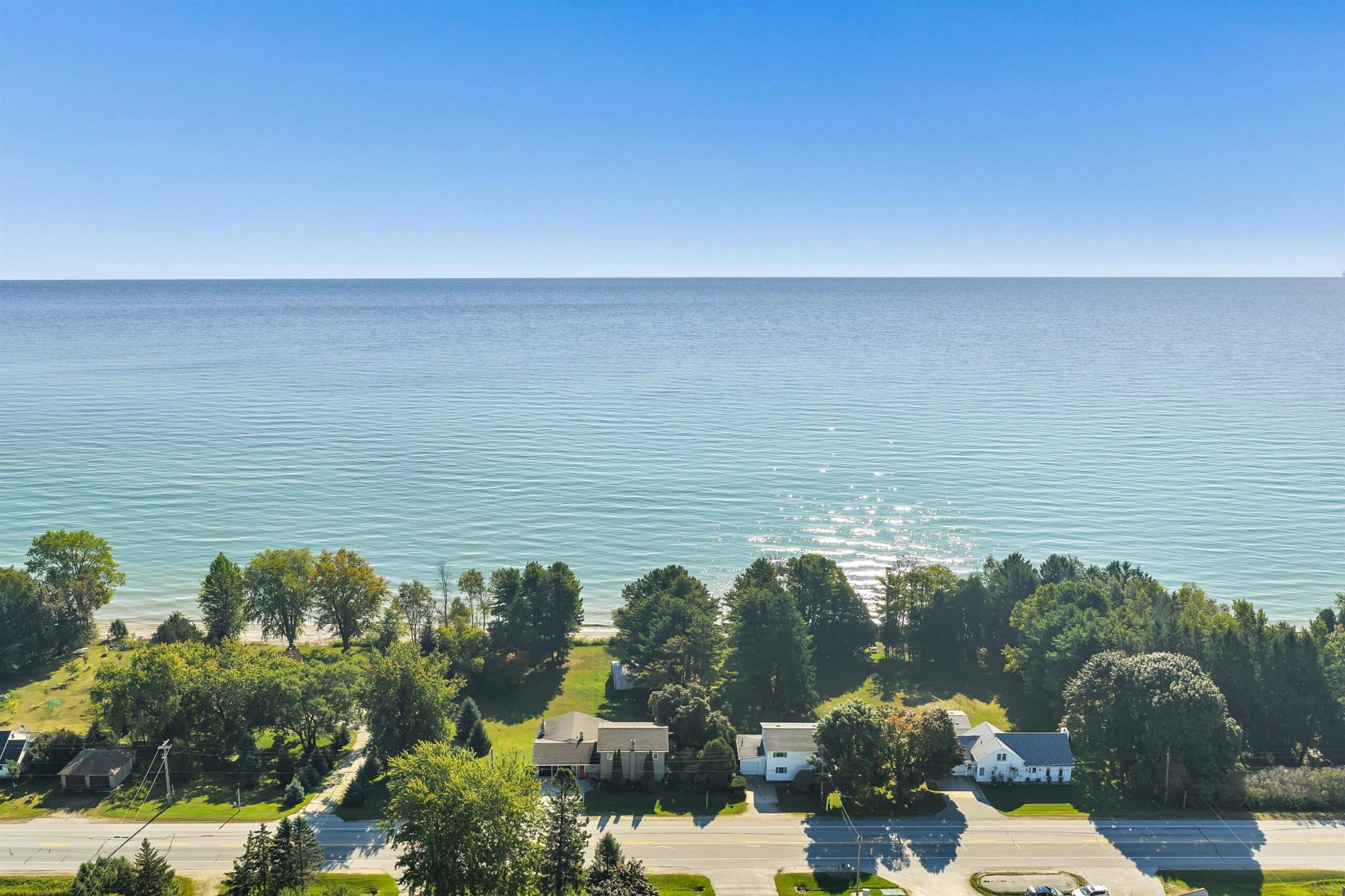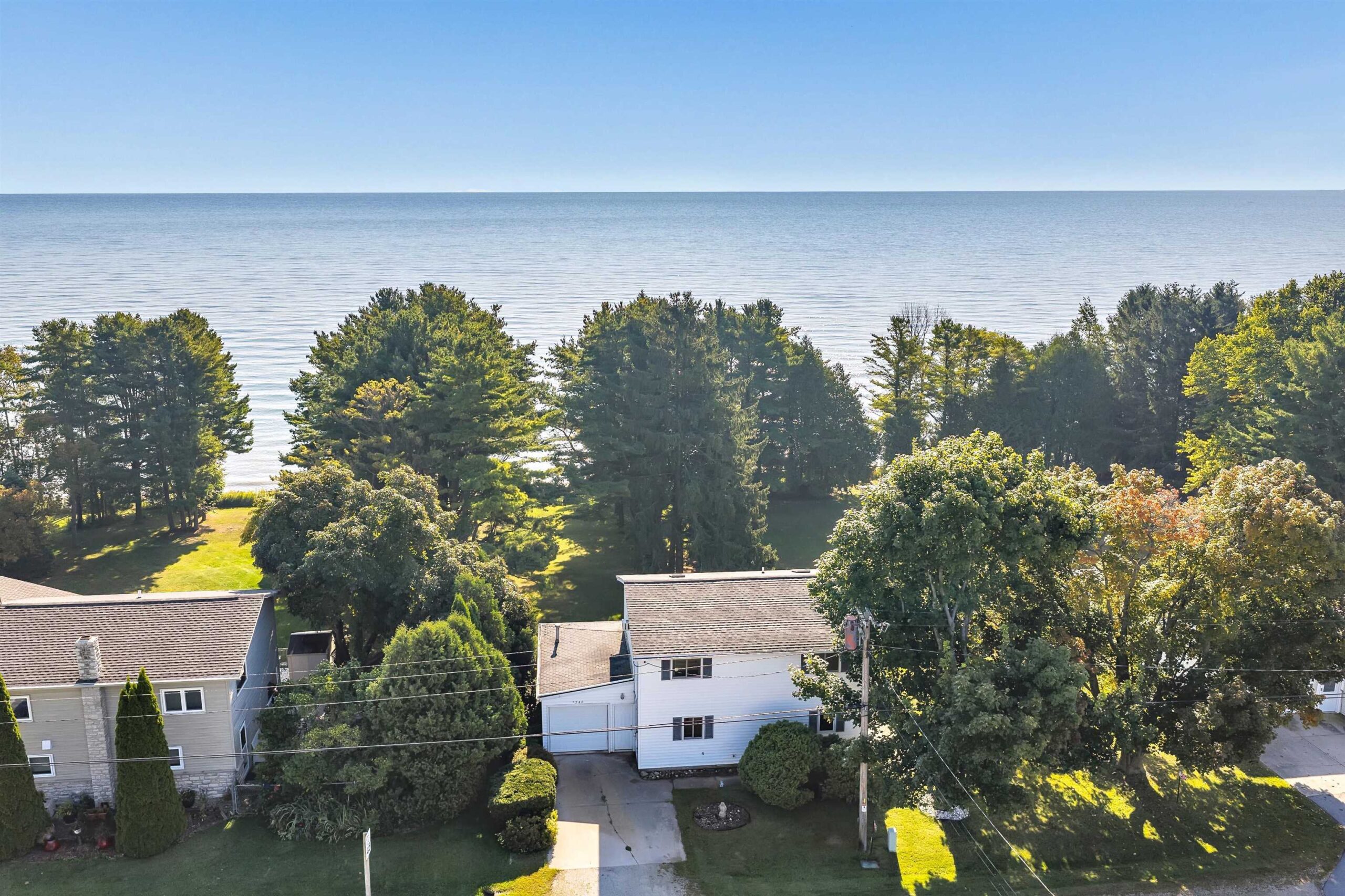 A rare find! Stunning slice of majestic Lake Michigan frontage just a mile from charming Algoma, home to Wisconsin's premier Lake Michigan fishing port! Cozy 2 bedroom/2 bath features lake views from each room! The massive primary bedroom w/double closets & ample windows could easily be split into 2 bedrooms to increase sleeping space. Kit/dining has patio doors leading to a maintenance-free deck ideal for grilling your freshly caught salmon, entertaining family & friends, or sipping your morning coffee while watching the famous Lake Michigan sunrises. Beach frontage includes a direct sight line to the iconic Algoma Lighthouse while hanging out at your private beachfront bonfire!! Fun sledding hill for wintertime fun as well! Saturday Open House!