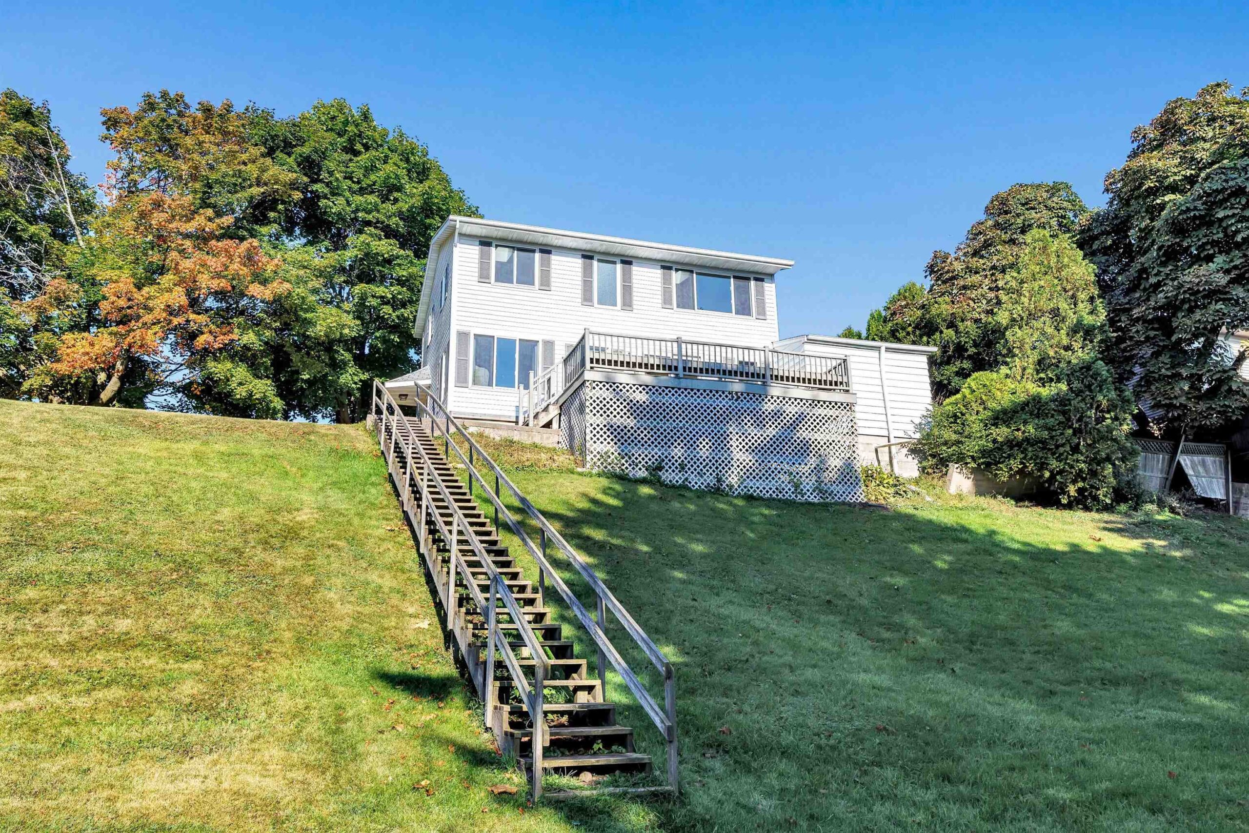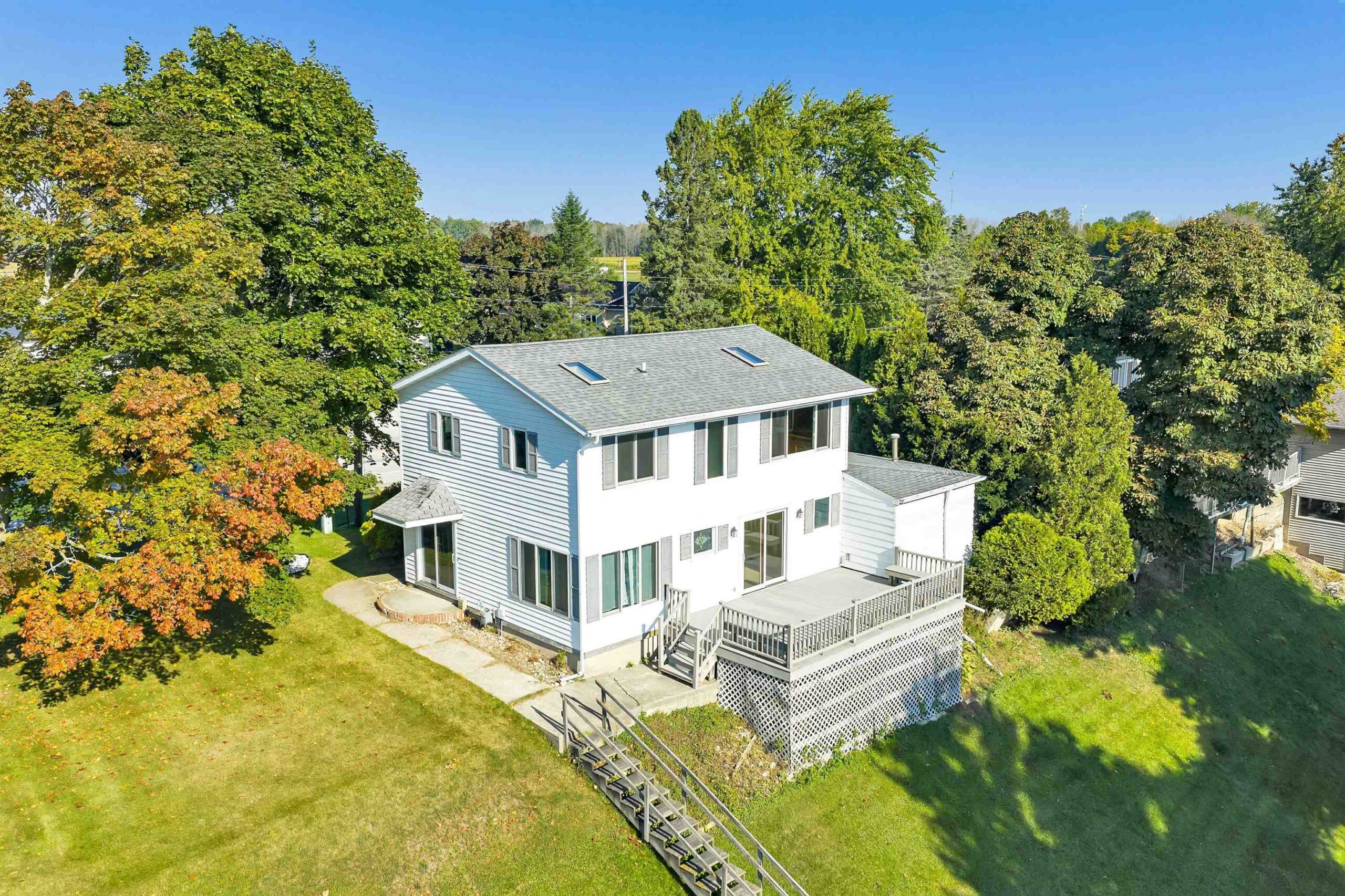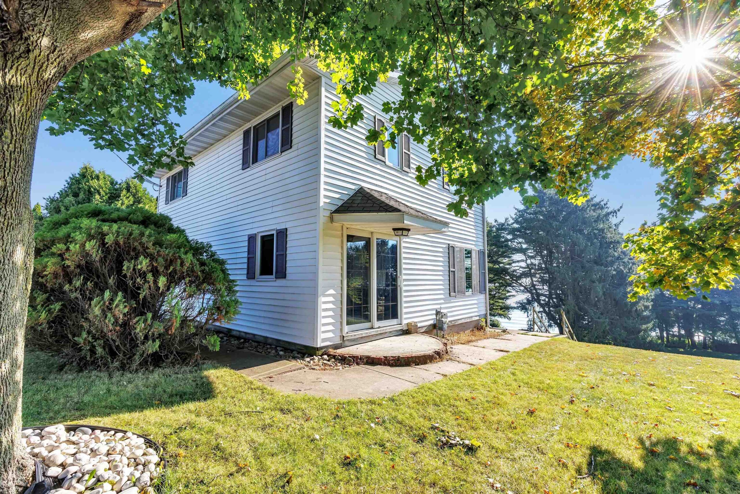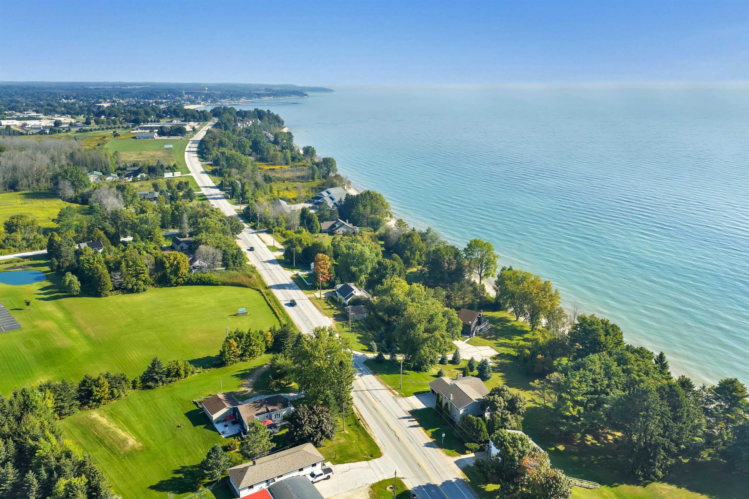 A rare find! Stunning slice of majestic Lake Michigan frontage just a mile from charming Algoma, home to Wisconsin's premier Lake Michigan fishing port! Cozy 2 bedroom/2 bath features lake views from each room! The massive primary bedroom w/double closets & ample windows could easily be split into 2 bedrooms to increase sleeping space. Kit/dining has patio doors leading to a maintenance-free deck ideal for grilling your freshly caught salmon, entertaining family & friends, or sipping your morning coffee while watching the famous Lake Michigan sunrises. Beach frontage includes a direct sight line to the iconic Algoma Lighthouse while hanging out at your private beachfront bonfire!! Fun sledding hill for wintertime fun as well! Saturday Open House!