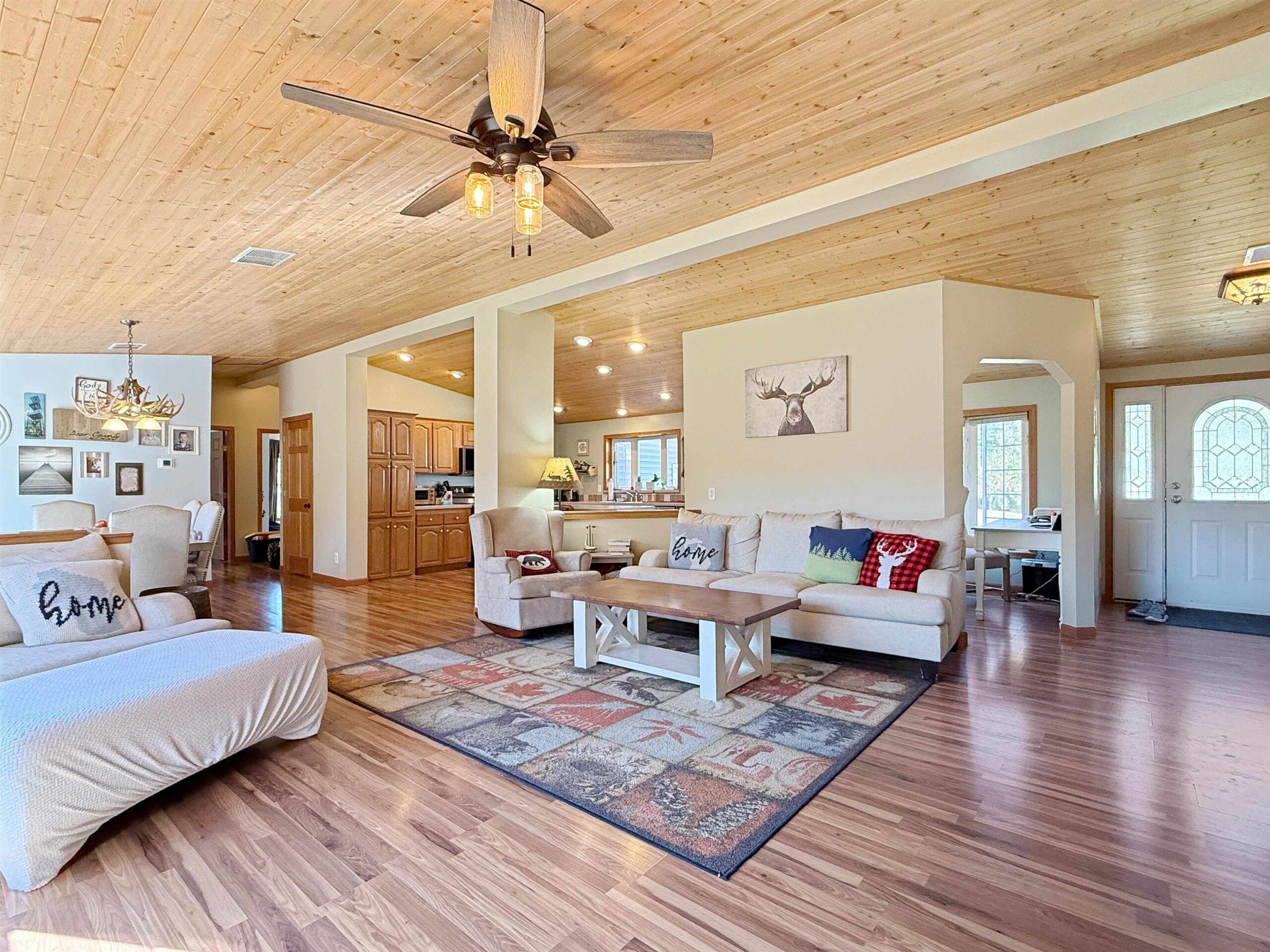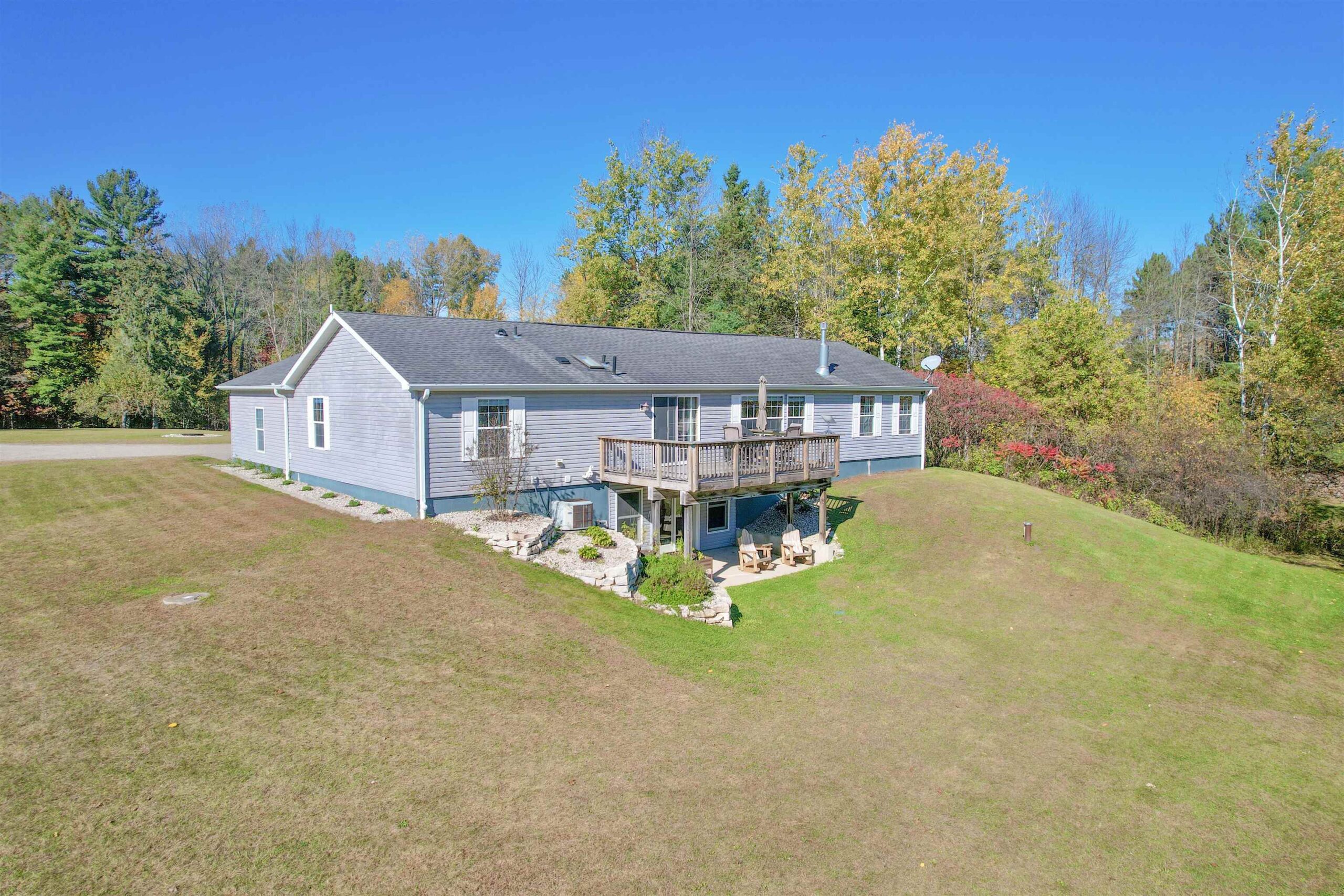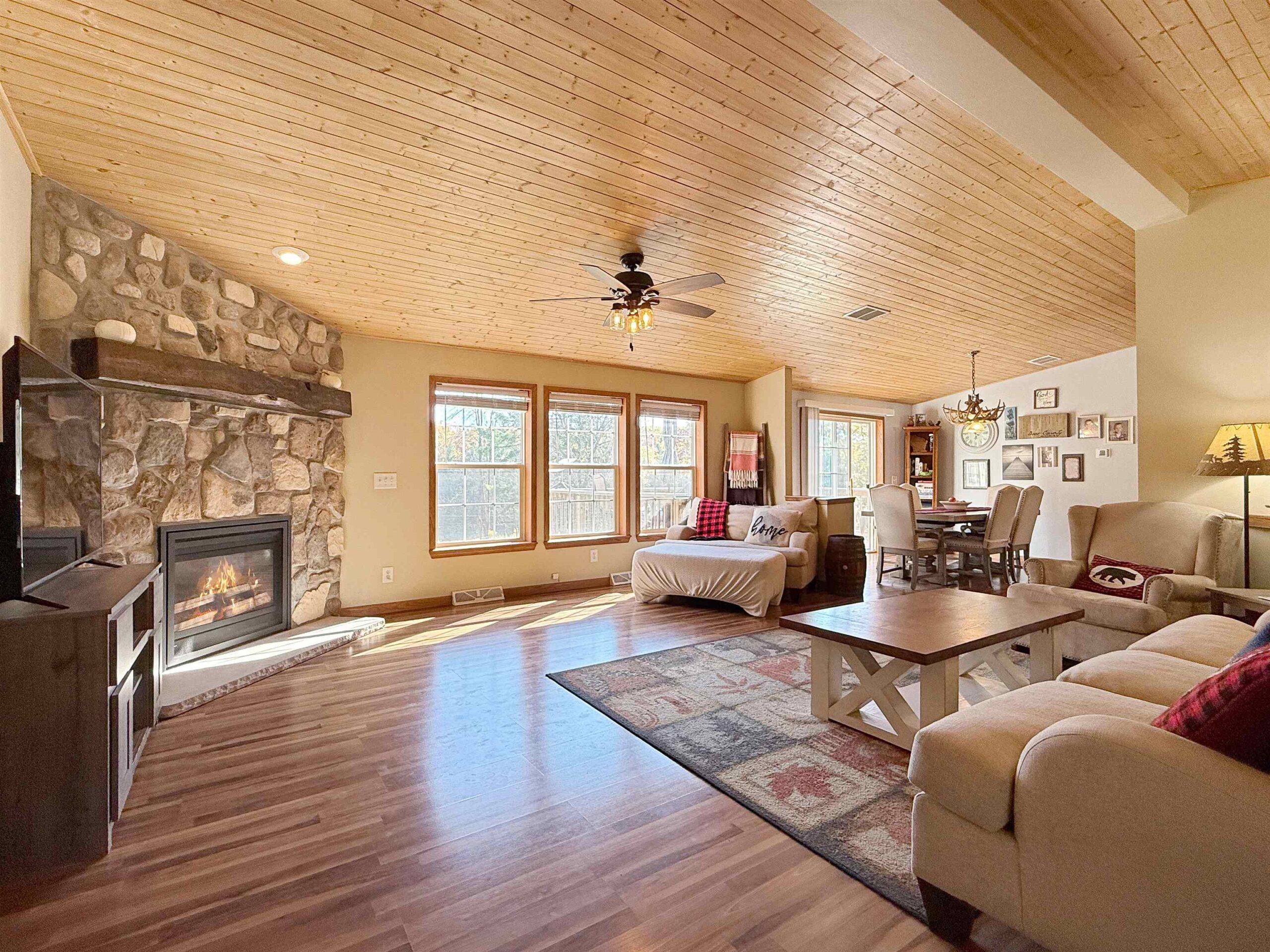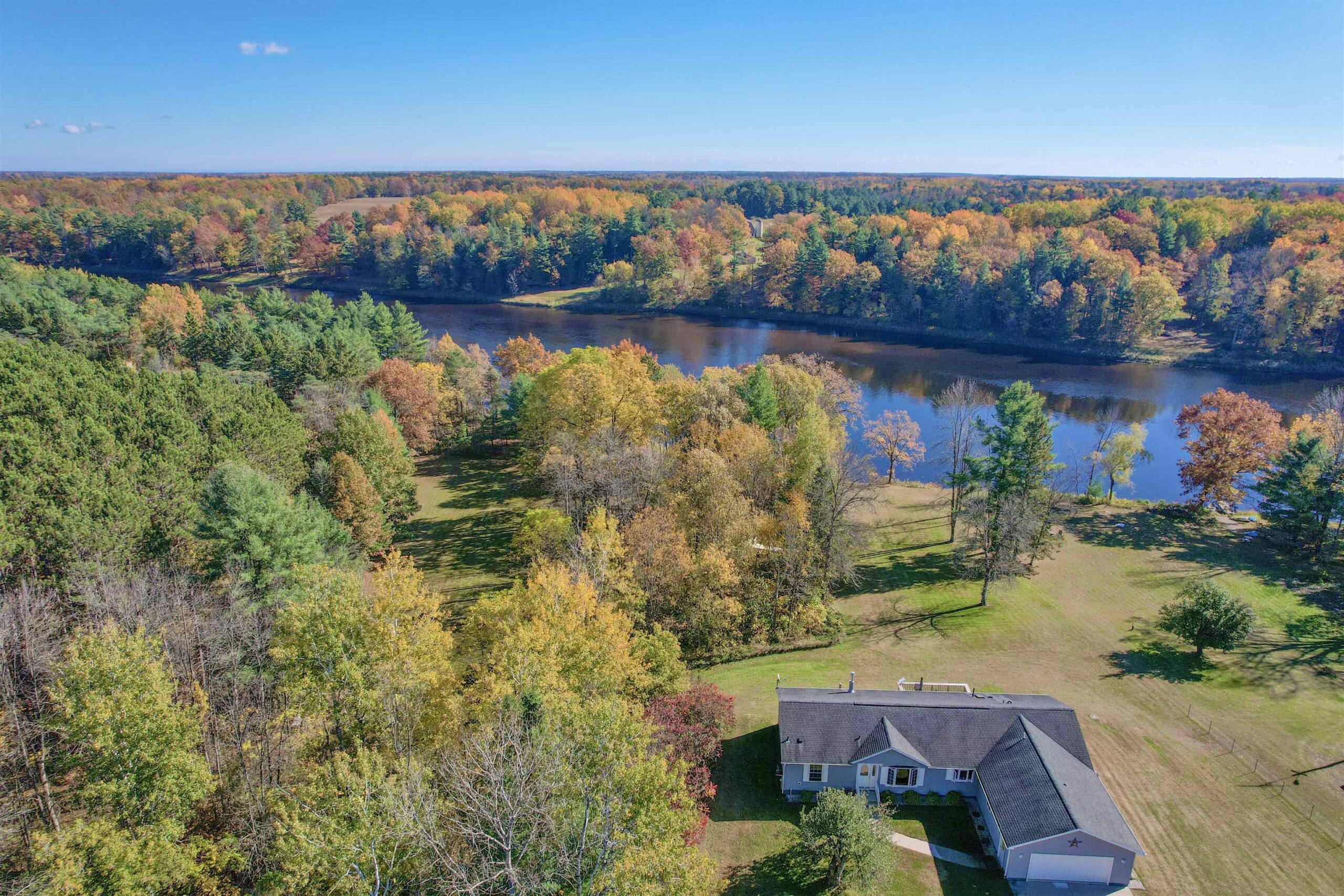 Looking for your forever home? This 3 bed, 3 bath, home situated on 3.45 acres w/363’ of beautiful Menominee River Frontage. Split design layout. Primary bedroom offers an ensuite with an impressive walk-in tiled shower, large walk-in closet area that will be an envy to all. Open concept living w/scenic river views, field stone gas fireplace, cathedral tongue & groove ceilings, patio doors to deck, spacious kitchen with ample cabinets and an island. Finished basement w/North Woods industrial style design, offers large family room w/newer flooring and French doors to a walk-out patio area, plus 2 additional finished bonus rooms and ¾ bath. Plenty of basement space for storage. Newer furnace and water heater. 2-car attached garage and 24x35 detached garage . This is a must see home!