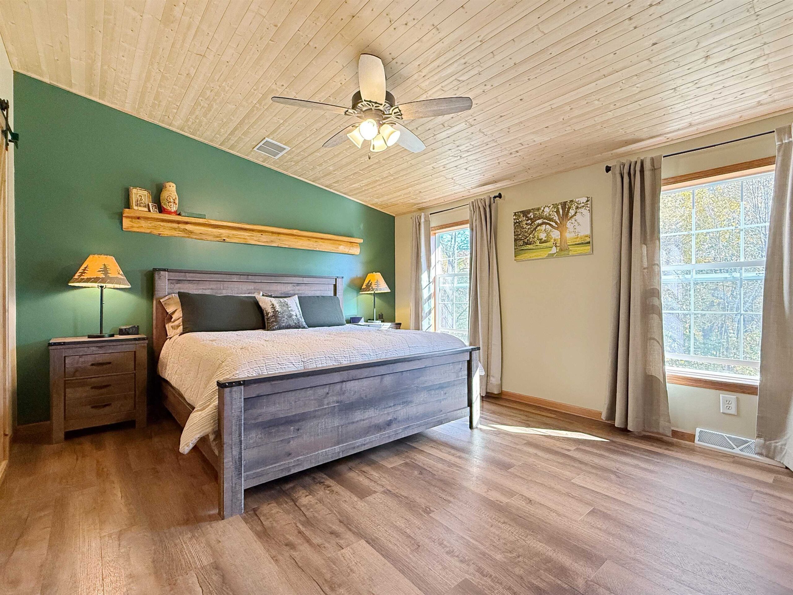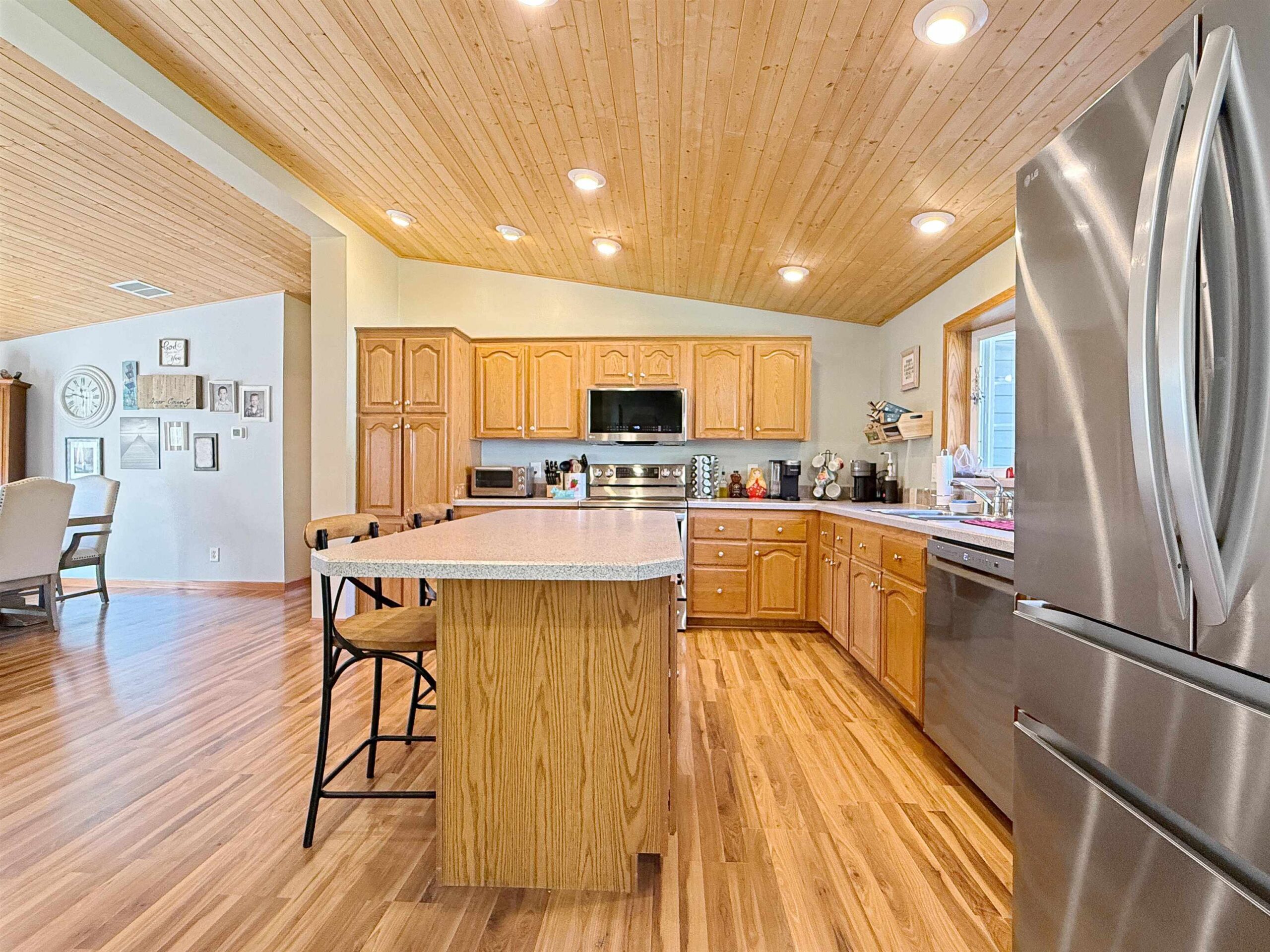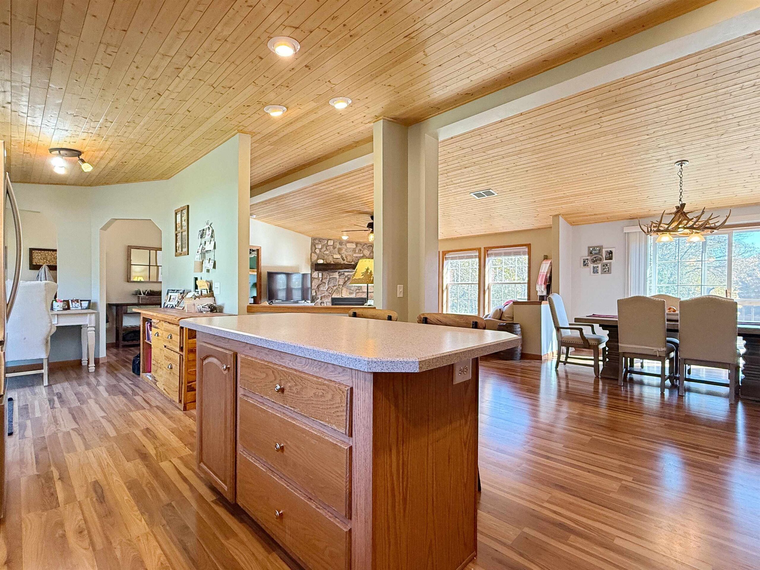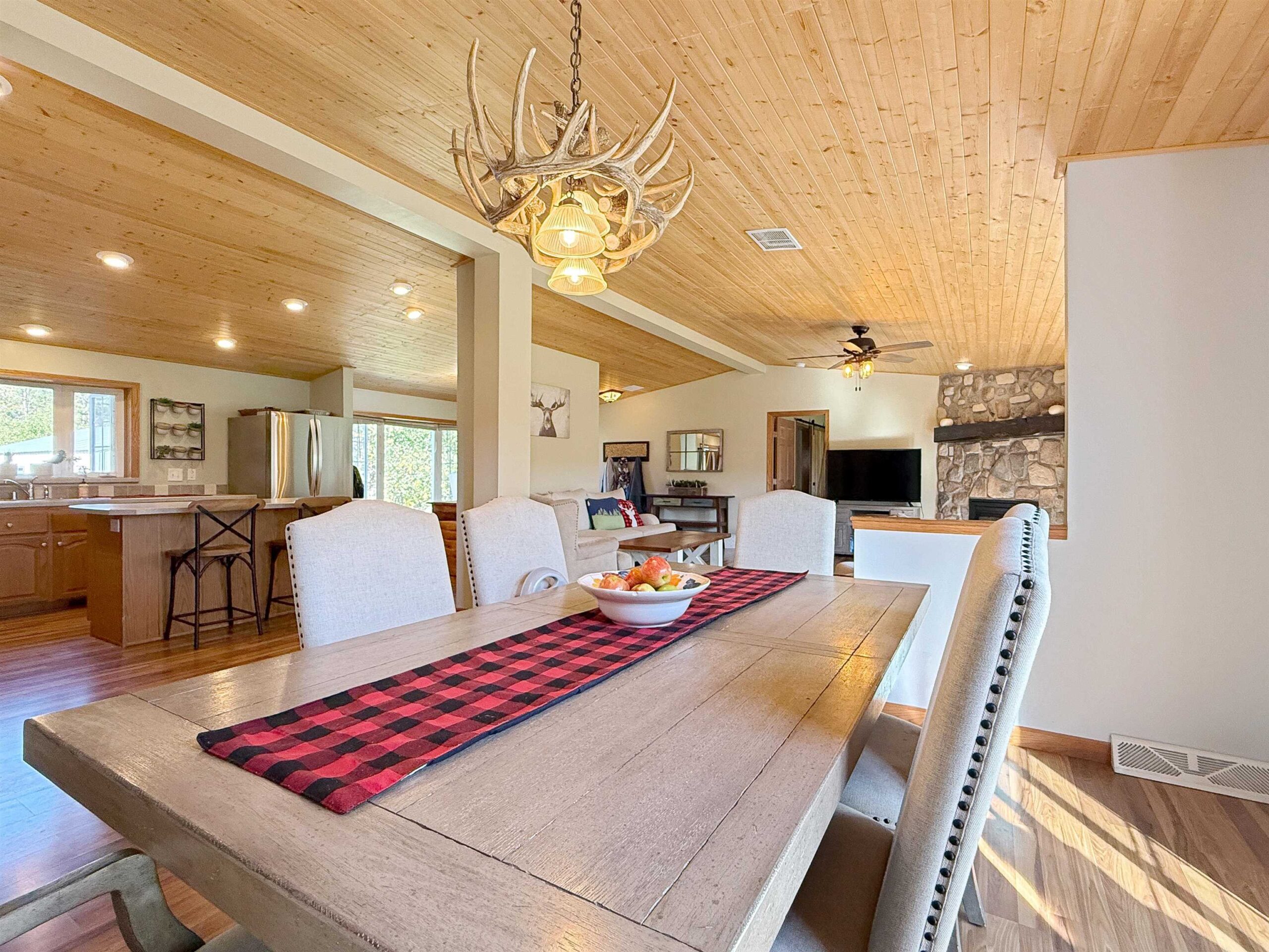 Looking for your forever home? This 3 bed, 3 bath, home situated on 3.45 acres w/363’ of beautiful Menominee River Frontage. Split design layout. Primary bedroom offers an ensuite with an impressive walk-in tiled shower, large walk-in closet area that will be an envy to all. Open concept living w/scenic river views, field stone gas fireplace, cathedral tongue & groove ceilings, patio doors to deck, spacious kitchen with ample cabinets and an island. Finished basement w/North Woods industrial style design, offers large family room w/newer flooring and French doors to a walk-out patio area, plus 2 additional finished bonus rooms and ¾ bath. Plenty of basement space for storage. Newer furnace and water heater. 2-car attached garage and 24x35 detached garage . This is a must see home!