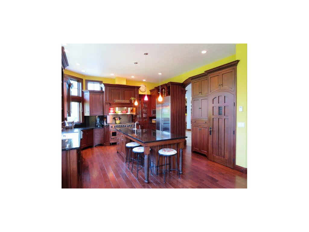 Stunning Jesse Burg built 3 story walk out filled with artistry on 4+ acres! Large foyer w/sweeping staircase. Main floor w/great room, living room, formal dining and office. Chef`s kitchen w/6 burner Viking range and pantry. Combination of cherry plank floors, travertine tile, carpet. 5 fireplaces. LL w/pub area, lap pool, sauna, wine cellar and storage. Stone patio areas with full landscaping!