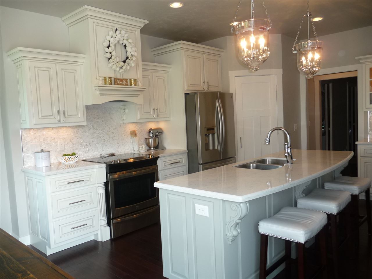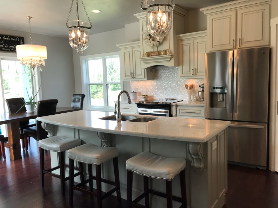 Country Sunsets! Shimmering skies provide evening entertainment on the covered patio in this upscale, craftsman-style, ranch that offers over 3000 sq. ft on two levels with 4-5 bedrooms, 3.5 baths and an oversized 4 car garage! The trendy interior is filled with upscale features of 3 panel doors, painted woodwork, hardwood and tile flooring, quartz countertops and exquisite cabinetry! The newly finished LL offers a family room, pub area, 2 bedrooms, a full bath and a theatre room! The amazing yard is a gardener’s dream come true!