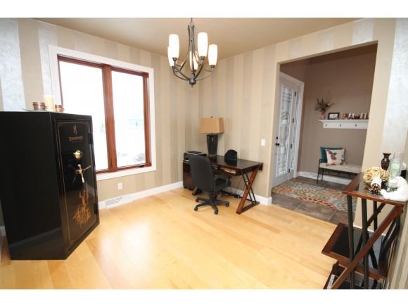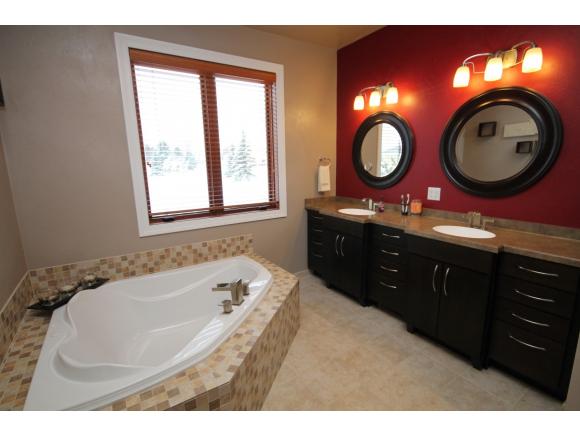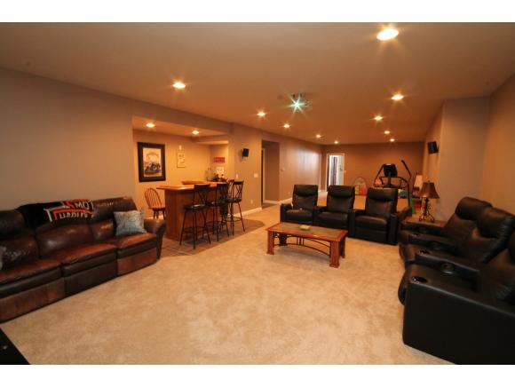 Impressive! Custom built 4 bedroom, 3.5 bath ranch home featuring over 3500 sq ft 9 & 11 ft. ceilings, custom kitchen with granite countertops, Great Room with fireplace, master suite with whirlpool tub, extra large closets throughout, finished LL with In-floor heat, theater room, wet bar, bedroom and playroom, heated 28x38 garage, stucco siding, all on a landscaped 1 acre lot! sq ft per seller.