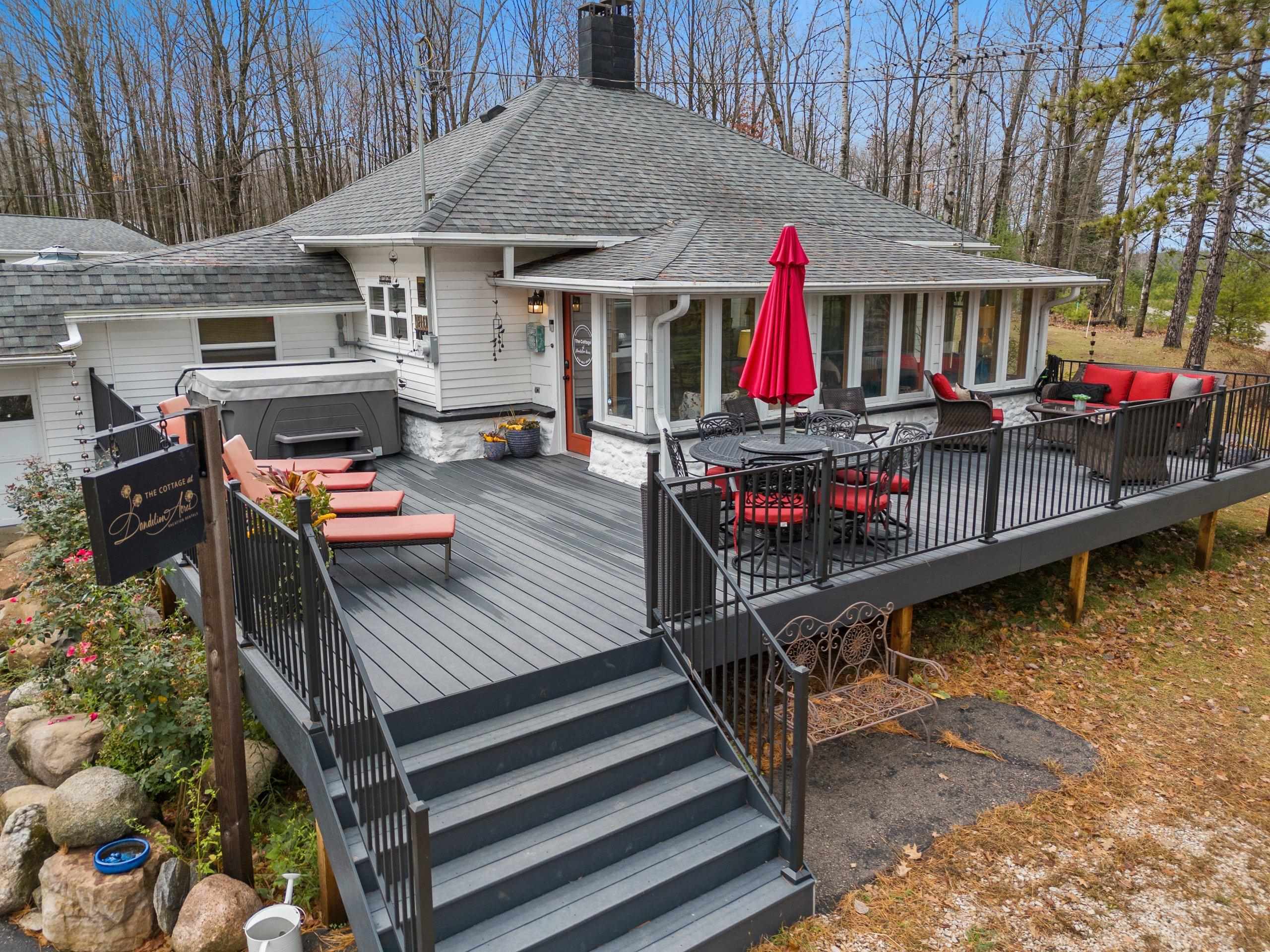 Dandelion Acres features 2 fully renovated, turnkey-furnished homes on just over 1 acre near Lake Noquebay. Currently operating as established short-term rentals w/bookings secured into 2026, this property offers flexibility as an income-producing investment, personal up-north retreat, or both. The Cottage (N7853) and The Lodge (N7843) each include private hot tubs and thoughtful updates throughout. Enjoy easy lake access directly across the road, offering lake living without waterfront pricing. Access to a private boat launch, two boat slips, & kayak racks is available for the 2026 season. The existing booking website is transferable. Includes parcels 016-0100.000 & 016-01001.000. Rental permits are not transferable and new owner must reapply. 2025 profit information available with NDA