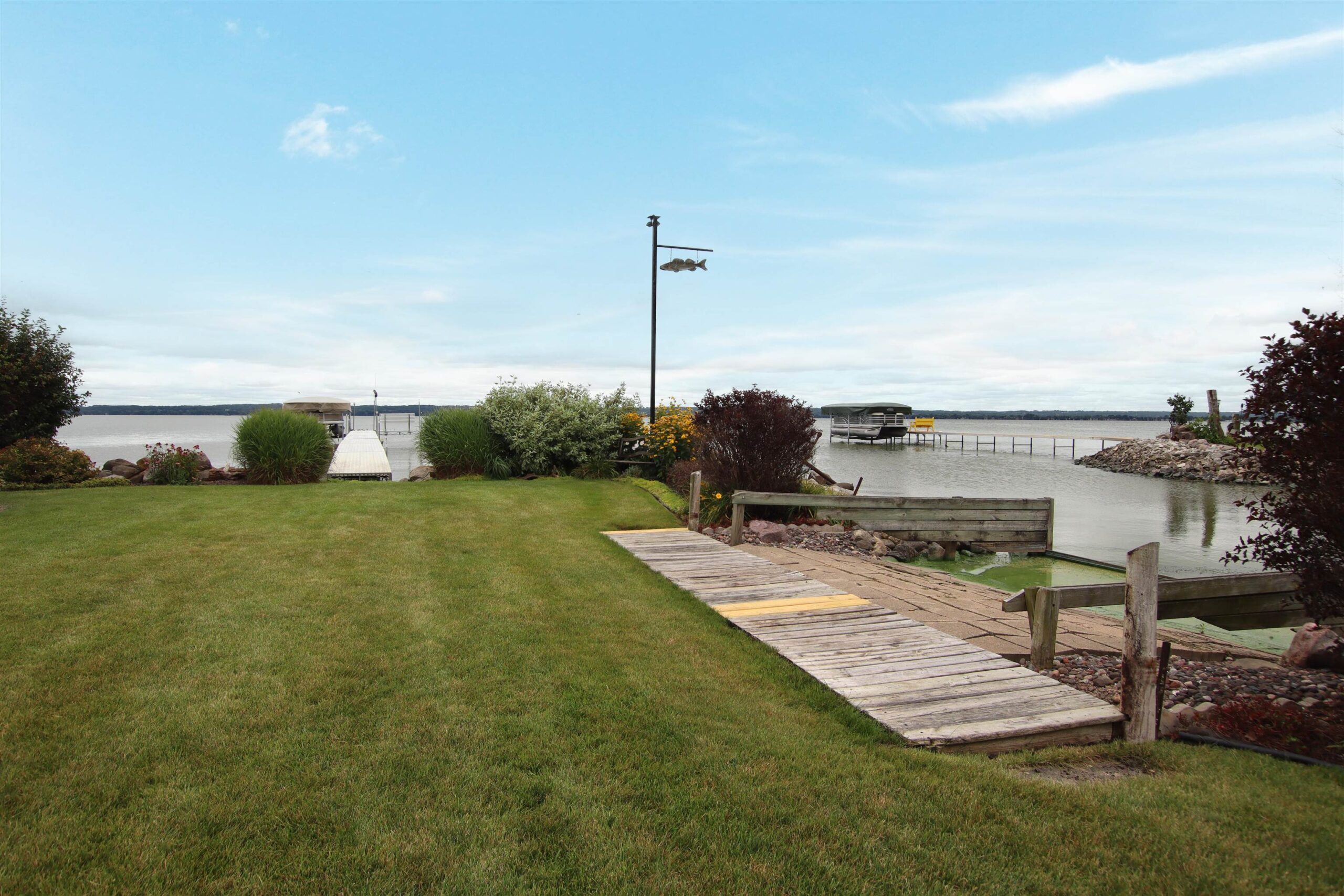 Lake Winnebago Home with 120 feet of Lake Frontage! This Meticulously Maintained Ranch Home with all the inclusions, amenities & style makes saying YES TO THE LAKE HOUSE the easiest & the smartest decision you'll make for years to come. 3 bedrooms. Lakeview primary en-suite & 2 spacious others. Many updates throughout. 2 full baths on main level. Beautiful & comfortable floorplan, main floor living room with fireplace, pretty kitchen, main floor laundry & attached 3 car garage. This home has a full basement offering a wonderful rec room flowing into a sizeable family room with fireplace, full bathroom & plenty of organized storage areas. Outdoor fun includes Shore Station, aluminum pier, ATV lake ramp, lagoon & professional landscaping. Consider a rare income opportunity during EAA!