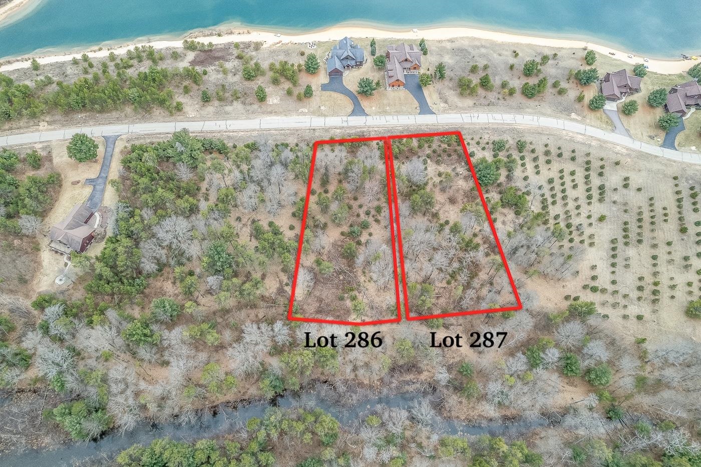 Lot 287 is a wooded lot on 0.64 acres in the Copper Point development, ready to build your dream cabin or permanent residence! Tall trees and a great location close to Castle Rock Lake and just down the street from the Clubhouse with indoor pool, workout facility, basketball court, tennis courts, pickleball courts, and new kids' playground. Lot 286 next door is also for sale.