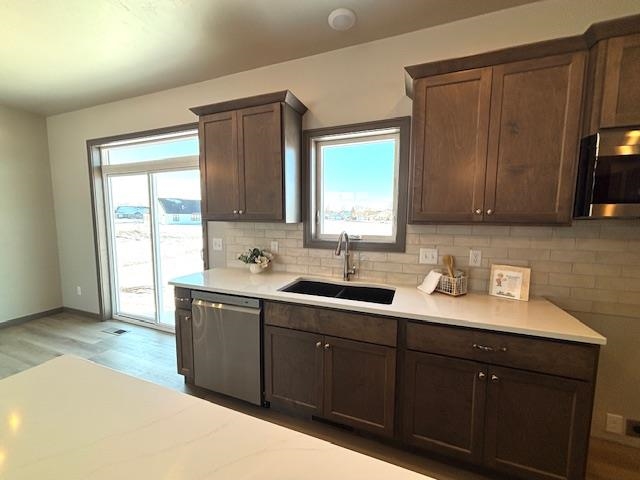 Perfection Personified in this VANS CONSTRUCTION! Close to High Cliff State Park & Lake Winnebago. Fresh, clean and inviting - this 3 BR 2 BATH gem features Quartz countertops & tile backsplash in sensational kitchen. Large living room w/ high ceiling and gas fireplace. Open rail. Impressive primary suite has nice bathroom w/ double sinks. Quartz counters in all bathrooms, too! Central air and soft-close drawers are nice added-touches. Garage floor drain adorns very nice-sized 3-car garage.