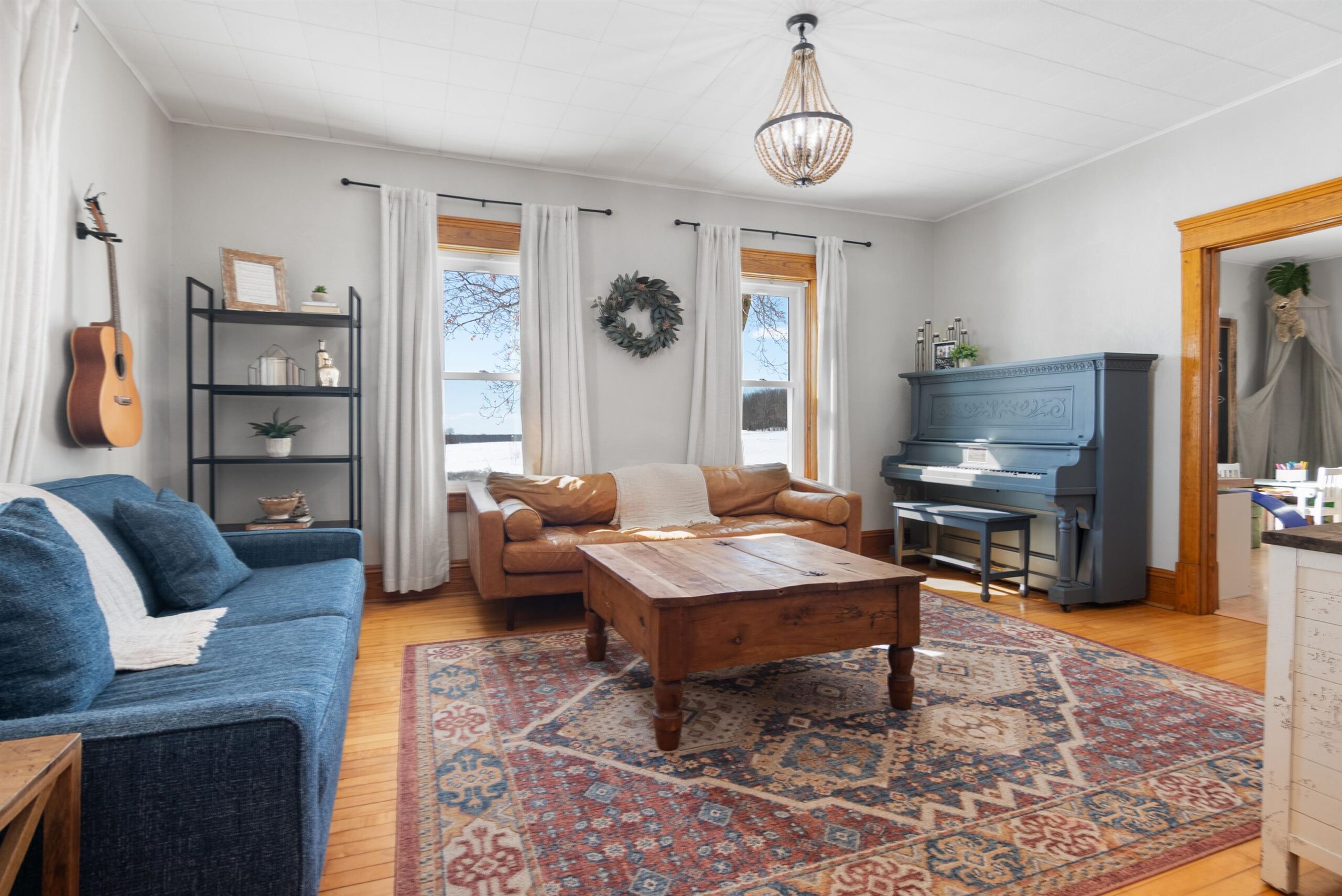 Welcome home to this charming, olde-world farmhouse featuring original wood floors, trim and built-ins! Entertain in the inviting formal dining room & enjoy a bright kitchen with concrete counters & tile backsplash. Main lvl features 9' ceilings, 1st fl. laundry, bedroom/flex space. 2nd lvl includes spacious primary bedrm & full bath w/ tiled shower/soaker tub. Sip your morning coffee in 1 of 2 screened porches before enjoying a stroll around the lovingly landscaped 1.58-acre grounds & bountiful orchard! Enjoy apple, mulberry, peach, cherry, pear trees & raspberries, grapes & asparagus. Adnl features: wraparound porch, mudroom w/ ample storage, 2-stall att. grg, oversized det. 2-stall grg/shop. Per SLR: septic ('21), windows/furnace ('15), AC ('18). Conveniently 25 min from GB or Appleton!