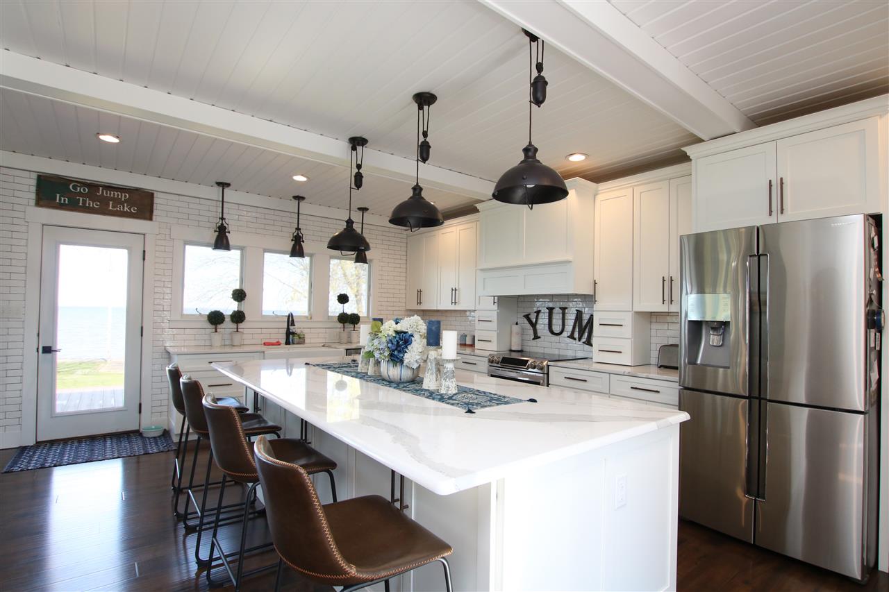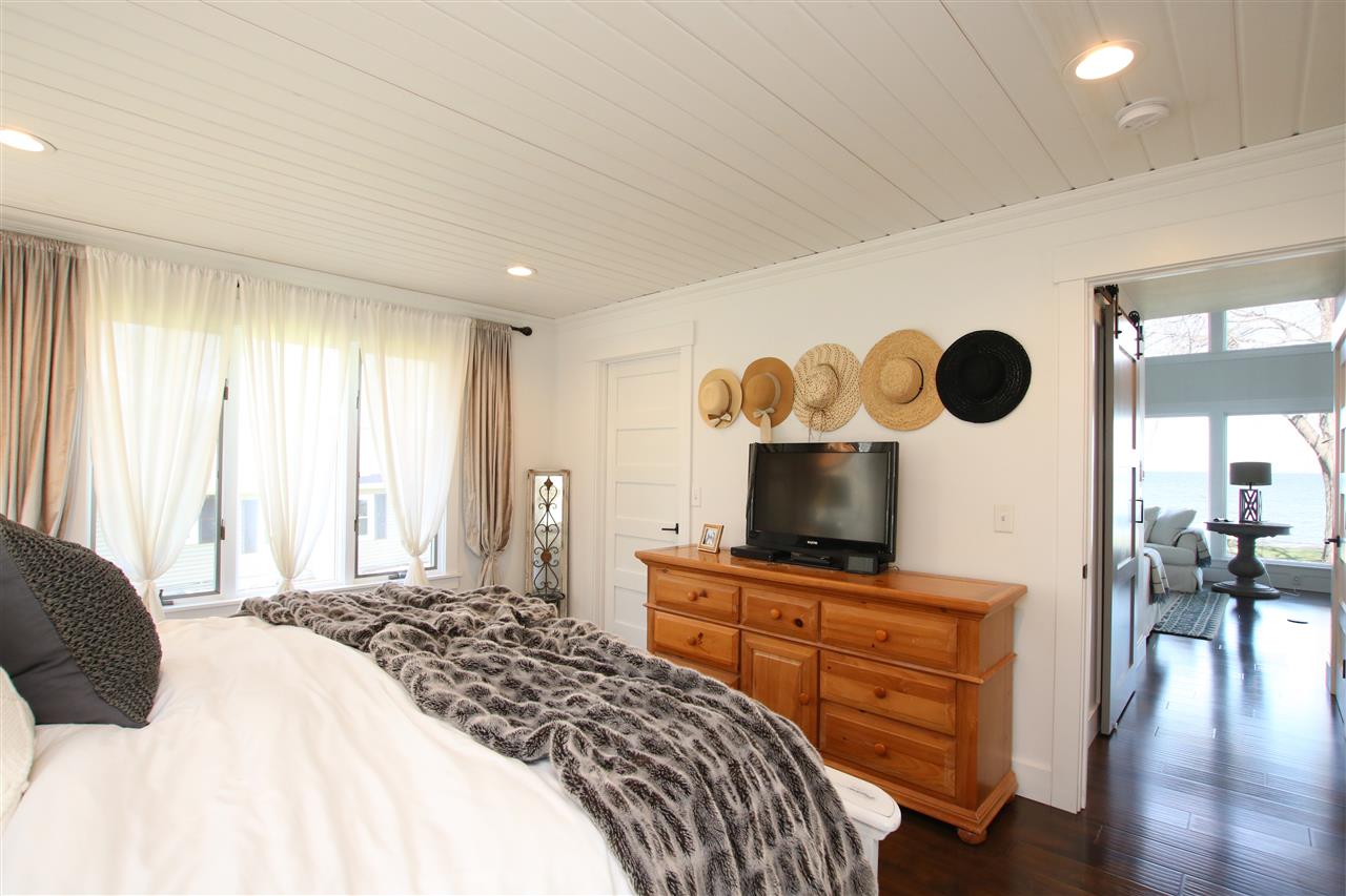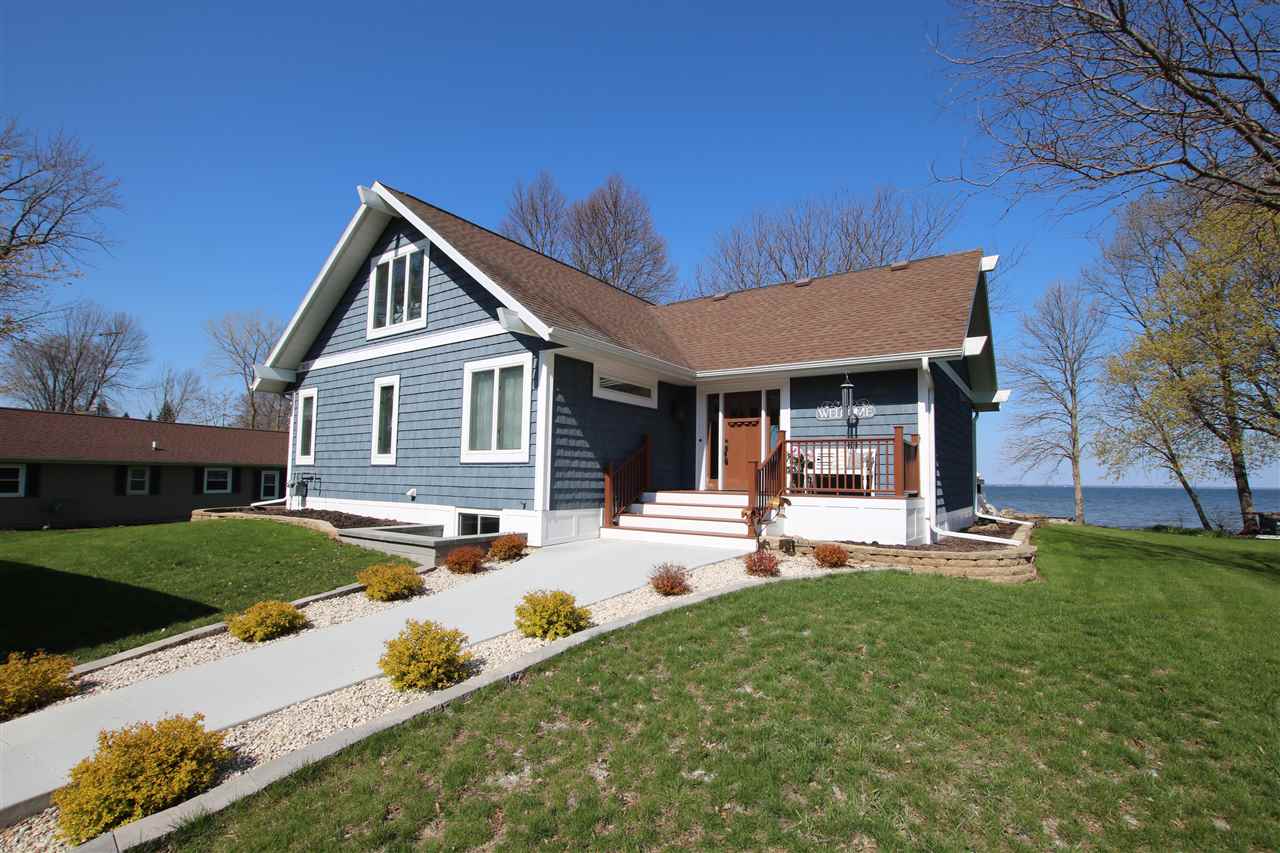 East side Lake Winnebago home designed & decorated w/Pottery Barn cottage style. Features 18ft great room ceilings with shiplap. Huge kitchen with white cabinets, island seating & subway title accents. Spacious main floor master suite including bath w/double sinks, soaking tub, walk in shower & walk in closet. Additional 2nd floor master bath suite for weekend guests/family. Extra finished living space in the lower level including 3rd bedroom, & rec rm. This area is stubbed for another bath. 30x 36 garage w/upstairs loft. Flat lot to the sand beach! Completely beautiful lake home!