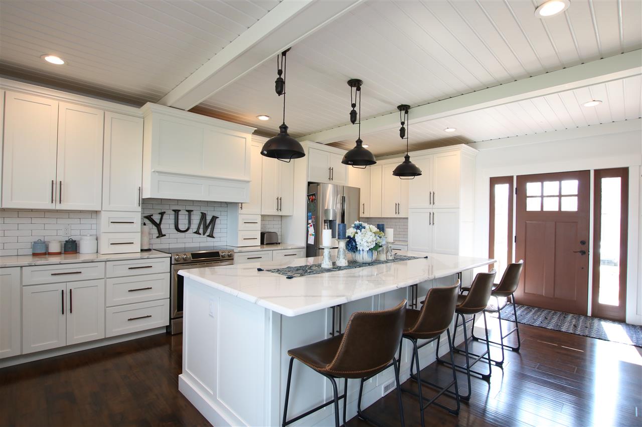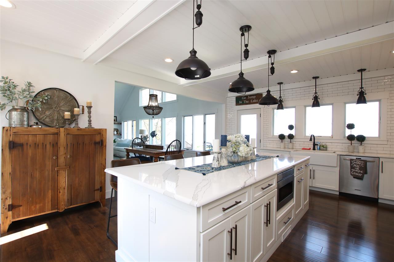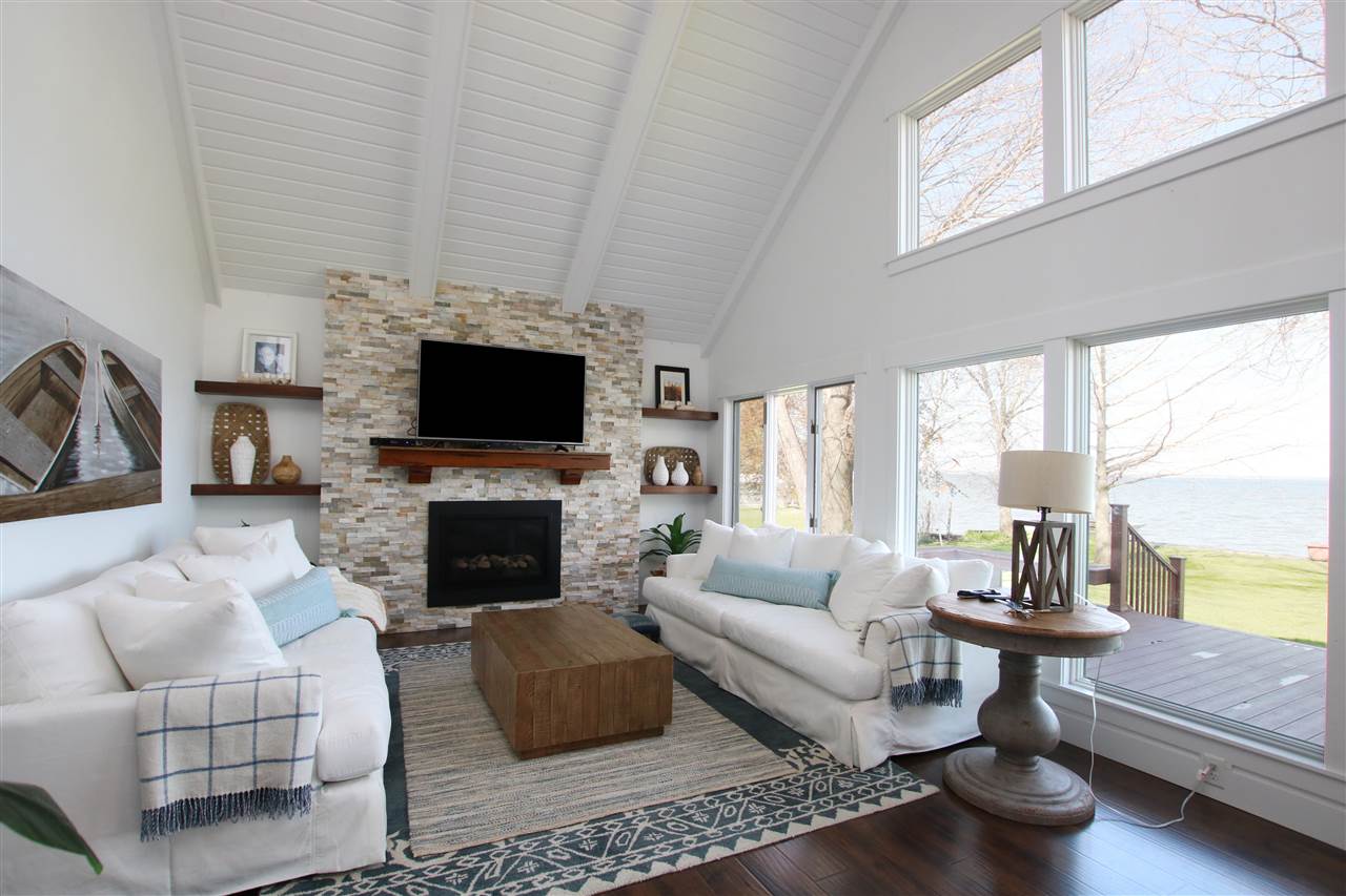 East side Lake Winnebago home designed & decorated w/Pottery Barn cottage style. Features 18ft great room ceilings with shiplap. Huge kitchen with white cabinets, island seating & subway title accents. Spacious main floor master suite including bath w/double sinks, soaking tub, walk in shower & walk in closet. Additional 2nd floor master bath suite for weekend guests/family. Extra finished living space in the lower level including 3rd bedroom, & rec rm. This area is stubbed for another bath. 30x 36 garage w/upstairs loft. Flat lot to the sand beach! Completely beautiful lake home!