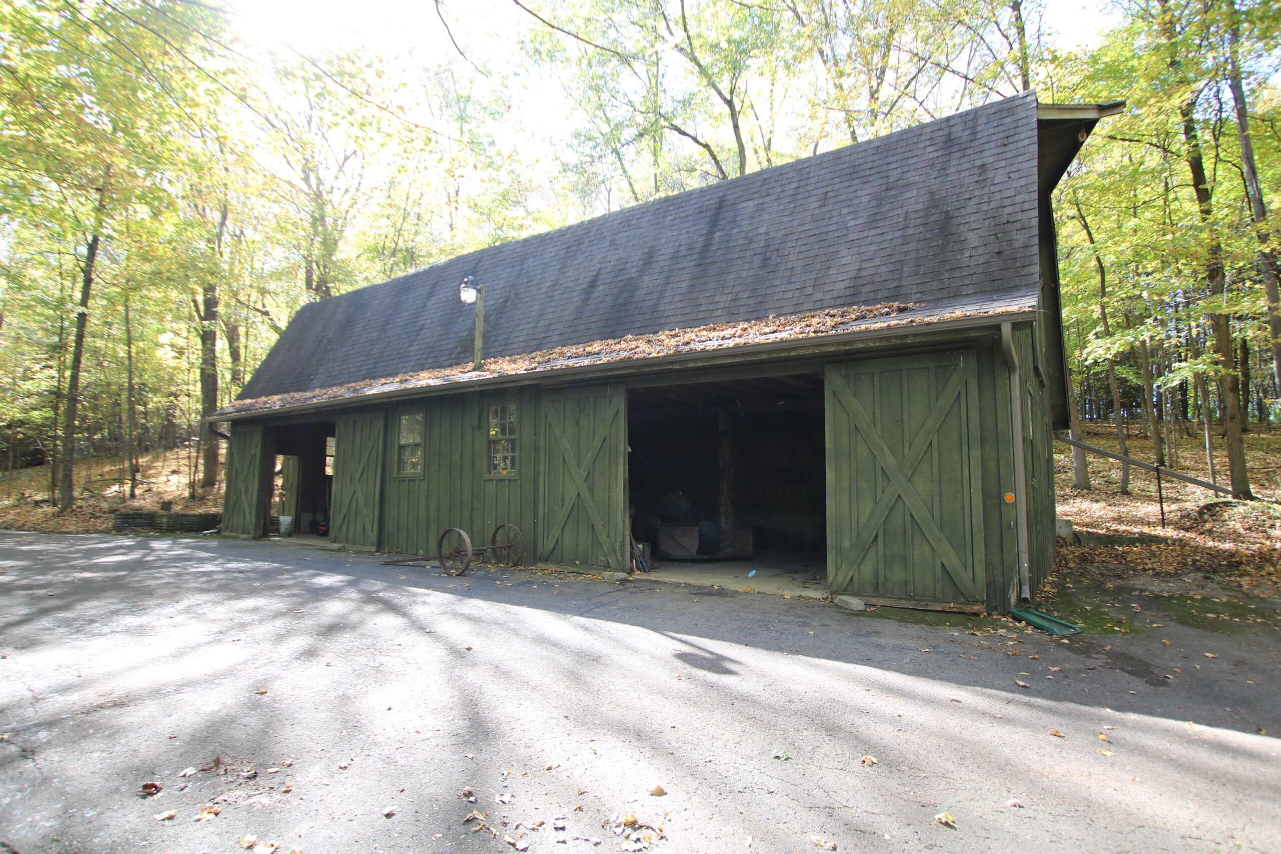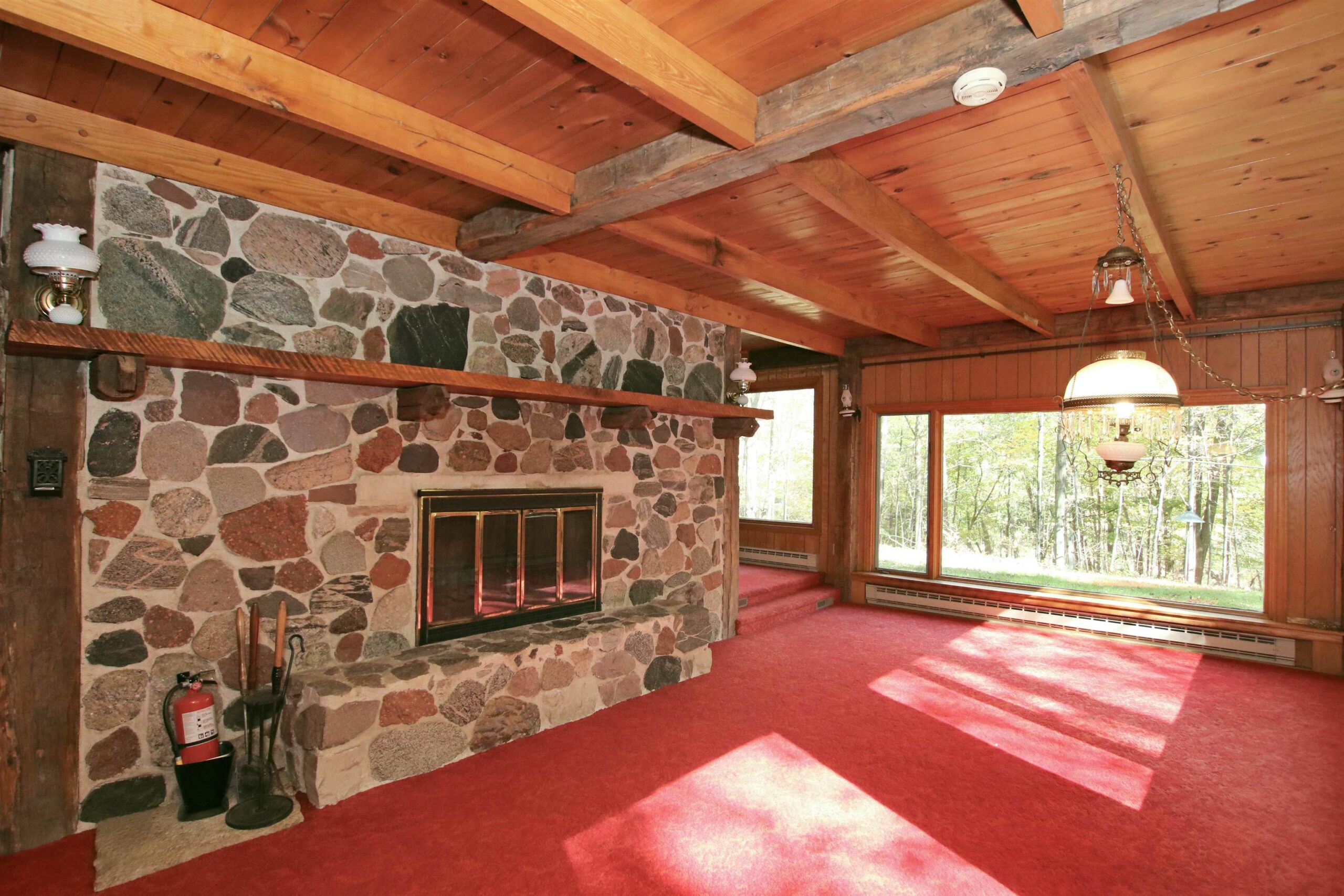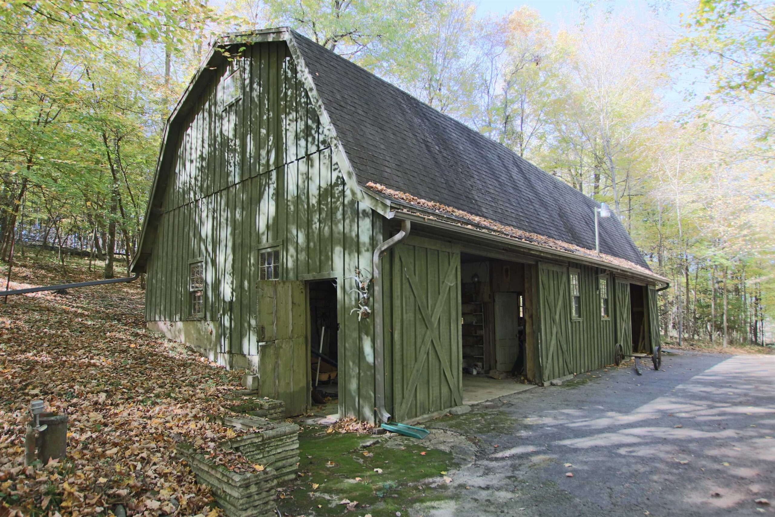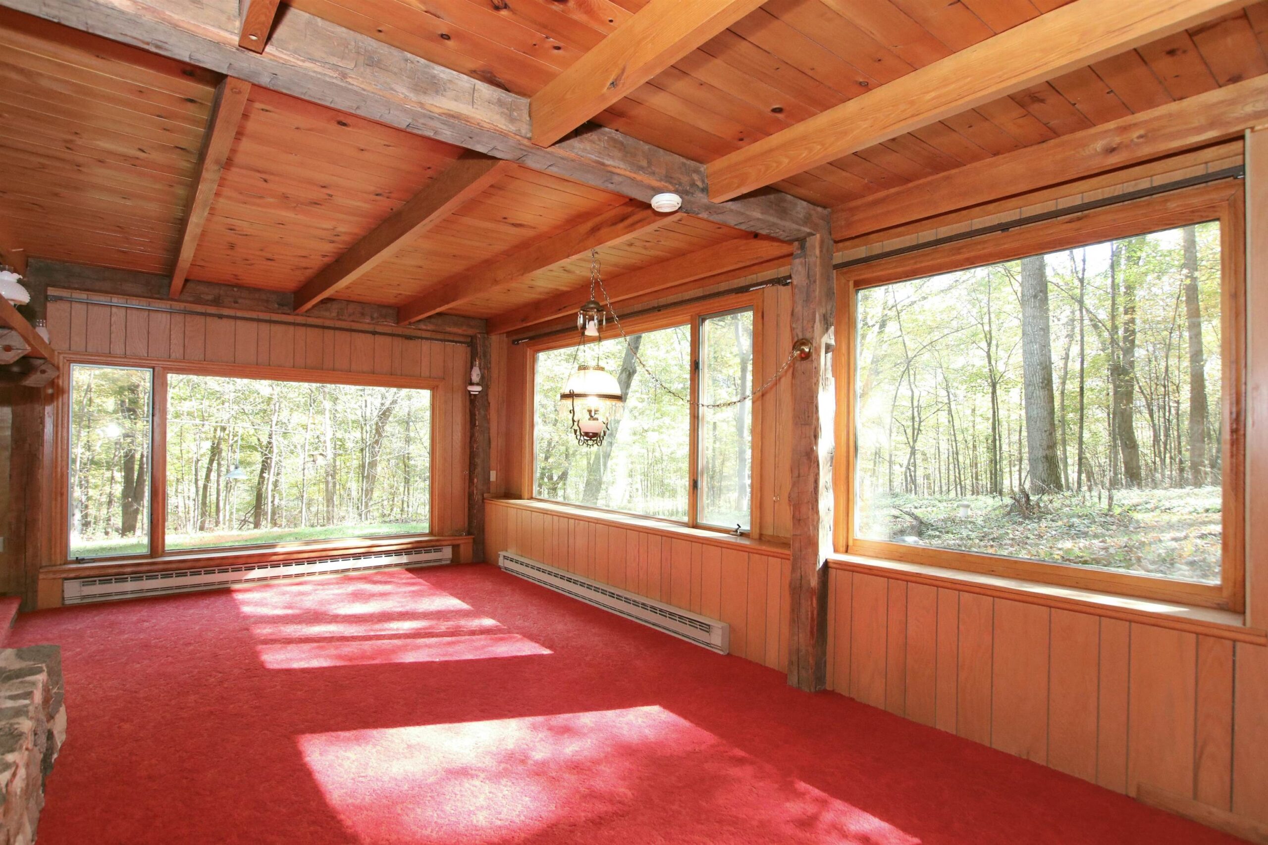 Picturesque 28.5 acre wooded lot with a 3bed/2.5 bath contemporary home built in 1972. Enter the property down a long private driveway to a 28x56 detached shed for all your extra toys and a nice sized pond to fish in. Take a hike or hunt on the 28 beautiful acres. House has 2 large family rooms both with floor to ceiling stone wood burning fp, kitchen with a dining area, 3 nice sized bedrooms incl master bed with master bath, laundry room and a deck for relaxing on. New metal roof, newer windows, garage door and furnace. You don't want to miss this beauty!