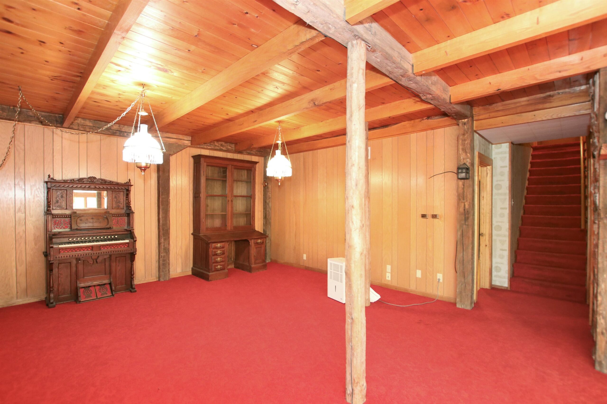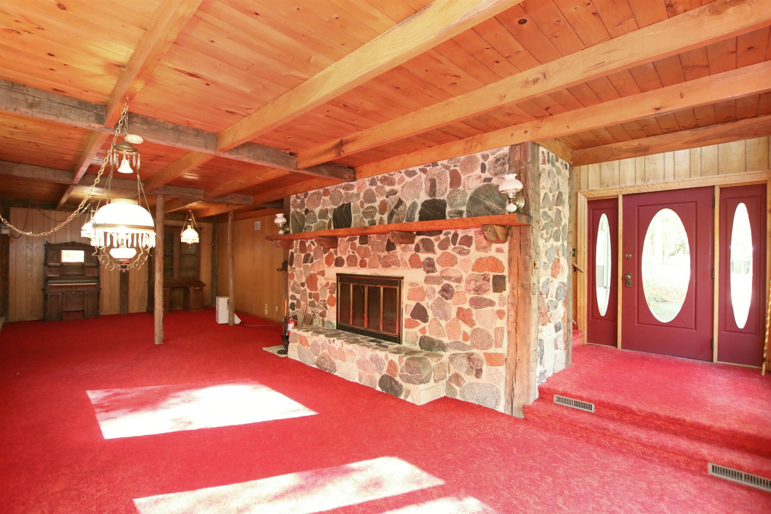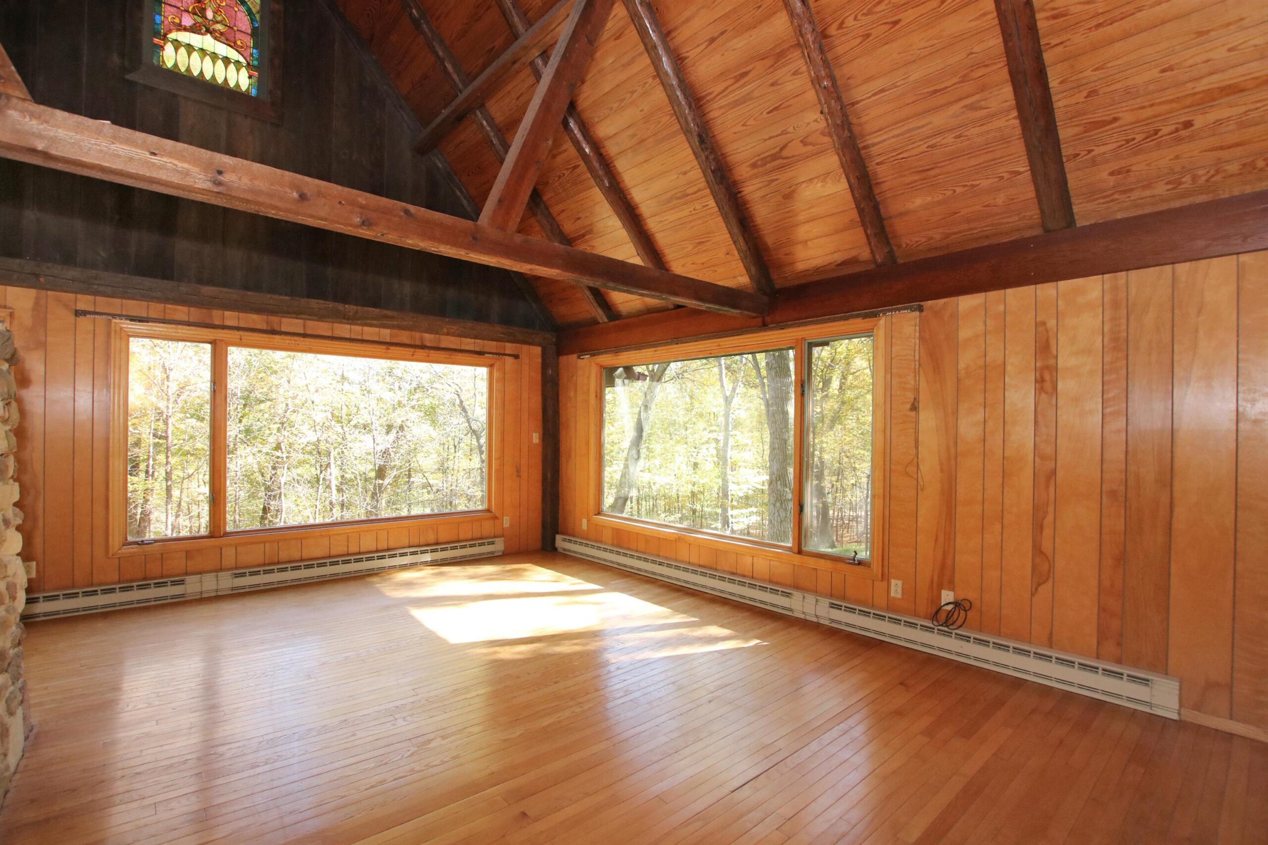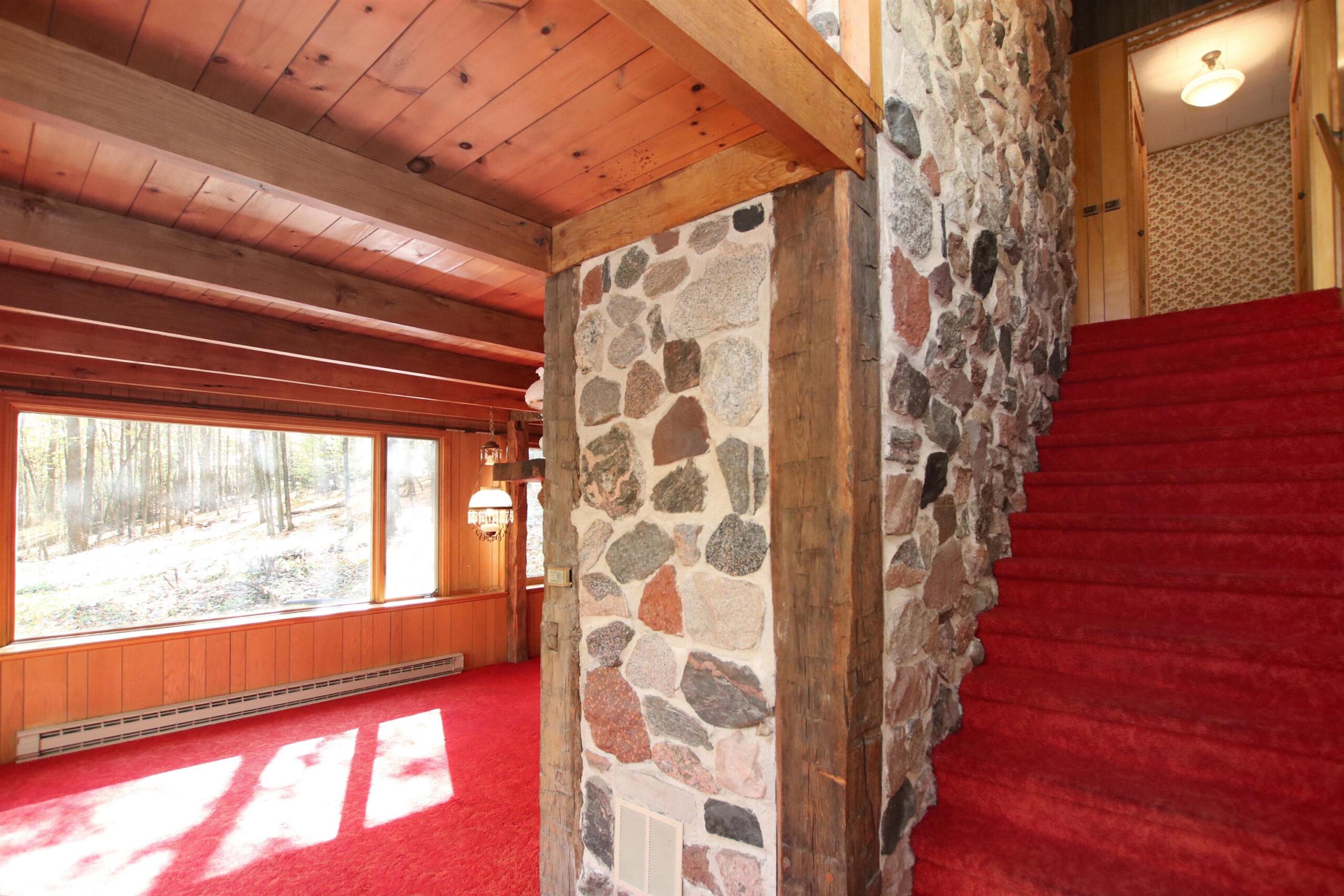 Picturesque 28.5 acre wooded lot with a 3bed/2.5 bath contemporary home built in 1972. Enter the property down a long private driveway to a 28x56 detached shed for all your extra toys and a nice sized pond to fish in. Take a hike or hunt on the 28 beautiful acres. House has 2 large family rooms both with floor to ceiling stone wood burning fp, kitchen with a dining area, 3 nice sized bedrooms incl master bed with master bath, laundry room and a deck for relaxing on. New metal roof, newer windows, garage door and furnace. You don't want to miss this beauty!