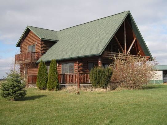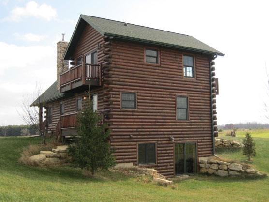 This immaculate 9 year old log home on 8.3 acres will take your breath away. The amazing hilltop location offers 360 degree views of the rolling countryside. Golden Eagle Log Homes included all of the extra touches such as a spacious master suite with dual balconies, a field stone fireplace, first floor laundry and an extra-deep basement foundation with walk-out sliding doors. Also enjoy the 30x40 Cleary pole barn set up for horses. Recent updates include finished basement ceiling and new carpet throughout.