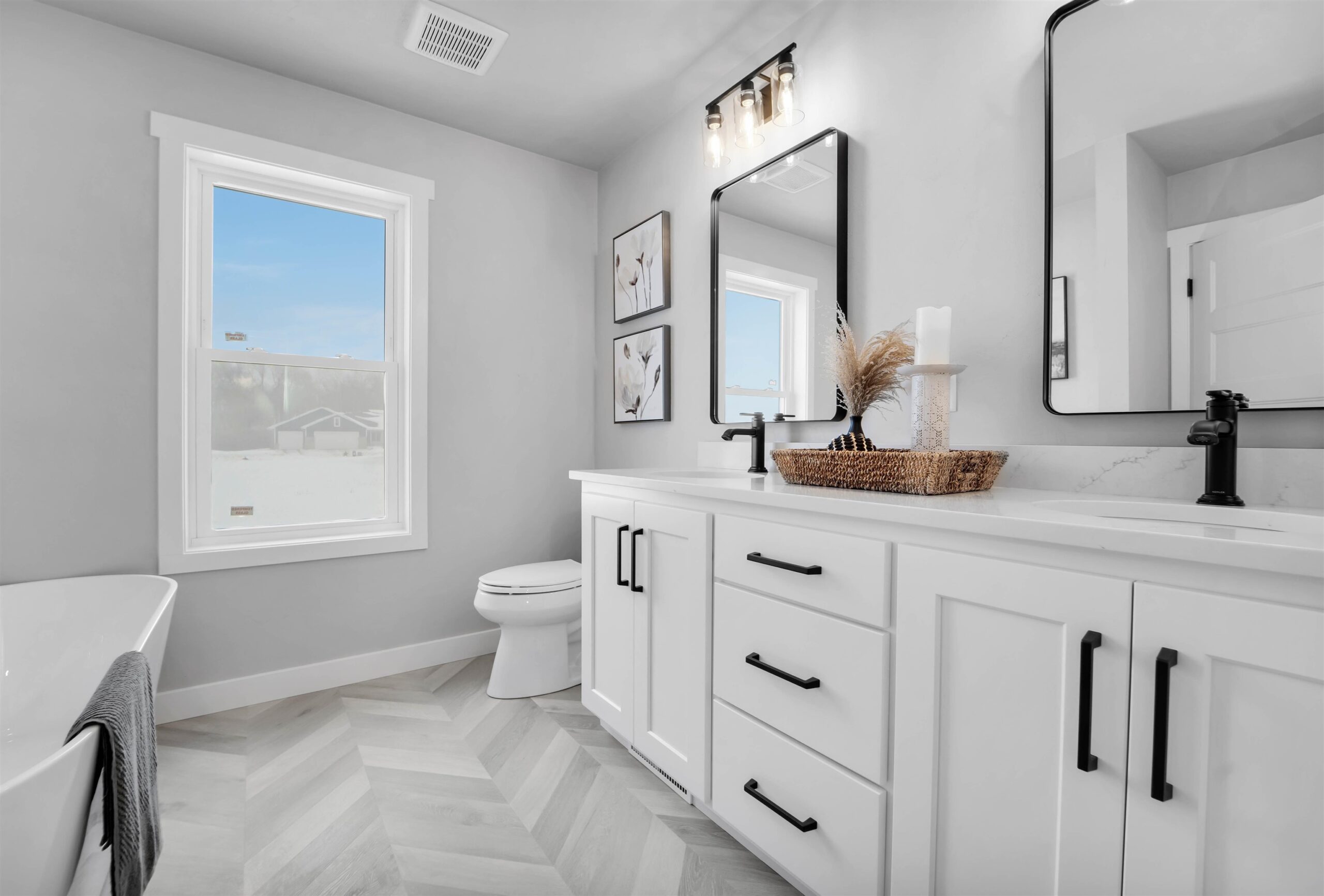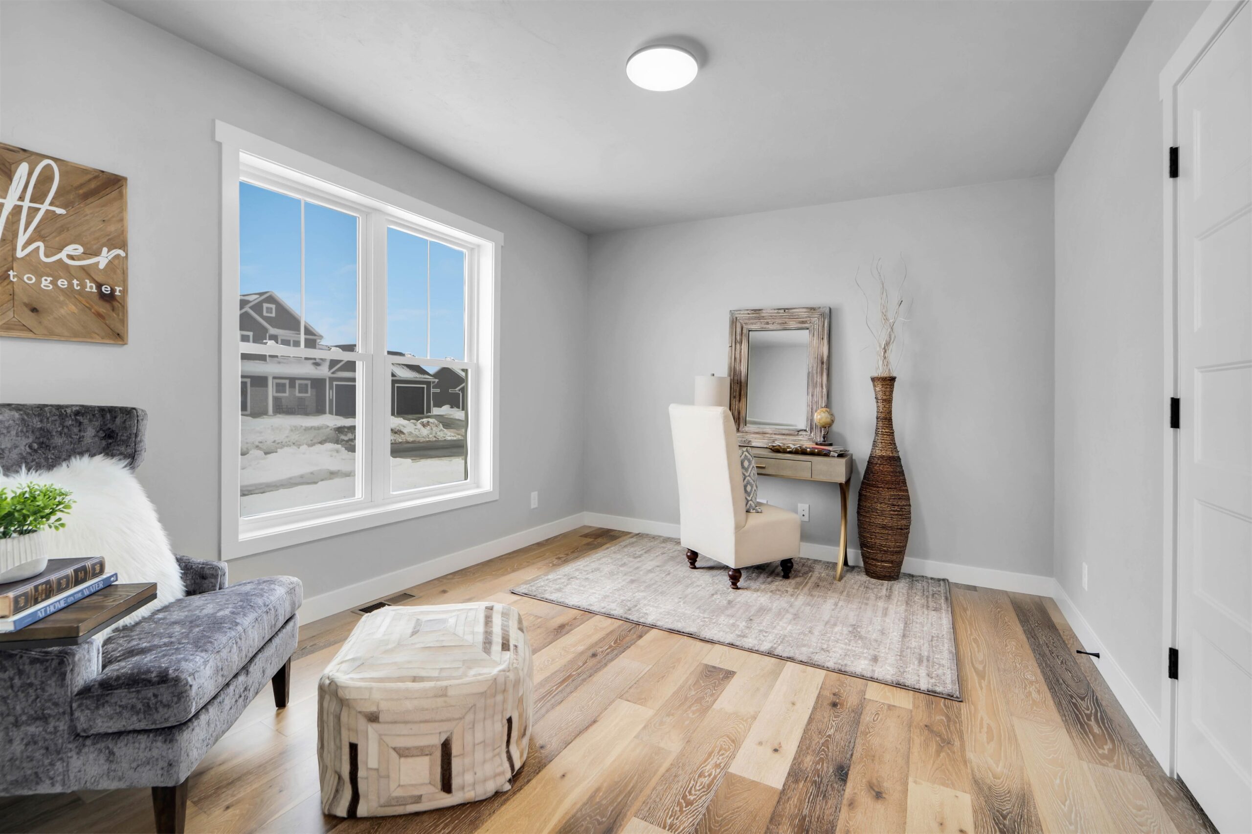 Striking Pfile Premier Homes Construction boasts an appealing exterior with stone accents & covered porch. Engineered hardwood floors greet you & flow through the main level. The GR has 10ft ceilings w/tall windows & anchored by gas FP. The open concept design is perfect for busy lifestyles w/a sunny dining area, STUNNING kitchen with lofty white cabinetry, SS appliances, Quartz counters, center Island, tile backsplash & walk-in pantry. Main fl suite retreat w/Quartz counters, dual vanity, tile shower and chic soaker tub. Front office, mudrm, separate laundry rm and half bath complete the main fl. The upper level consists of: 4 brms & a full bath. Other highlights: 3 car garage w/stairs to basement, LL stub for bath, egress, concrete driveway and sidewalks installed! Pics of similar home.