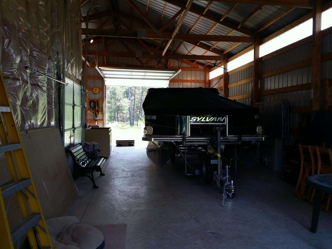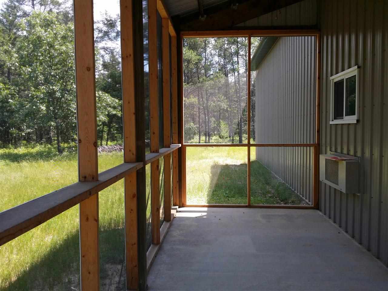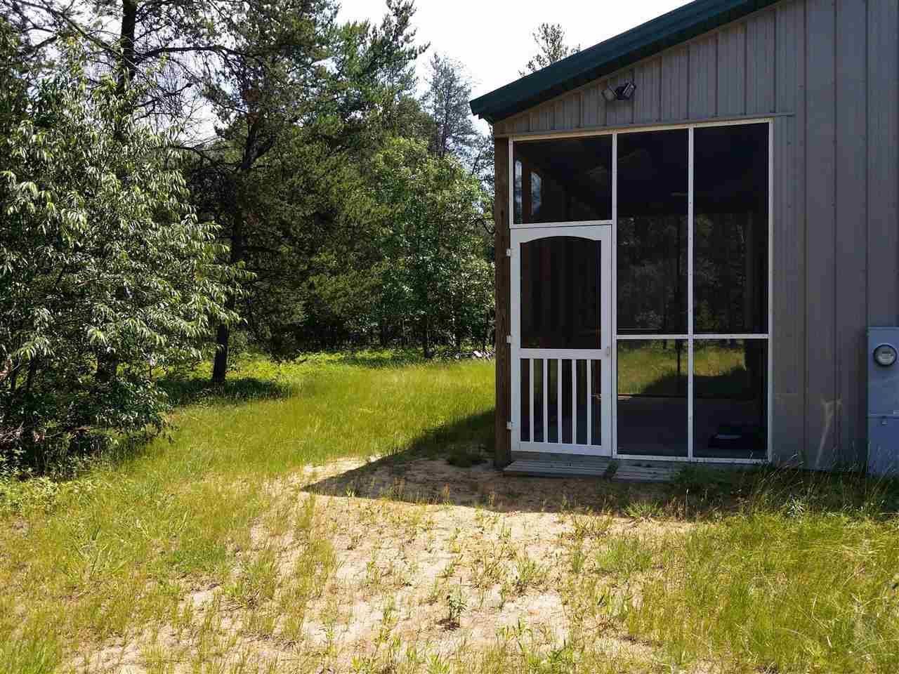 30X50 Commercial grade EPS (Energy Panel System) building. Portion of building converted to comfortable cabin with loft & screen patio; complete with well, 200amp electric. Heat/Air/Ceiling Fans. Surrounded by woods on dead-end road. Building can be used for workshop & boat storage. Shower has hot/cold water & portable commode. 2-drive-thru insulated overhead drs. May be converted to 12x12. Strategically set for additional home site. 5min. to Castle Rock Lake sandy beach/boat launch. Perfect for camping!!