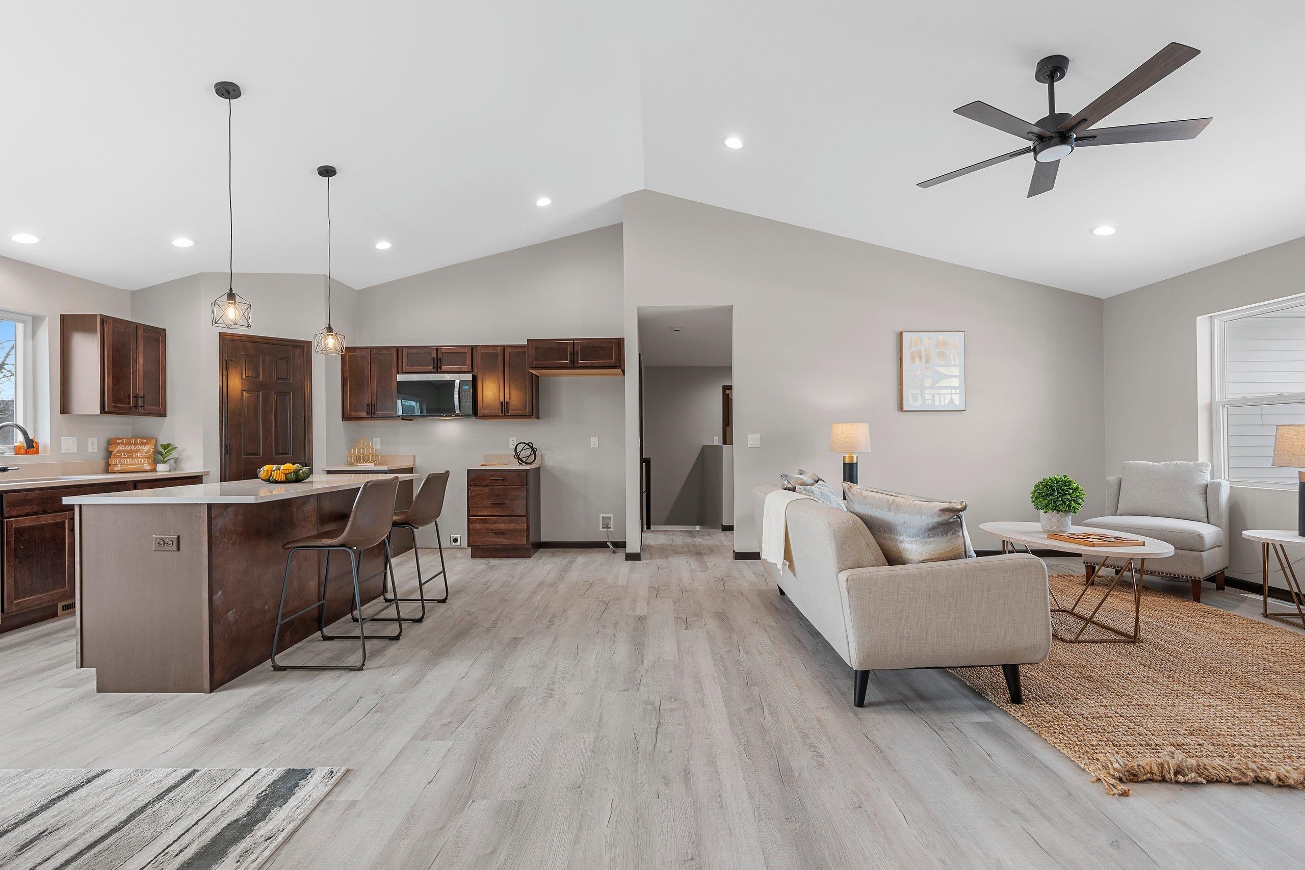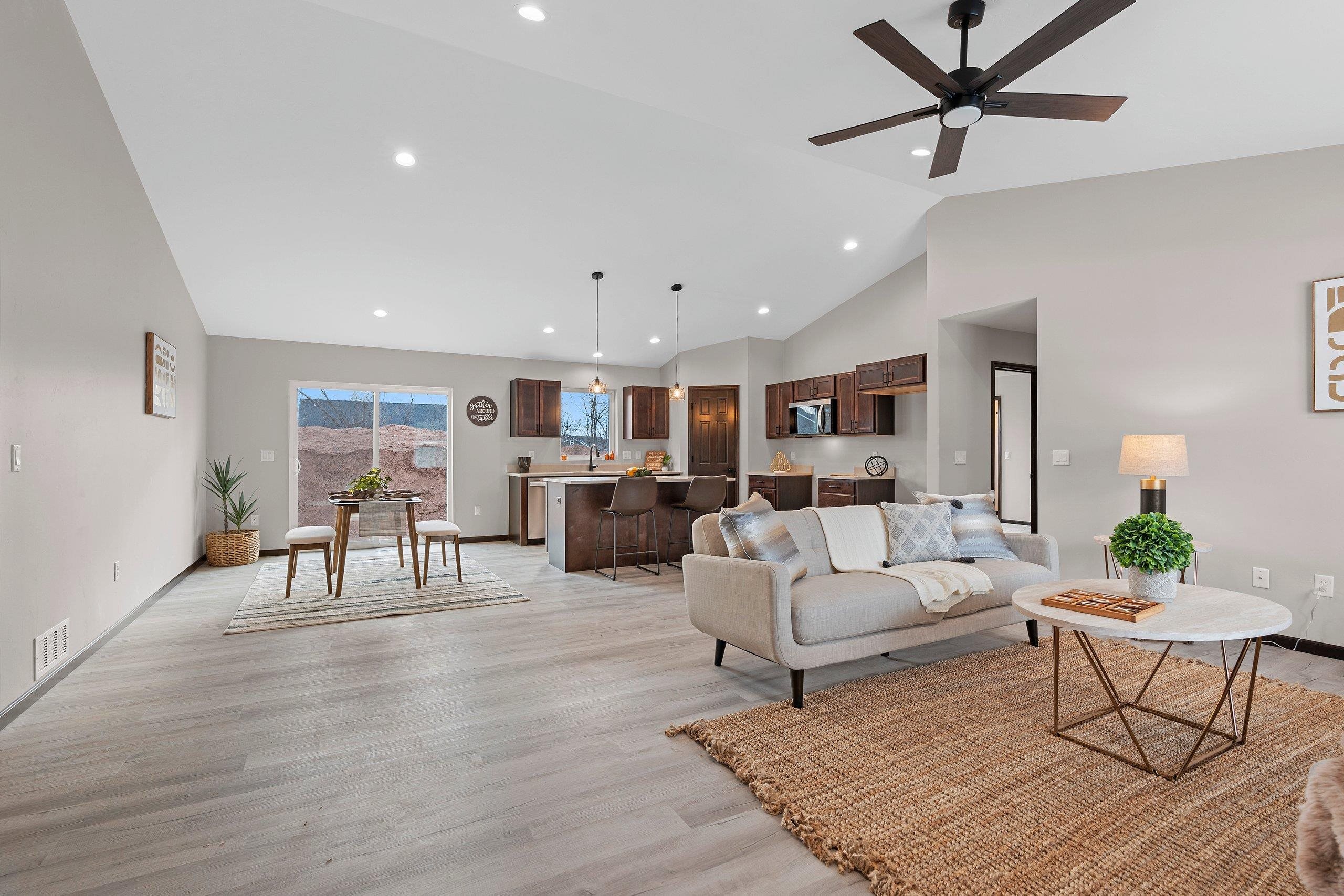 Welcome to this beautifully designed split-bed ranch by Wildflower Development Group! The Foxglove floor plan offers 3 beds and 2 baths, featuring a private primary suite with a luxurious quartz dual-sink bath, and walk in closet that flows right into the laundry room. The open-concept living area flows seamlessly from the quartz kitchen, complete with a walk-in pantry, island seating, and dining space into the great room with cathedral ceilings. It features a large 3-car garage with a mudroom drop zone entering the home. Quality finishes, functional design, and a smart layout make this home a perfect fit for modern living!