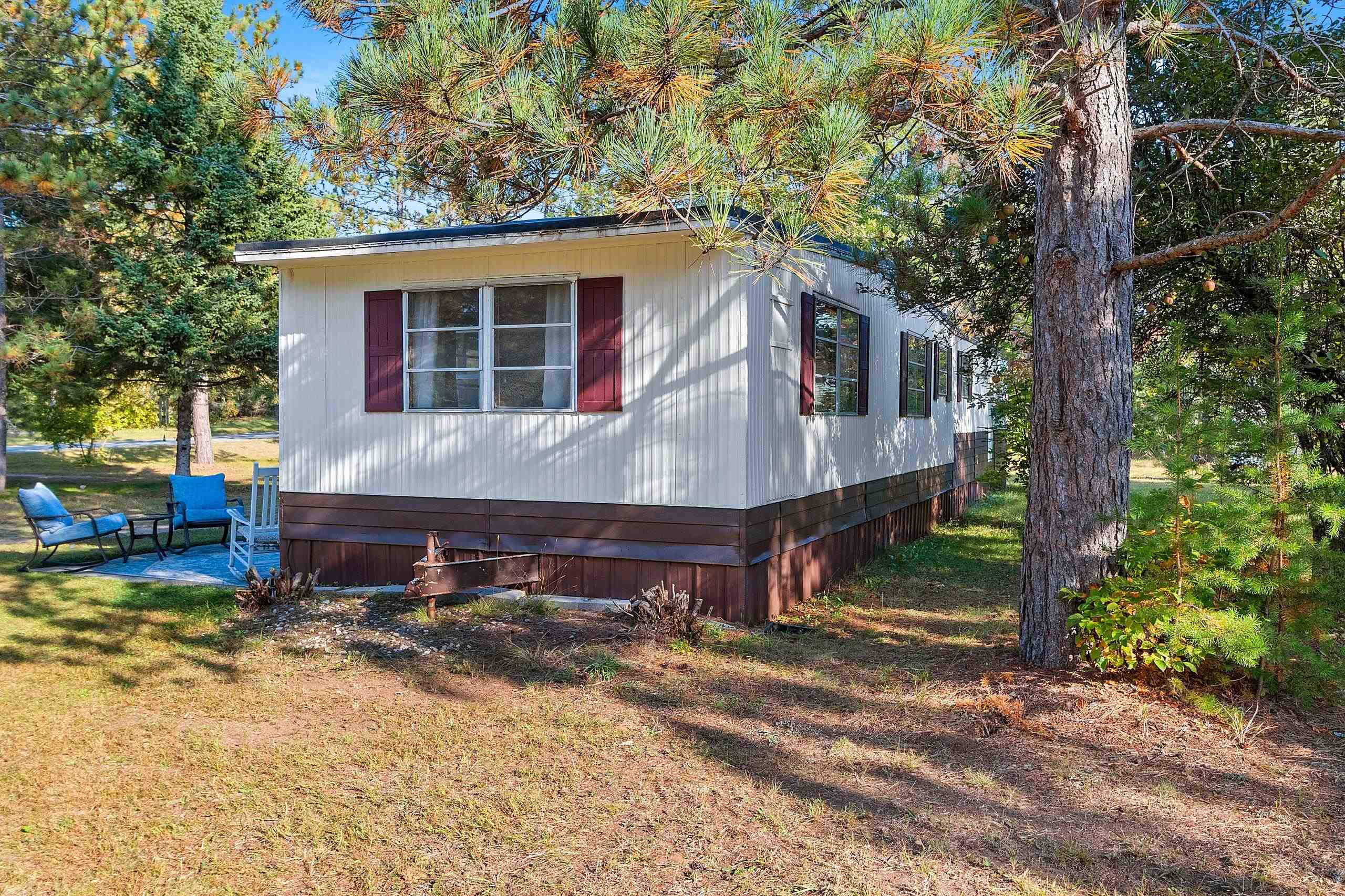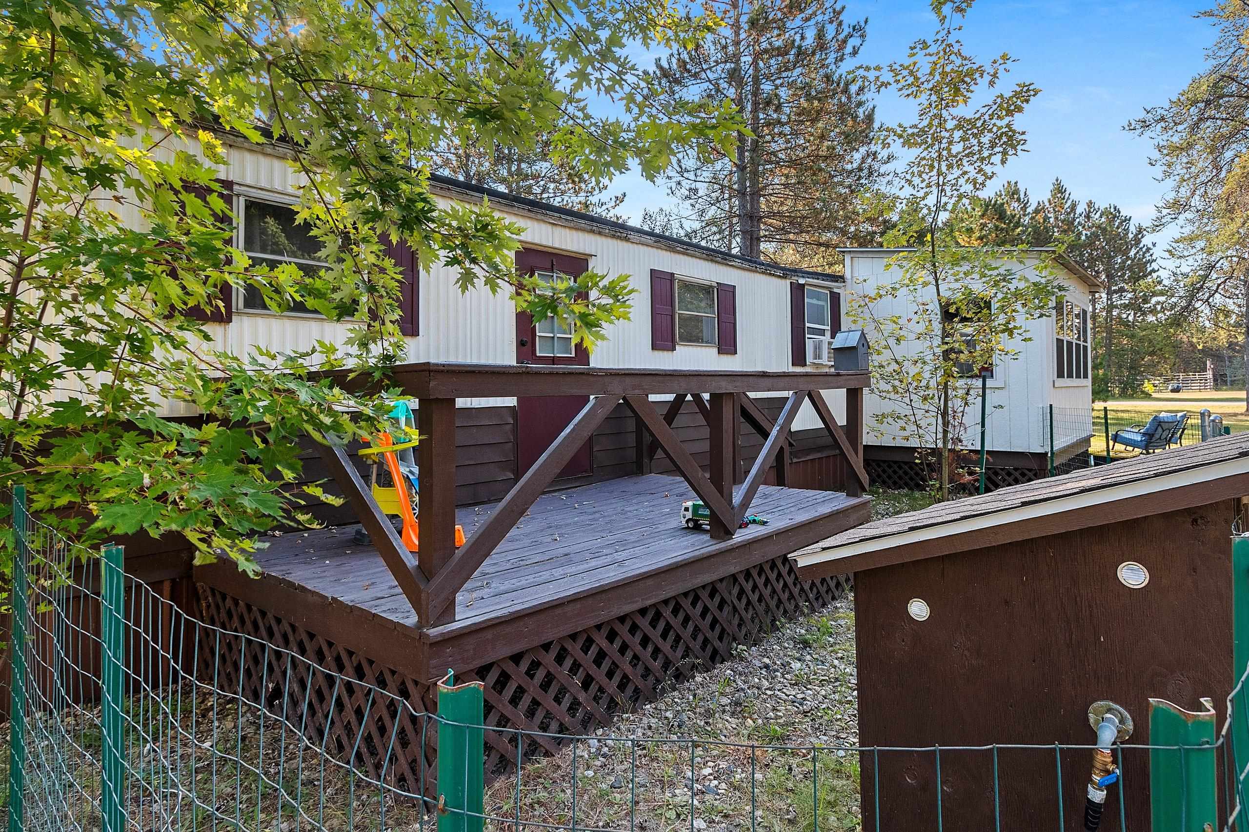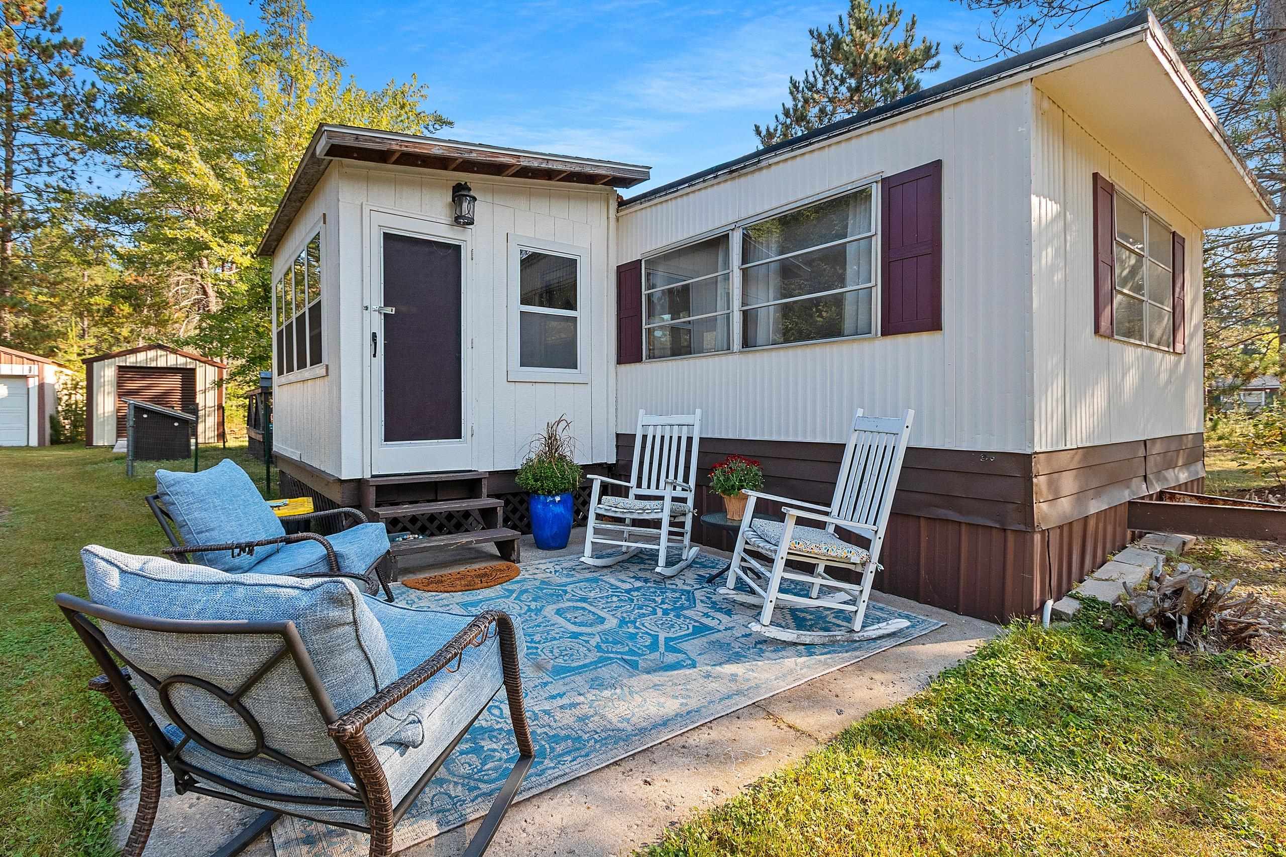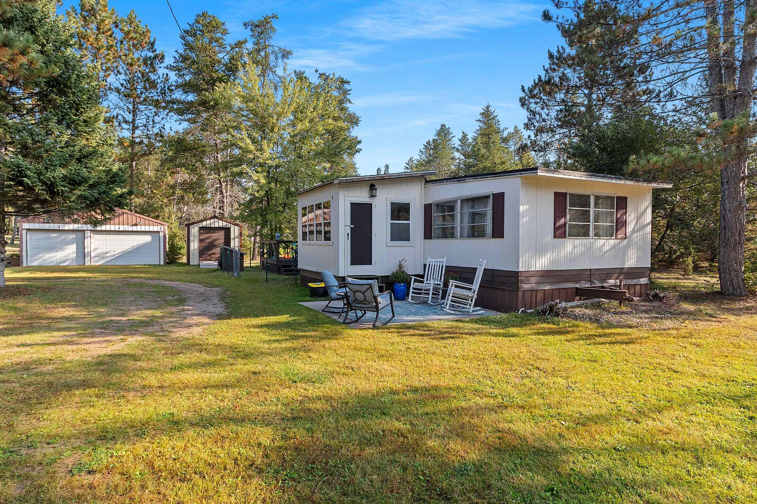 Beautifully updated 2 bedroom home in sought after area! Close to Twin Bridge, Peshtigo River & Johnson Falls, also snowmobile and ATV trails among many other attractions! Super cute mobile home on approx. 1.16 acres. Very well maintained, light & bright interior. Enter through the large mudroom, continue to the spacious living room, kitchen boasts plenty of cabinets, full bath includes newer washer/dryer combo, plus 2 bedrooms. Outside you will find an inviting patio area and fire pit for entertaining, brand new 10x12 storage shed included along with a 3 car garage and plenty of room to roam. Small fenced area off backdoor great for your pet! Perfect to make into your next home or vacation get away. Rubber roof redone 2022 per seller. Appliances included.